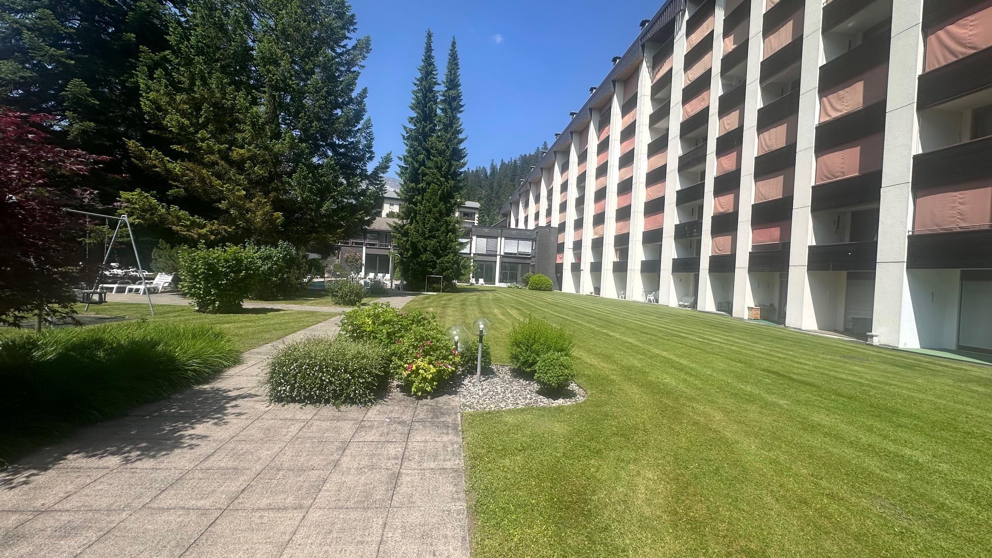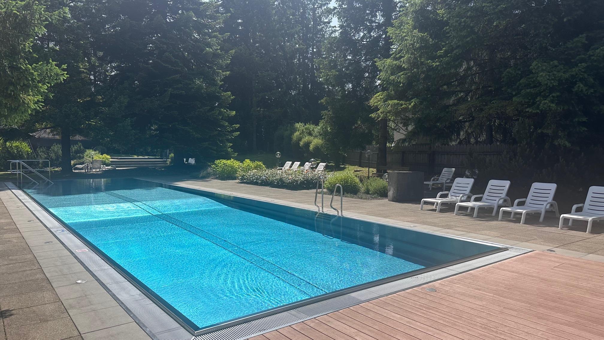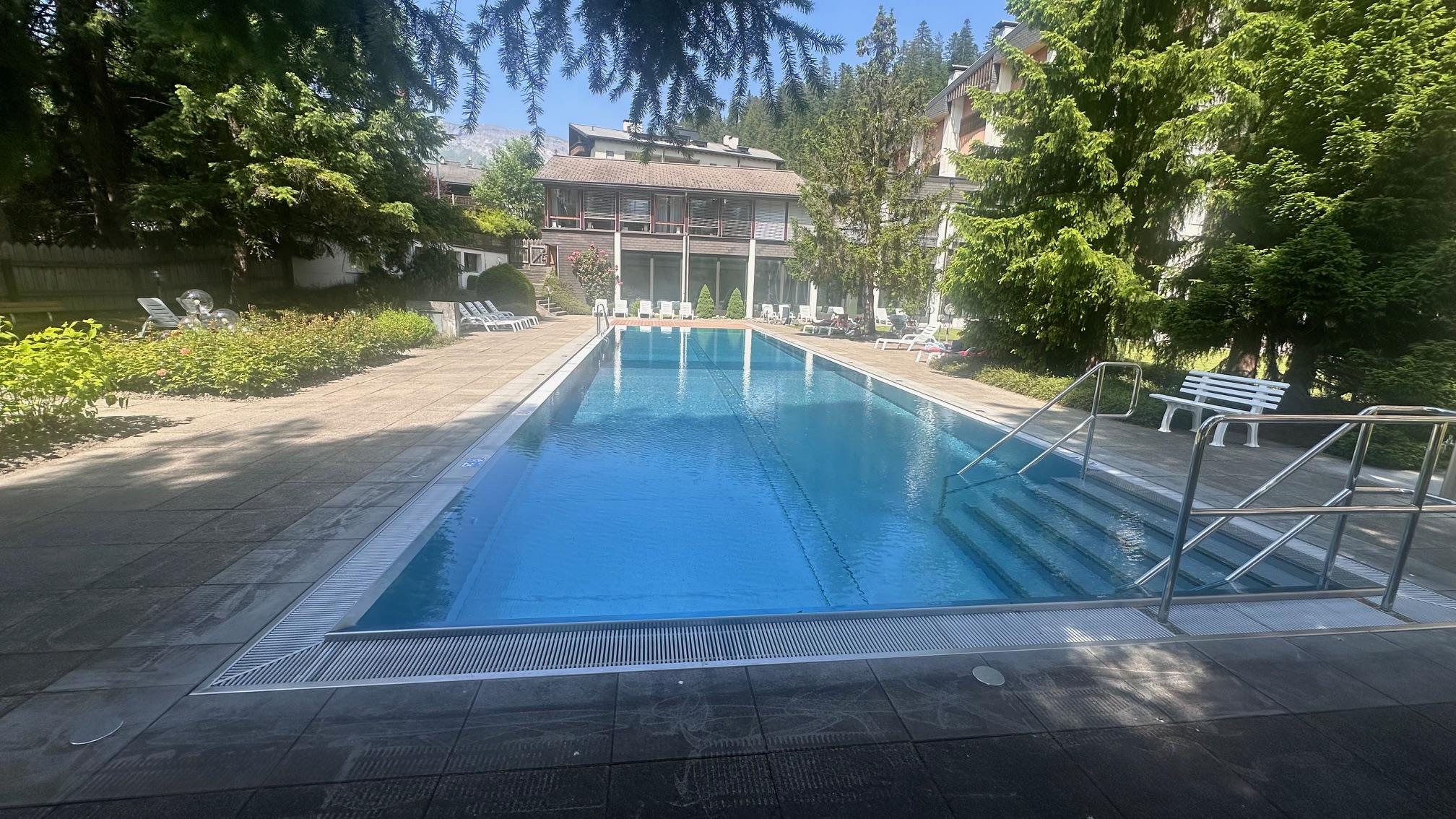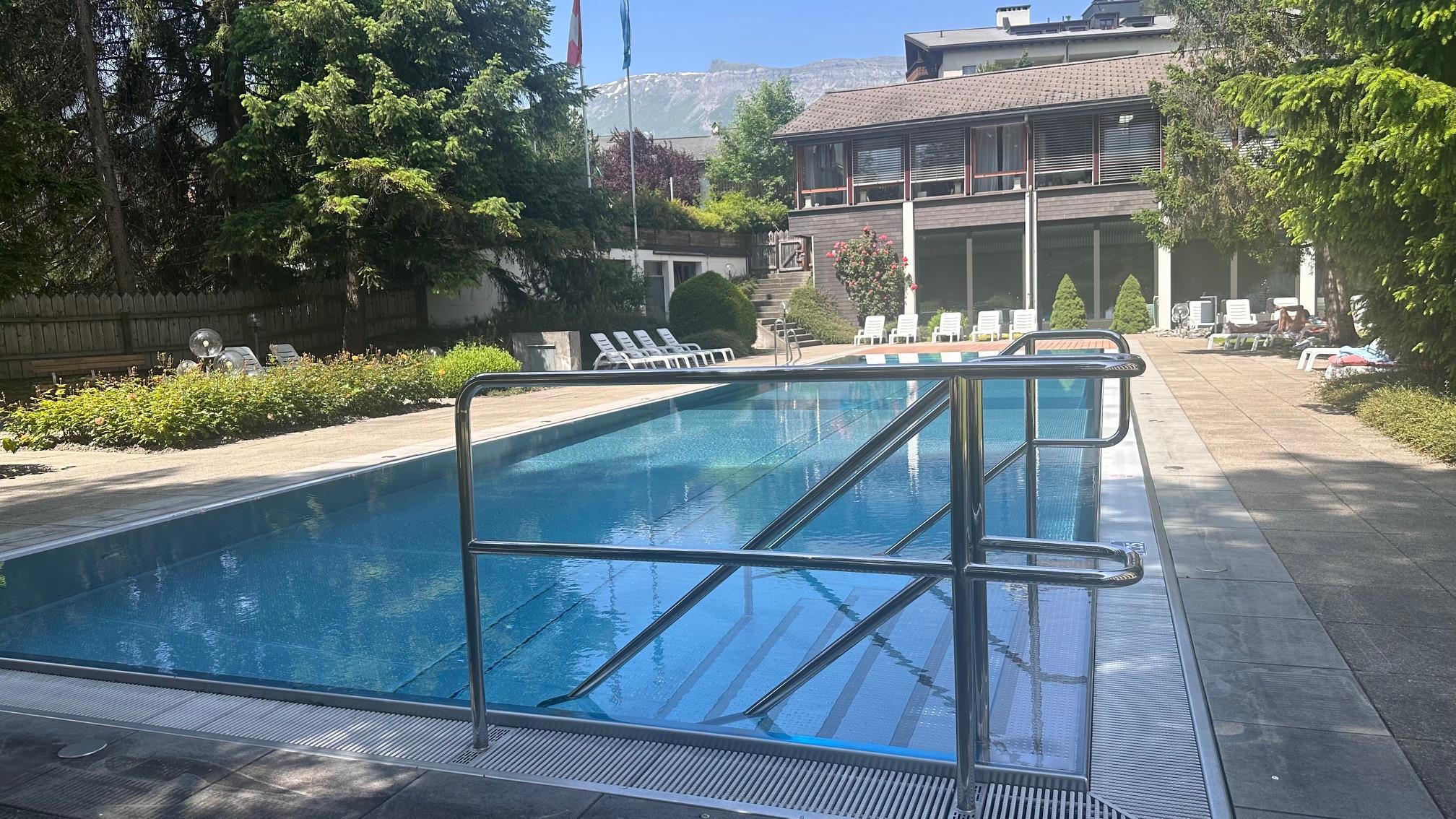 Im Sommer: Ökologisch geheiztes Aussenbad mit grossem Park. 2 Tennisplätze.