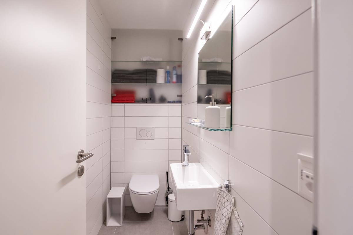 Nasszellen: Separates WC mit Lavabo. Grosse Dusche mit Lavabo. Haarfön.