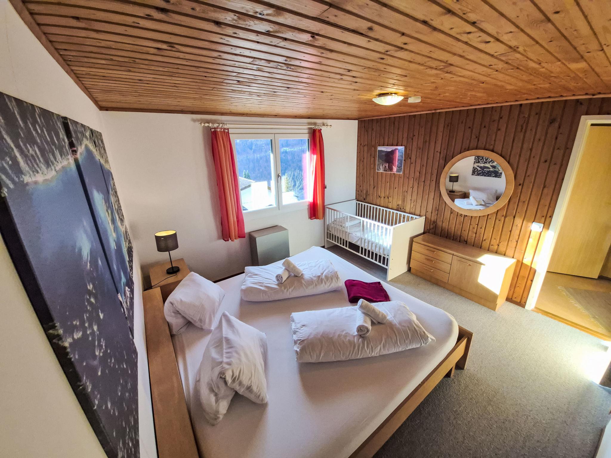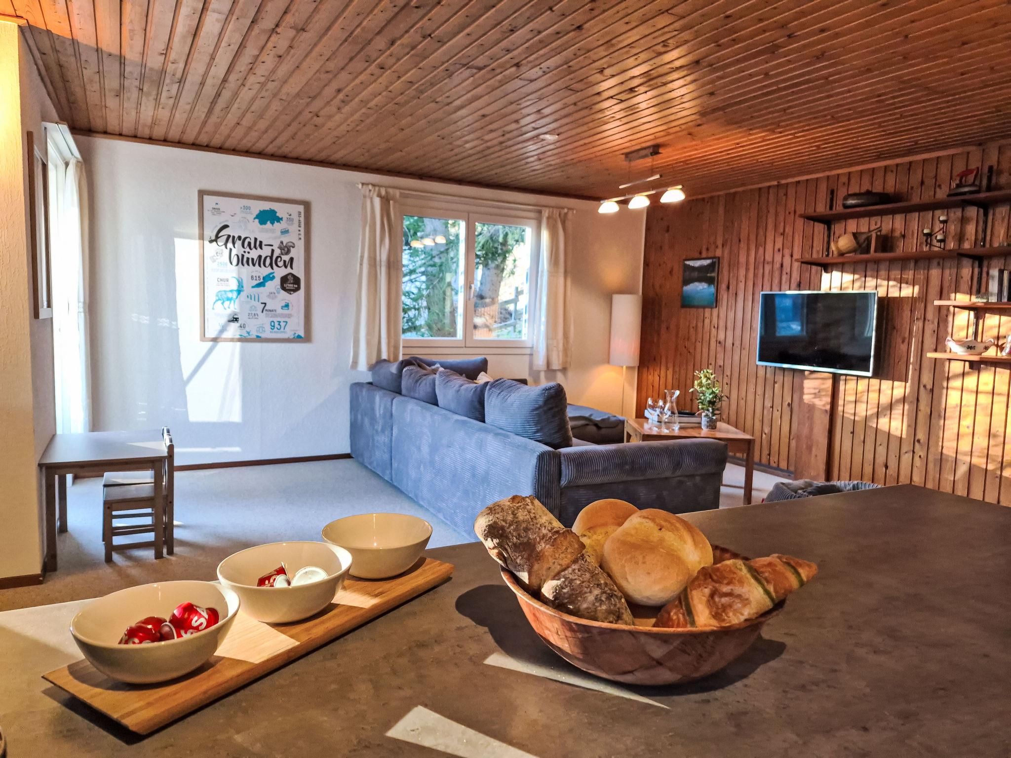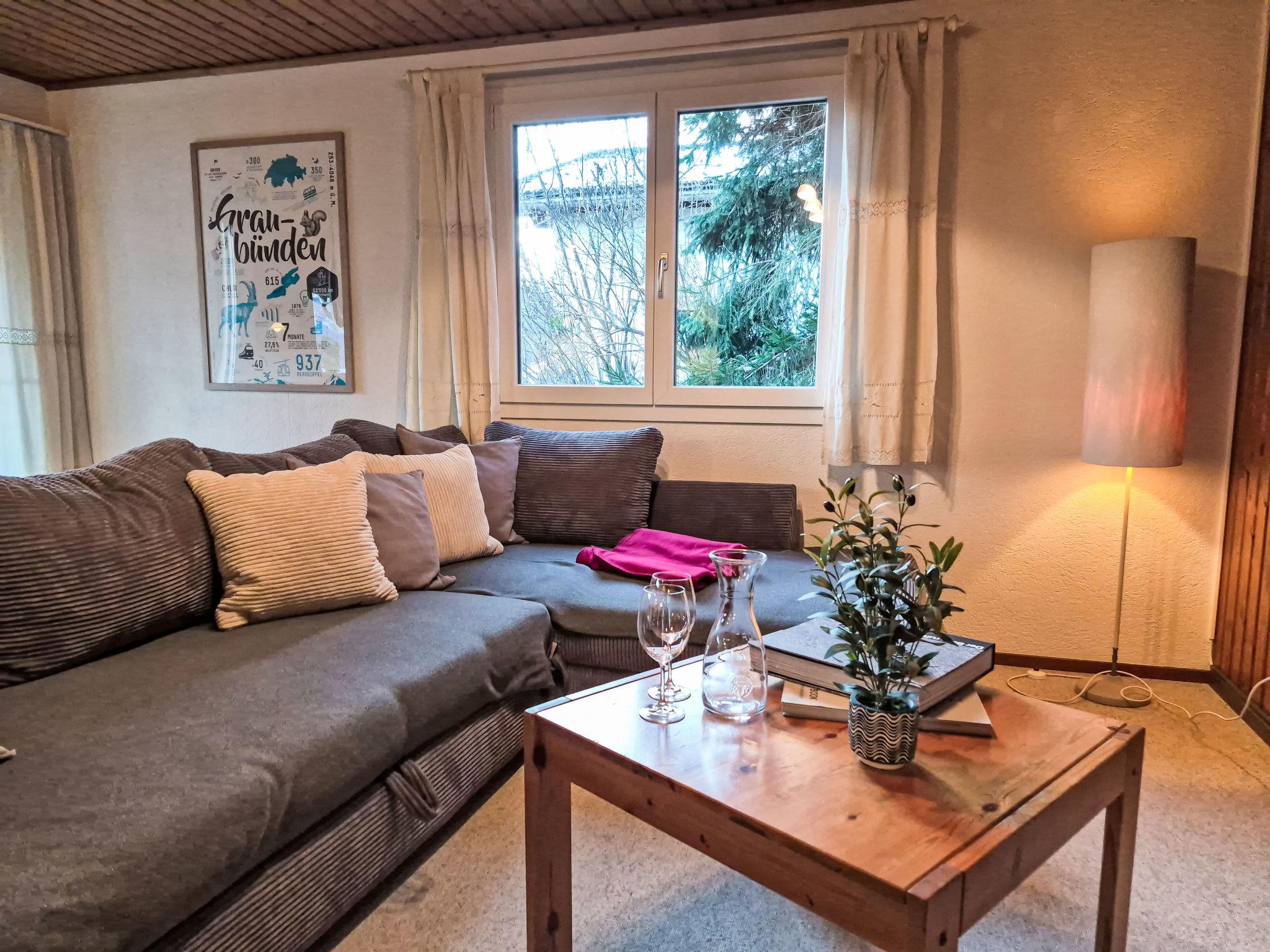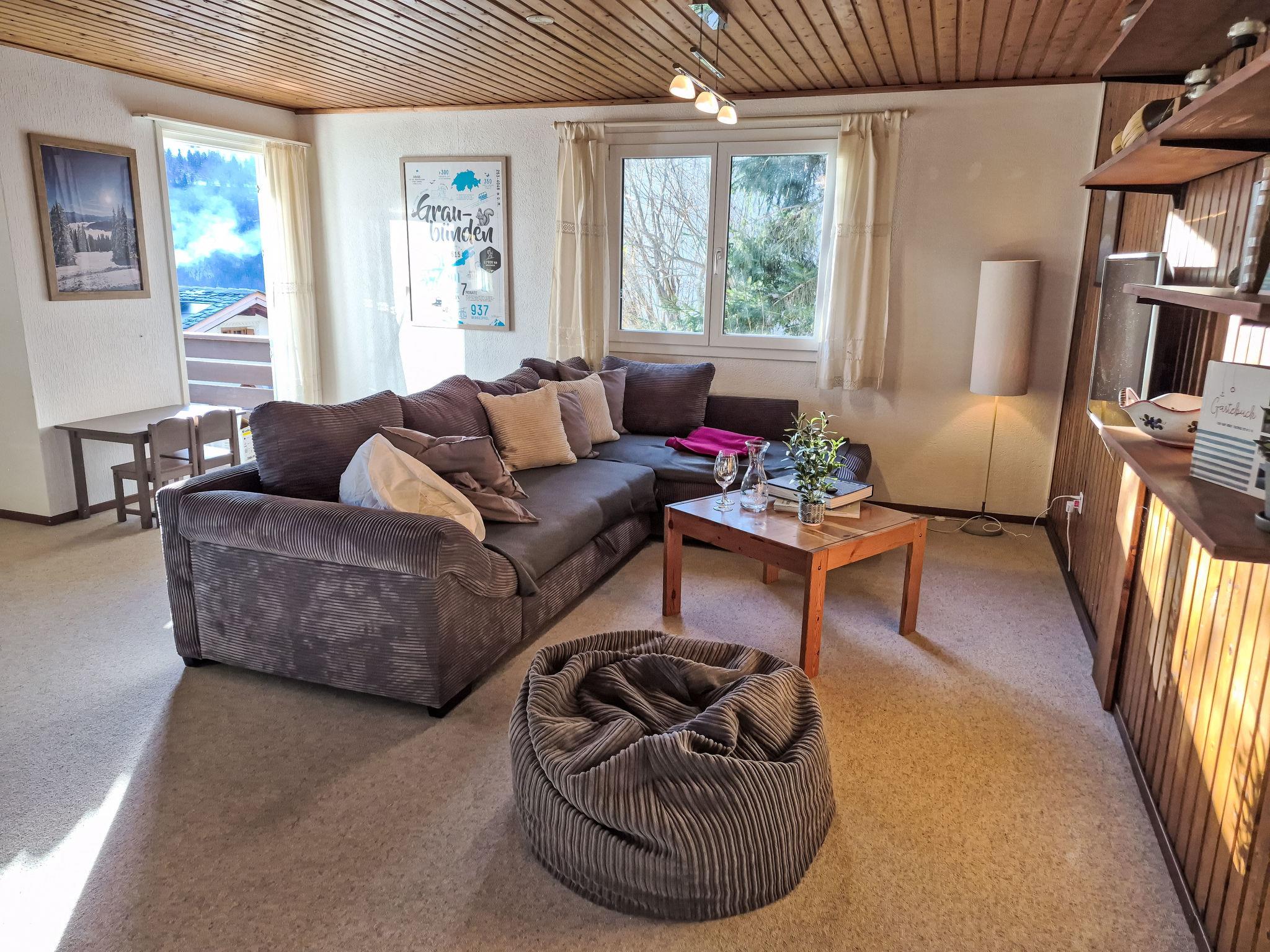 "Crap Grisch", 4-Zimmer-Wohnung 80 m2 im 1. Stock, Südlage. Teilweise renoviert im Jahre 2023, gemütlich und mit viel Holz eingerichtet: Wohn-/Esszimmer mit Essecke, Sat-TV und Stereoanlage. Ausgang zum Balkon. 2 Doppelzimmer. 1 Zimmer mit 1 Bett. Offene Küche (4 Kochplatten, Backofen, Geschirrspüler, elektrische Kaffeemaschine, Kapseln für die Kaffeemaschine (Nespresso) extra, Racletteofen). Dusche/WC. E-Heizung, Boiler (100 Liter). Balkon, Terrasse, Garten. Terrassenmöbel. Panoramasicht. Zur Verfügung: Waschmaschine, Bügeleisen, Kinderhochstuhl, Babybett. Internet (Wireless LAN, gratis). Parkplatz, Garage beim Haus. Bitte beachten: Nichtraucher-Unterkunft. Eigener Eingang. Babybett: 70 x 140cm, Bettwäsche selber mitzubringen. 565-885.81.246.158