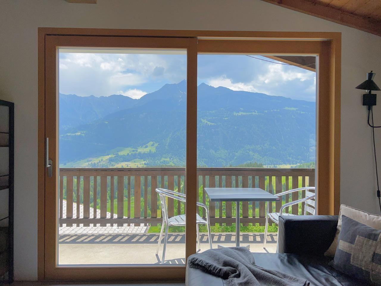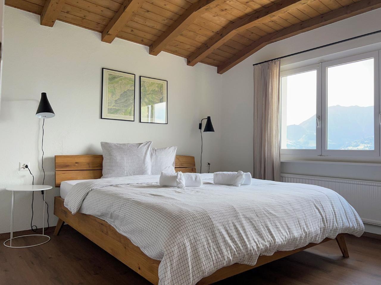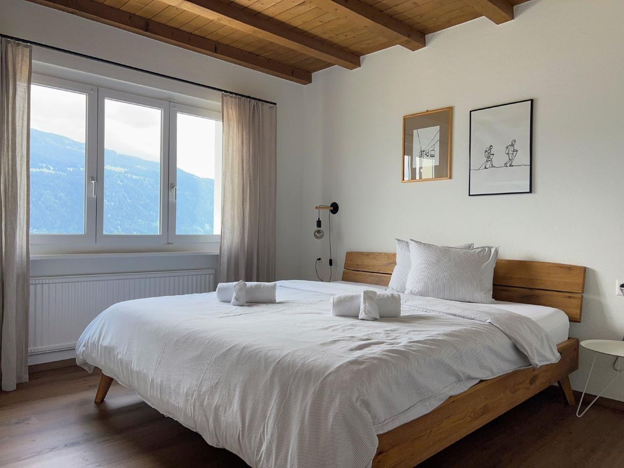 4 der 5 Schlafzimmer haben Bergblick - und das einzige Geräusch, das Sie nachts hören werden, sind vielleicht Kuhglocken. Der große, offene Ess-/Sitzbereich lädt zum gemütlichen Beisammensein mit bis zu 10 Personen an einem Tisch ein - oder verteilt auf den Raum und den Balkon/Terrasse.
