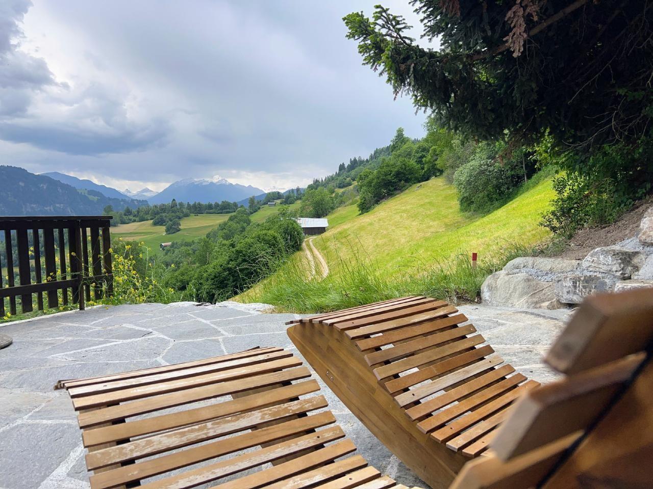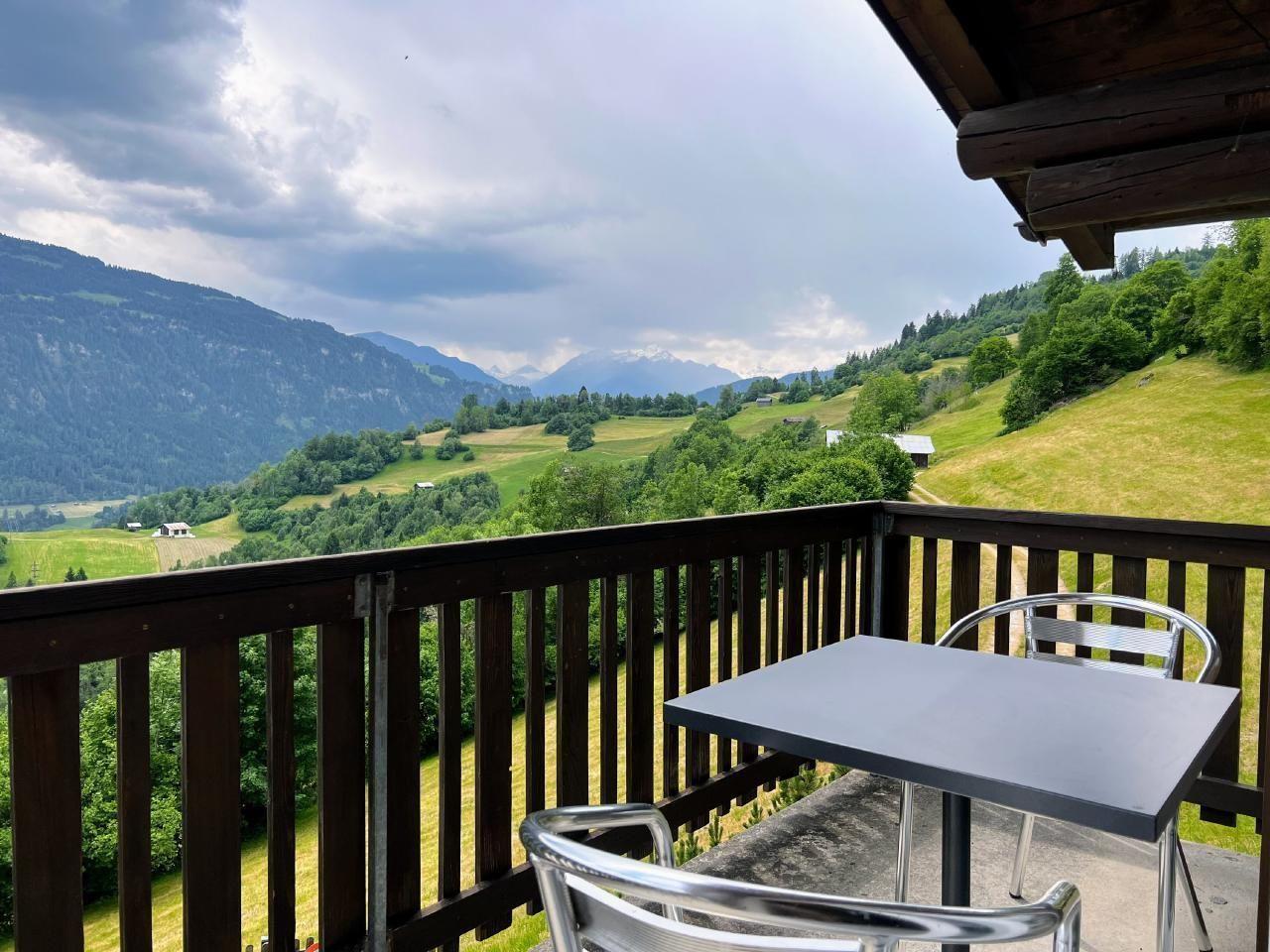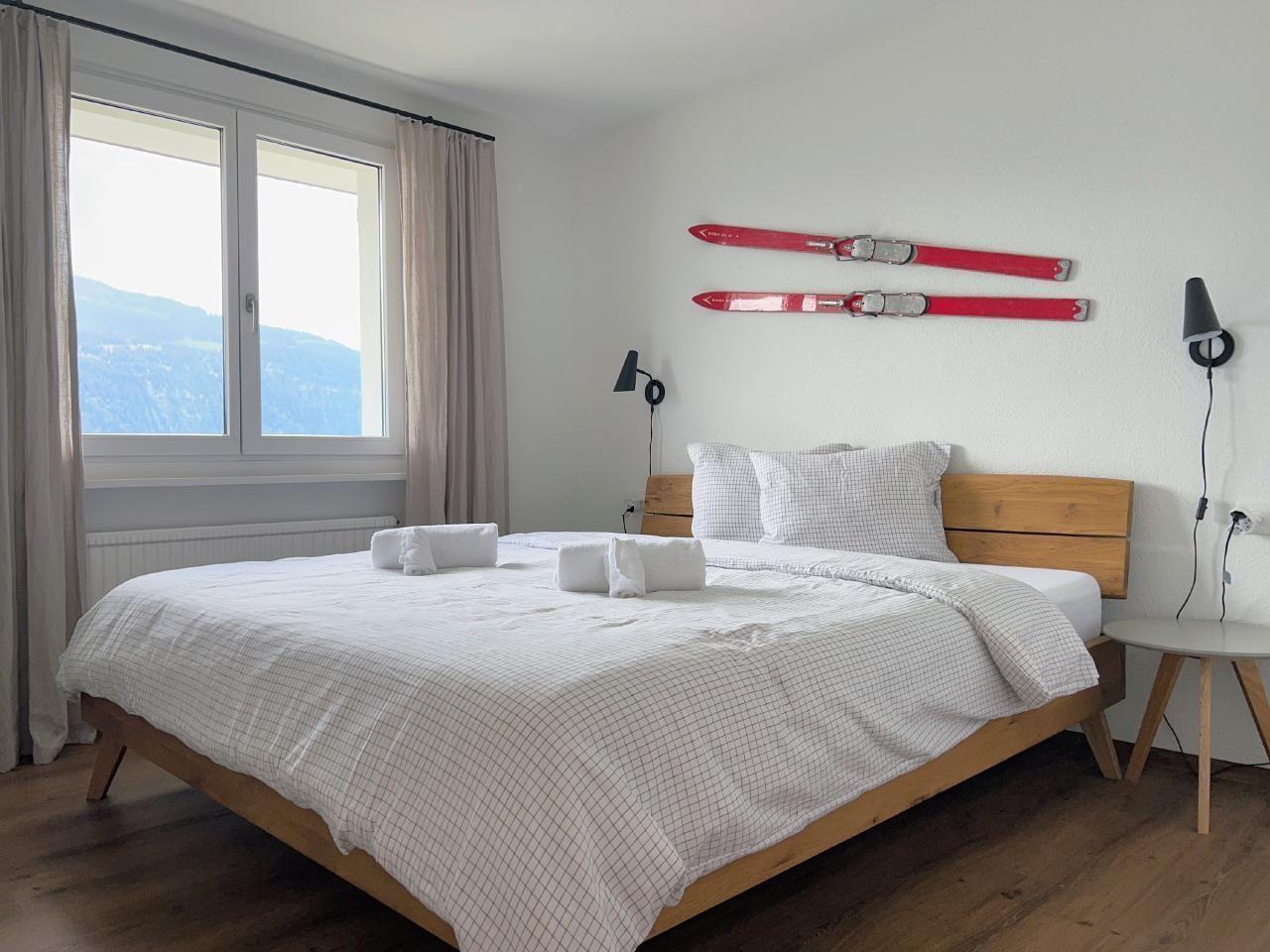 4 der 5 Schlafzimmer haben Bergblick - und das einzige Geräusch, das Sie nachts hören werden, sind vielleicht Kuhglocken. Der große, offene Ess-/Sitzbereich lädt zum gemütlichen Beisammensein mit bis zu 10 Personen an einem Tisch ein - oder verteilt auf den Raum und den Balkon/Terrasse.