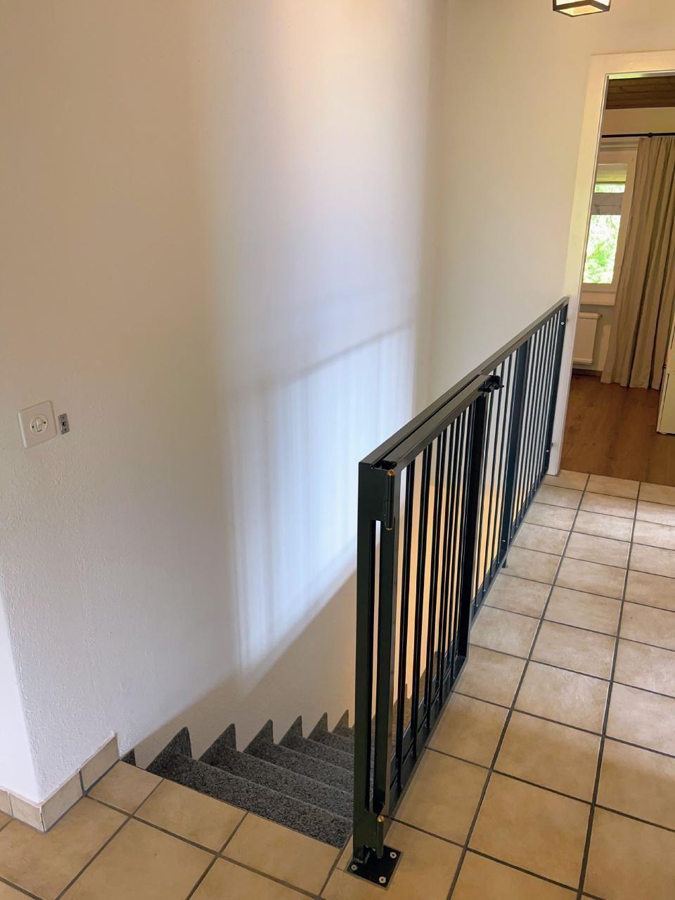 Im Obergeschoss befinden sich der Haupteingang, 3 Schlafzimmer, 2 Bäder und der kürzlich kombinierte Küchen-/Wohnbereich mit übergroßen Fenstern, die einen spektakulären Blick auf die umliegenden Berge bieten. Ein 200 Jahre alter Massivholztisch bietet Platz für 10 Personen und ein 65-Zoll-4K-Fernseher sorgt für gute Unterhaltung. Von diesem Raum aus gelangt man auch auf den Balkon und die Terrasse, die beide absolute Privatsphäre (keine Nachbarn im Westen...) und einen atemberaubenden Blick auf die Berge und das darunter liegende Tal bieten.