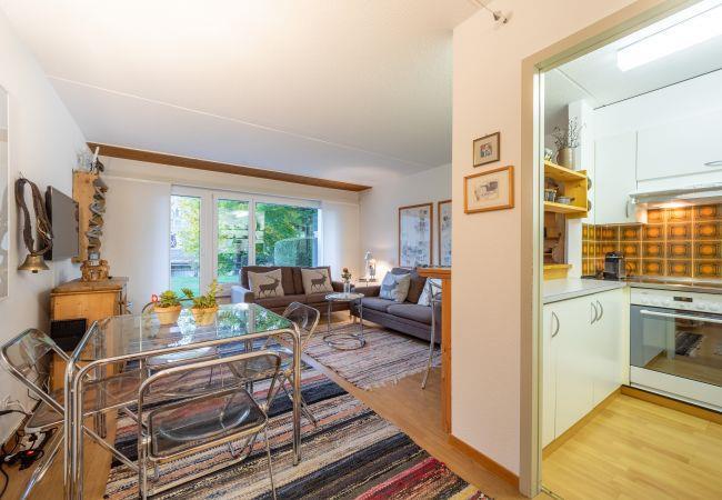 Gemütlich und charmant eingerichtete 2.5-Zimmerwohnung mit einem Flair für Alpenchic. Grosses Schlafzimmer mit Doppelbett und einer Schlafcouch im Wohnzimmer. Die Wohnung ist sehr hell. Vom Wohnzimmer aus gelangt man direkt in den Garten mit einem Aussensitzplatz.