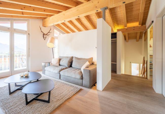 Die lichtdurchflutete Designer-Ferienwohnung COCOON-LAAX befindet sich im Dachstock eines Doppel-Chalets und wurde 2013 innen komplett neu ausgebaut. Das Innenarchitektur-Konzept zeichnet sich durch edle Materialien, ruhige Farbkombinationen und zeitgemässe Designermöbel aus. Dank des Loftkonzeptes mit einem offenen Raumteiler ist die Wohnung ausserordentlich hell.