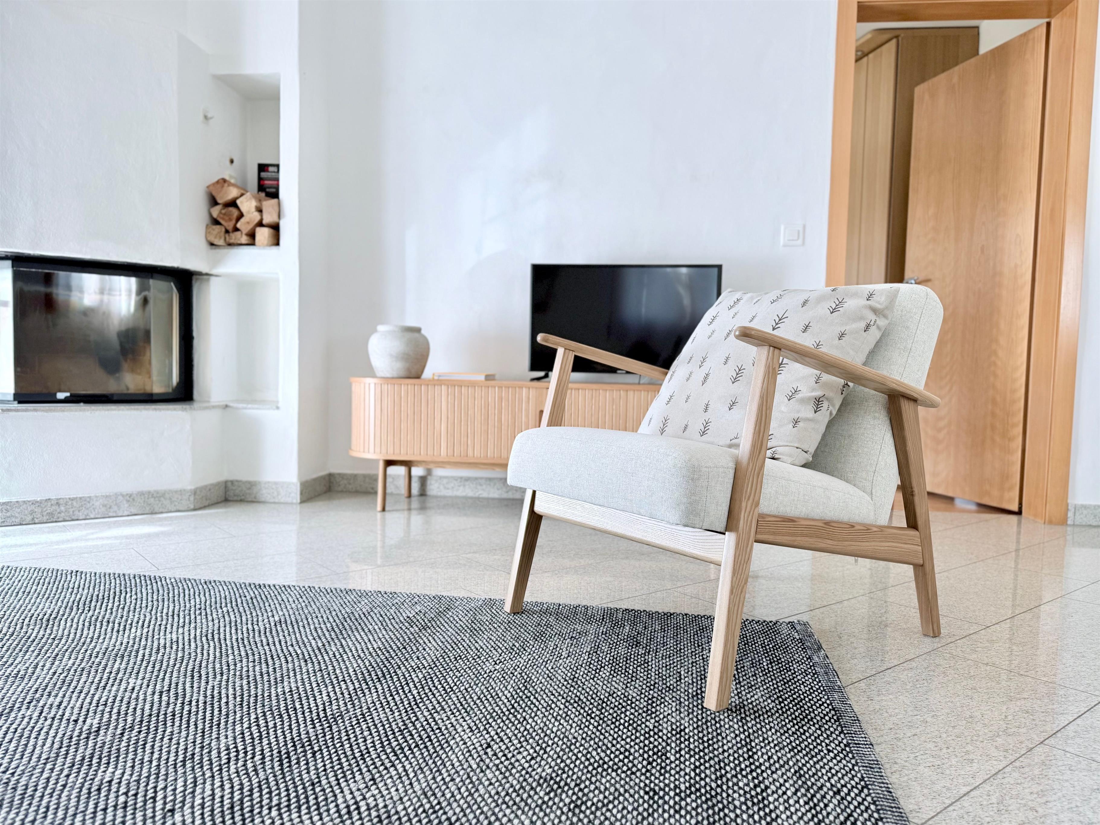 Im Inneren bietet die Wohnung eine praktische und dennoch ästhetisch ansprechende Einrichtung mit zwei gemütlichen Schlafzimmern und zwei Badezimmern, die Privatsphäre und Komfort für alle Gäste gewährleisten. Die Fußbodenheizung sorgt für eine warme und einladende Umgebung, unabhängig vom Wetter draußen. Die voll ausgestattete und geräumige Küche bietet alles, was Sie brauchen, um nach einem Tag voller Aktivitäten in den Bergen eine gute Mahlzeit zuzubereiten.