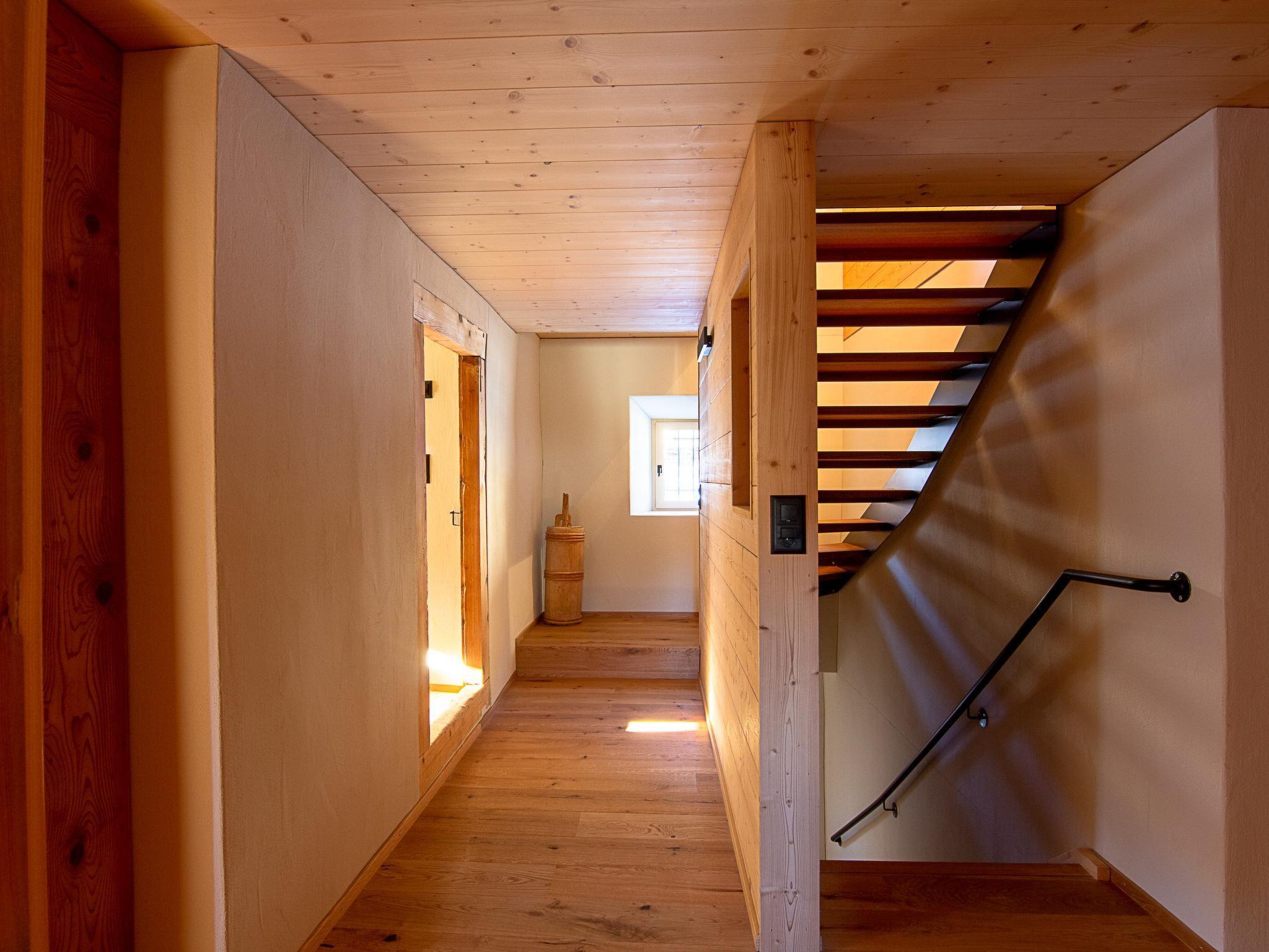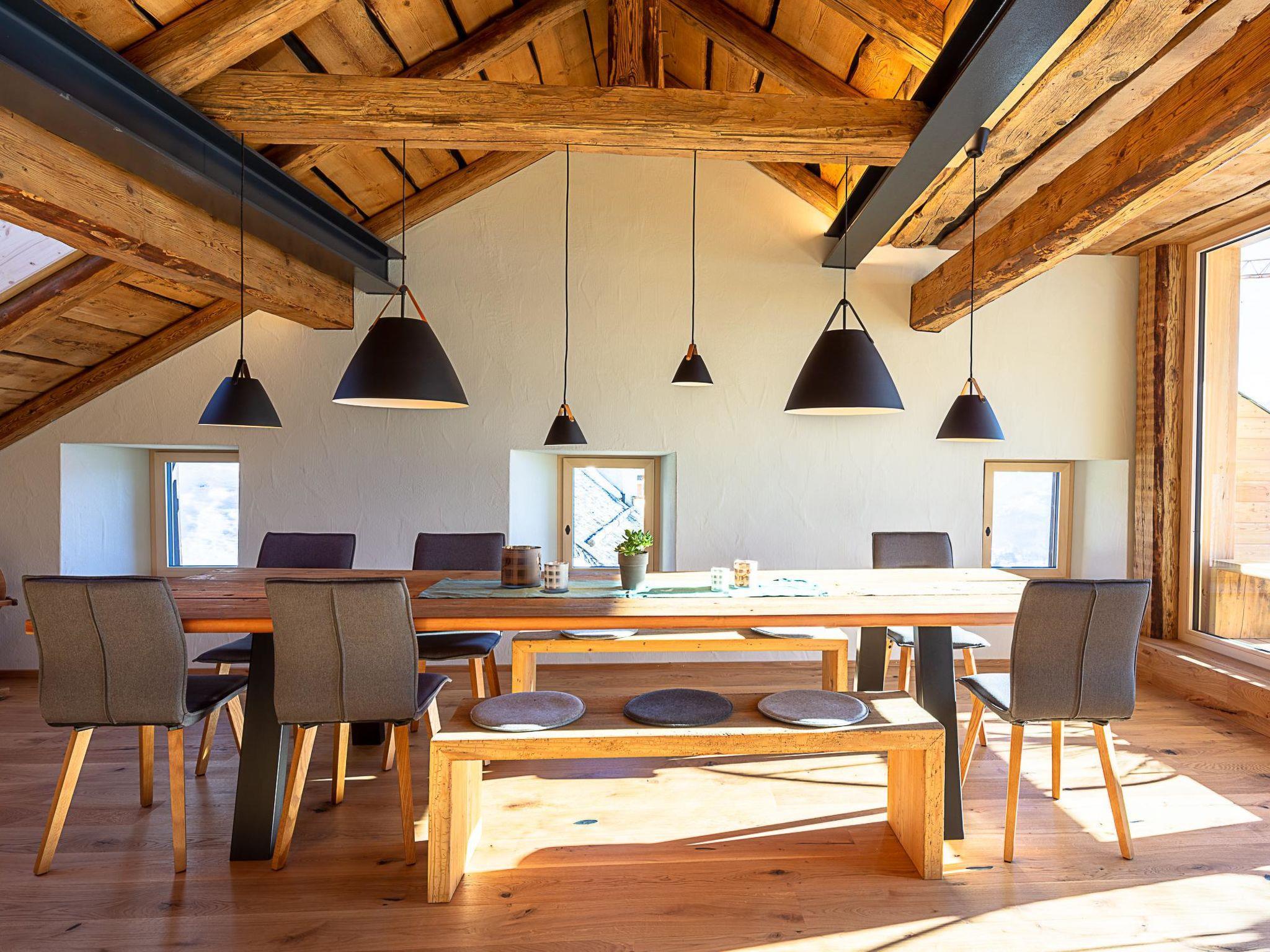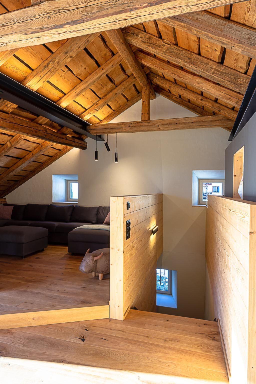 200 m2. Weitere Angaben des Anbieters: Das Ferienhaus liegt im Zentrum von Lain, direkt neben der Kirche. Mit viel Herzblut und Eigenleistung haben wir das Gebäude im Jahr 2021 saniert, erweitert und mit einem hochwertigen Ausbaustandard zu einem gemütlichen Ferienhaus, mit viel Charme ausgebaut. Der Wohnbereich liegt im alten, aufgerüsteten Dachstuhl und macht die Abende im Kreise der Familie oder mit Freunden besonders gemütlich. Von der neuen Dachterrasse hat man einen schönen Weitblick über das Dorf in die Südtäler. Das Gebäude kommt innen in einem neuen modernen Look daher, bei dem aber die alten Holzelemente bewusst belassen, aufgerüstet und wiederverwendet wurden. Entstanden ist ein Haus mit viel Charakter.