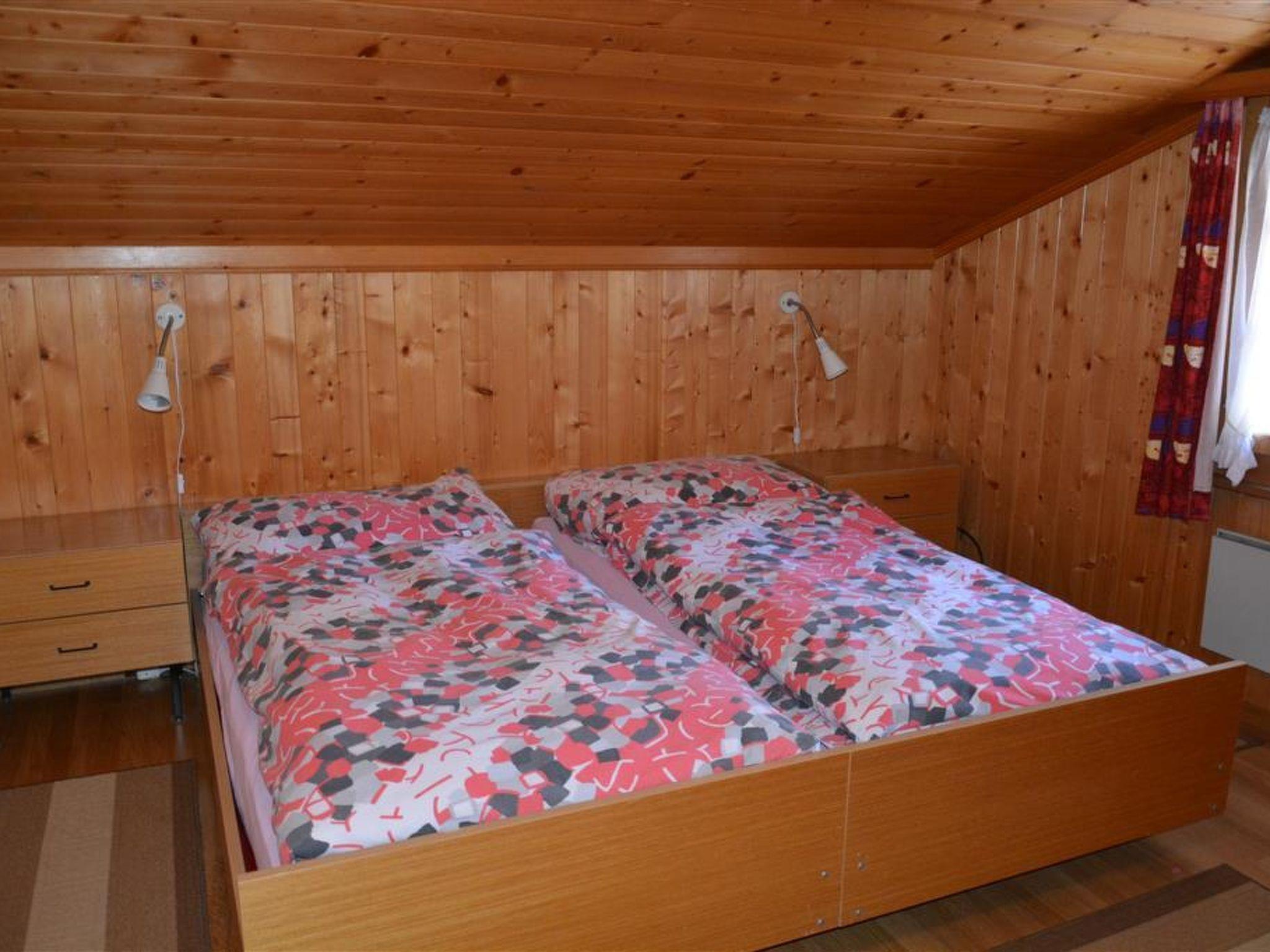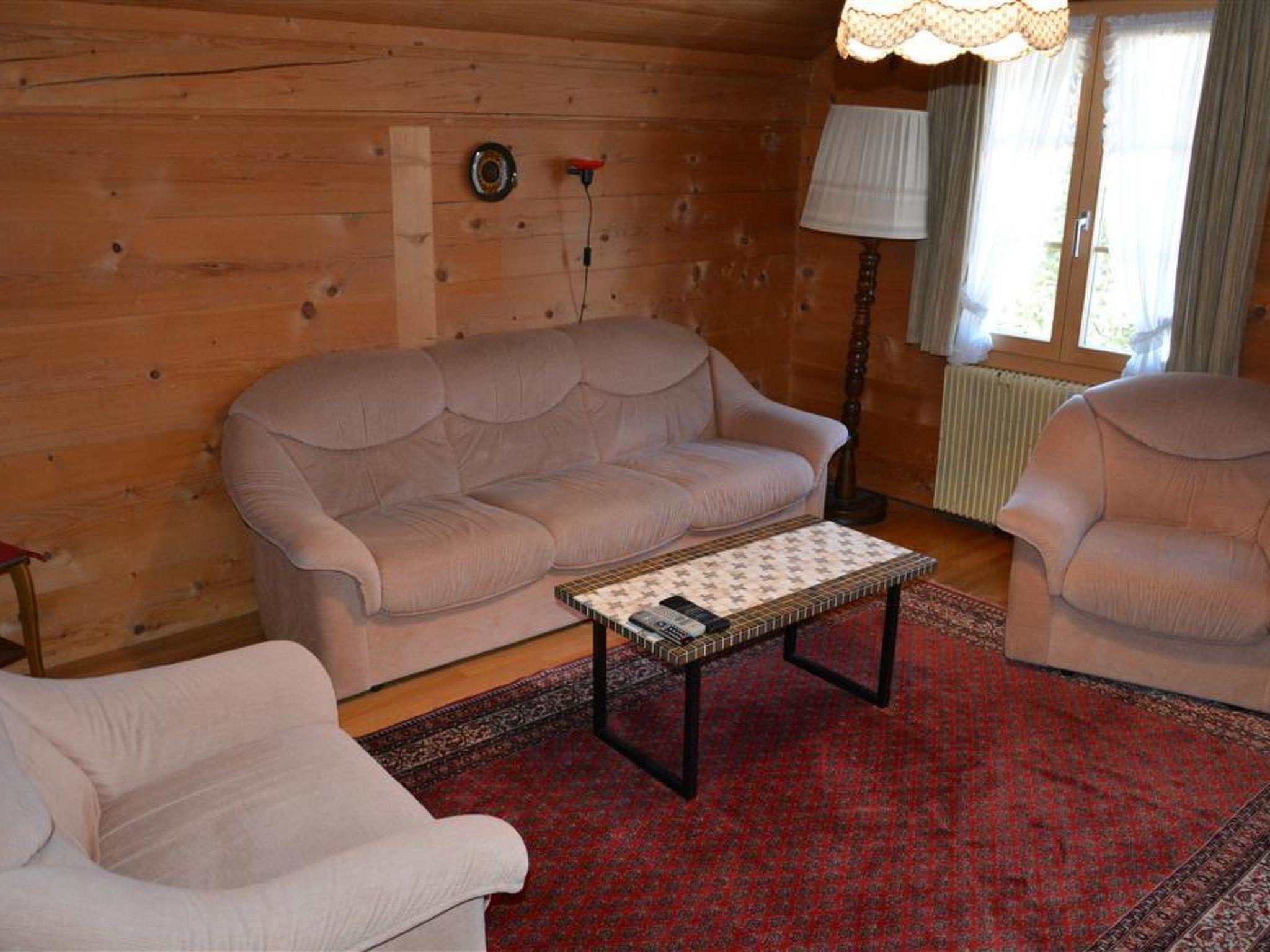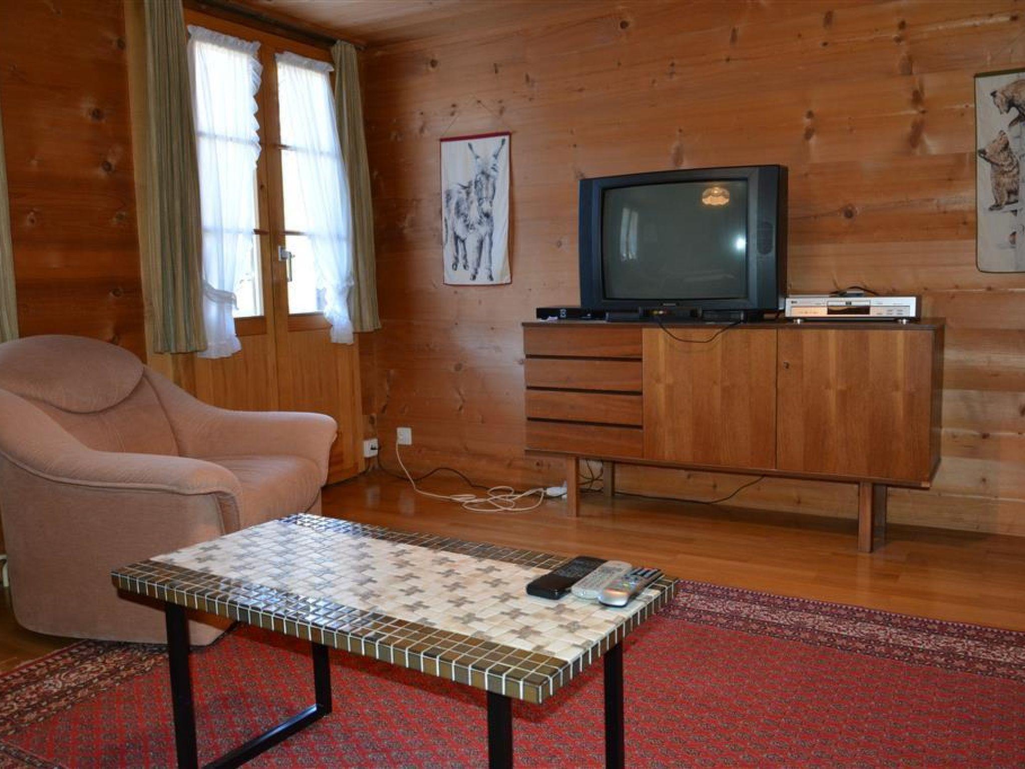 Wohnzimmer mit Bettsofa (140x190cm), 2 Sessel, TV mit DVD, Telefon. 3 Doppelschlafzimmer mit je 2 Betten (2x90x190cm). 1 Schlafzimmer mit 1 Bett (90x190cm). Grosse Wohnküche mit Herd, Backofen, Mikrowelle und Fondue- / Raclette-Set. Essecke. Badezimmer mit Dusche/WC. Grosser Eingang. Kinderbett (60x120cm) inkl. Bettwäsche vorhanden.