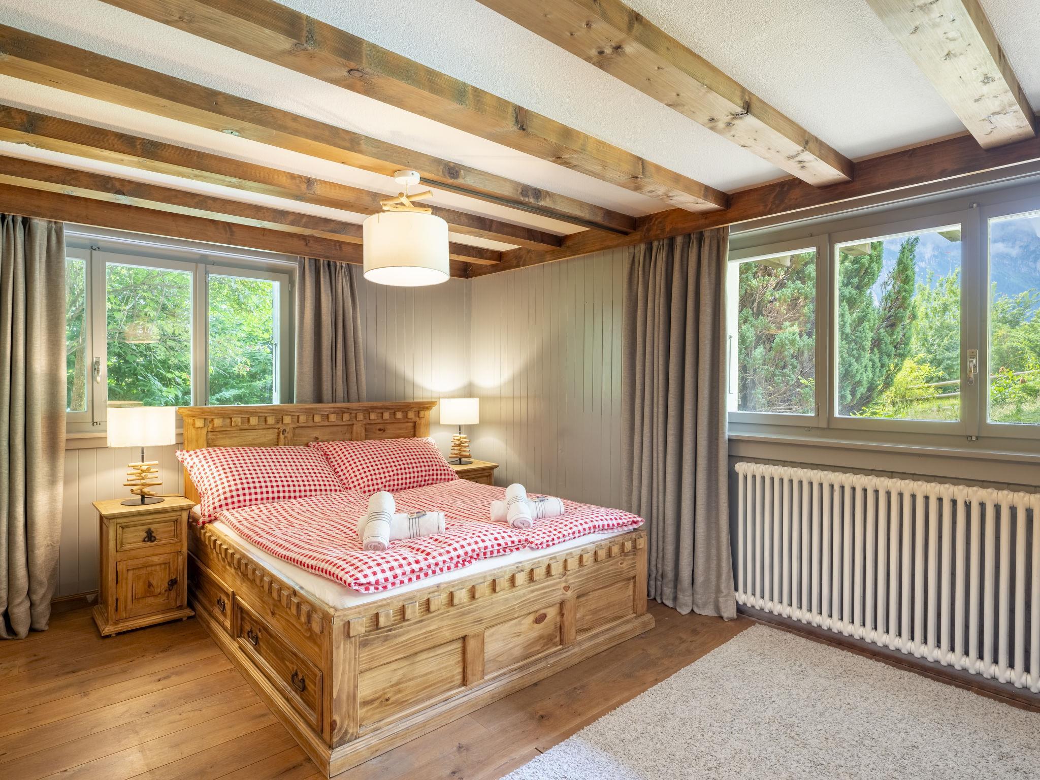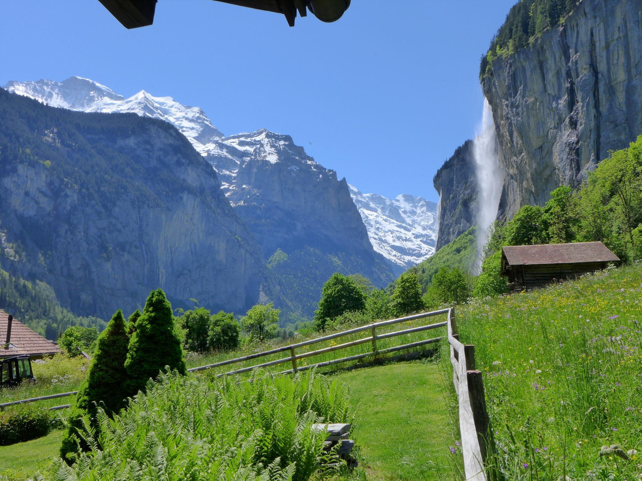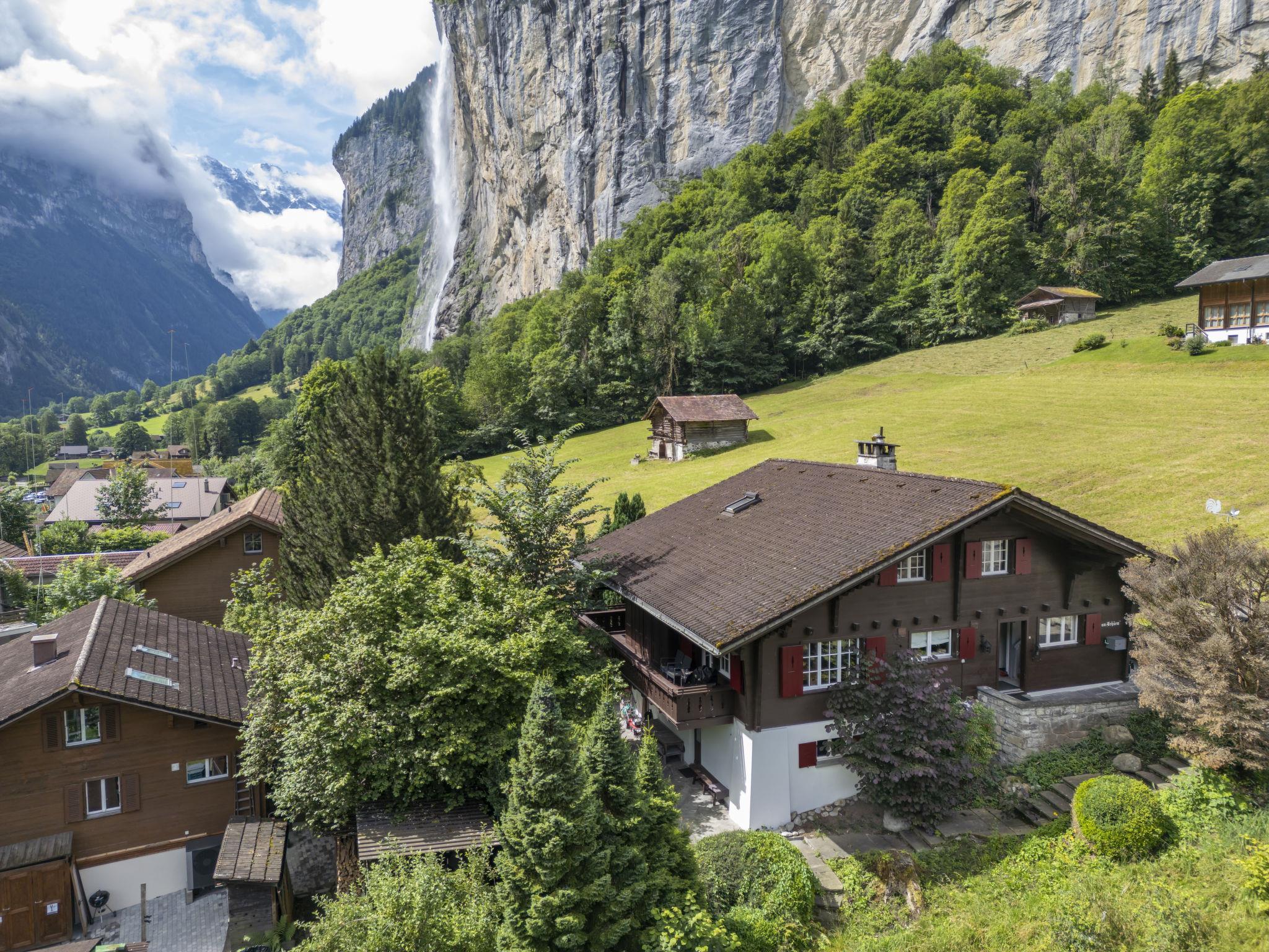 Lauterbrunnen 10 km von Interlaken: Grosses, komfortables Chalet "am Schärm", auf 3 Stockwerken, umgeben von Bäumen und Wiesen. Im Ortszentrum von Lauterbrunnen, zentrale, ruhige, sonnige Lage am Hang. Zur Alleinbenutzung: grosser Garten Rasen und Pflanzen. Gartenmöbel, Grill. Im Hause: Skiraum, Zentralheizung, Waschmaschine, Wäschetrockner, Skischuhtrockner. Wäschewechsel (zusätzlich extra). Wohnungsreinigung möglich (extra). Schmale Zufahrt bis zum Haus. Im Winter 4x4 empfohlen. Breite der Zufahrtsstrasse: 320 cm. Parkplatz (für 4 Autos) beim Haus. Einkaufsgeschäft 300 m, Supermarkt 500 m, Restaurant, Bäckerei 400 m, Bushaltestelle 300 m, Bahnstation "Lauterbrunnen", Freibad 500 m. Golfplatz (18 Loch) 11 km, Tennis 600 m, Minigolf 600 m, Luftseilbahn 500 m, Skiverleih 250 m, Skibushaltestelle 200 m. Nahe gelegene Sehenswürdigkeiten: Jungfraujoch, Schilthorn, Interlaken 12 km. Bekannte Skigebiete sind gut erreichbar: Wengen - Kleine Scheidegg, Mürren Schilthorn. Bekannte Seen in der Umgebung sind gut erreichbar: Thunersee, Brienzersee. Wandergebiete: Jungfrau Region, Hinteres Lauterbrunnental. Bitte beachten: geeignet für Familien, Babyausstattung (extra). Jugendgruppen nur auf Anfrage. Bei guter Schneelage Zufahrt mit den Skiern bis zum Haus.