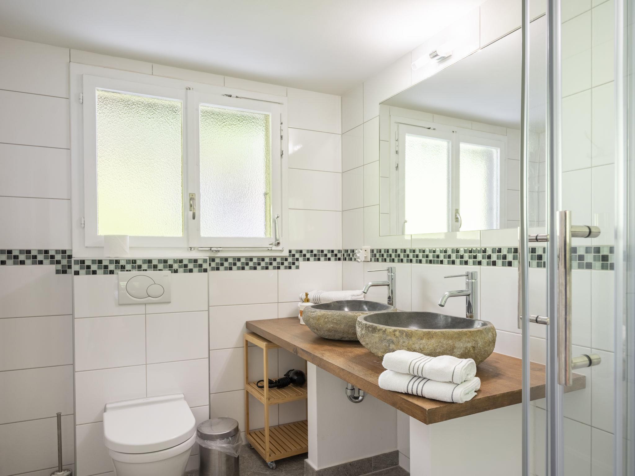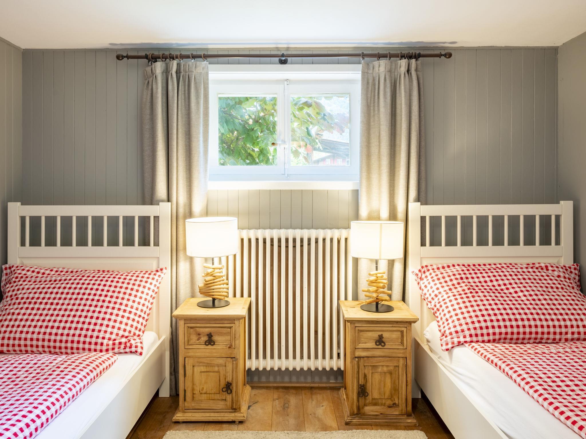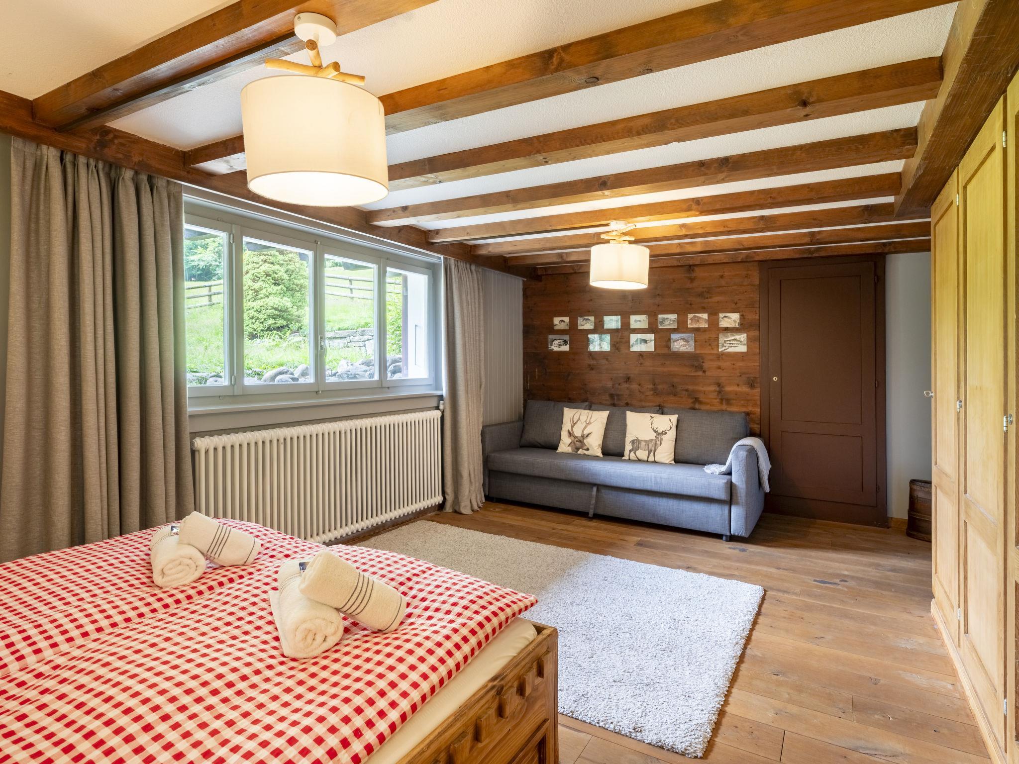 "Chalet am Schärm", 7-Zimmer-Chalet 200 m2 auf 3 Stockwerken. Geräumig und hell, teilweise renoviert im Jahre 2022, geschmackvoll und gemütlich eingerichtet: offenes Wohn-/Esszimmer 35 m2 mit offenem Kamin, Kabel-TV, Digital-TV, Internationale TV-Sender und Flachbildschirm. Ausgang zum Balkon. 1 Zimmer 20 m2 mit 1 franz. Bett (160 cm, Länge 200 cm). Offene Küche 12 m2 (Backofen, Geschirrspüler, 5 Glaskeramikplatten, Mikrowelle, Tiefkühler, elektrische Kaffeemaschine, Racletteofen, Fondue Set (Käse)). Dusche/WC. Unteres Geschoss: 1 Zimmer 28 m2 mit 1 Diwanbett (130 cm, Länge 200 cm), 1 franz. Bett (160 cm, Länge 200 cm). 1 Zimmer 15 m2 mit 2 Betten (90 cm, Länge 200 cm). Ausgang zum Garten. Bad/WC, Doppelwaschbecken. Obergeschoss: 3 abgeschrägte Zimmer, jedes Zimmer mit 1 franz. Bett (160 cm, Länge 200 cm). Dusche/WC. Balkon 35 m2, Gartensitzplatz. Balkonmöbel, Liegestühle (6), Abstellkammer. Herrliche Panoramasicht auf die Berge und die Landschaft. Zur Verfügung: Bügeleisen, Kinderhochstuhl, Babybett bis 4 Jahre (extra), Haartrockner. Internet (Wireless LAN, gratis). Bitte beachten: Nichtraucher-Haus. Rauchmelder, Feuerlöscher.