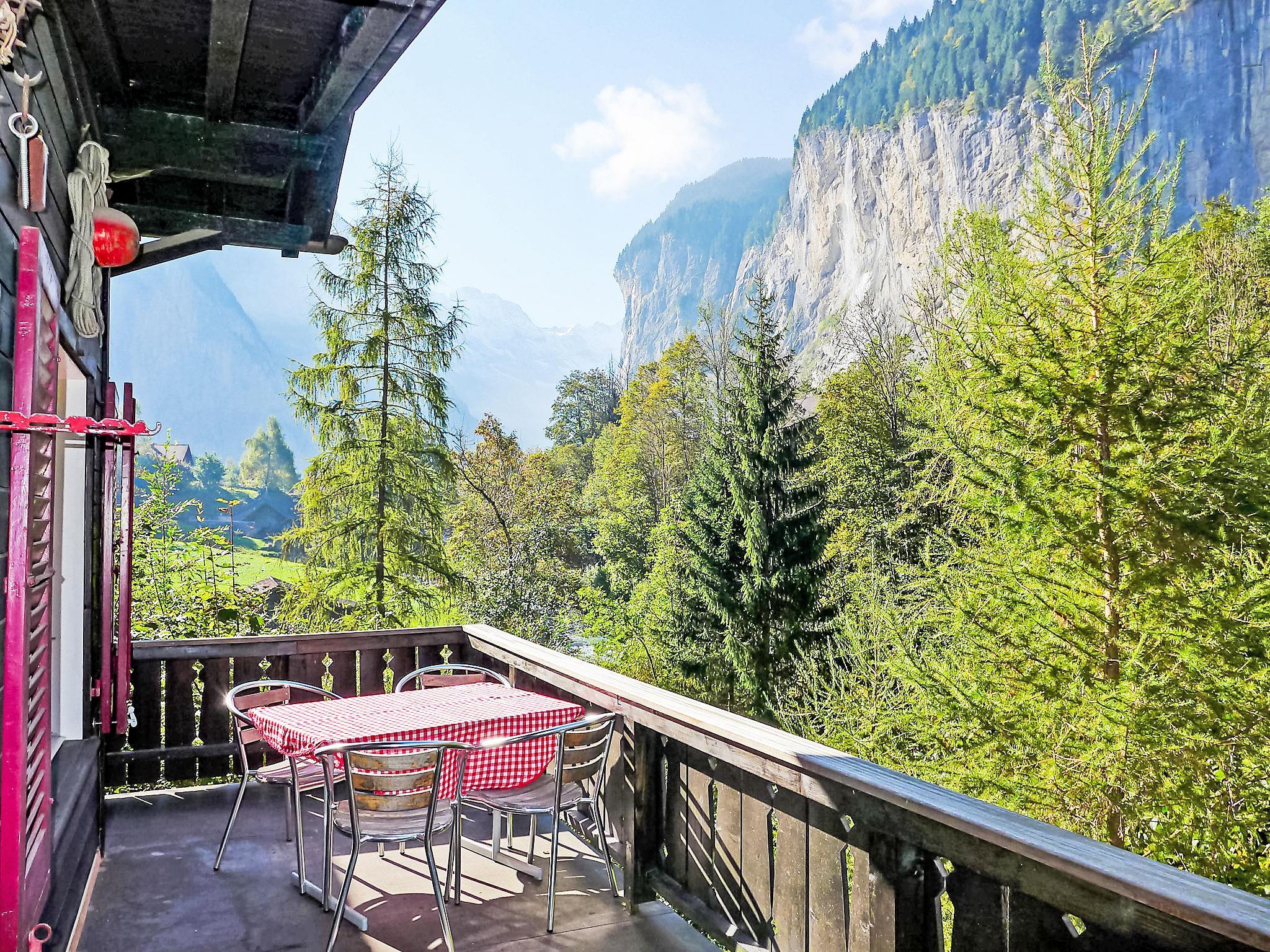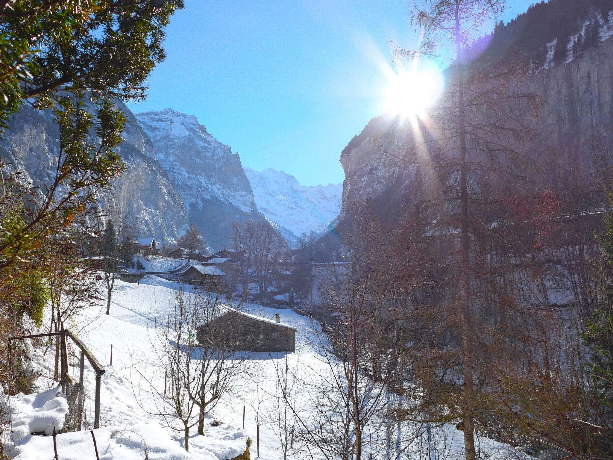 Rustikales Chalet "Stocki", einseitig angebaut. Im Ortsteil Stocki, ruhige, sonnige Lage am Hang, 20 m vom Bach, im Grünen. Zur Alleinbenutzung: Sitzplatz, Gartenmöbel, Grill. Zufahrt bis 100 m zum Haus. Öffentliches Parkhaus in 1.2 km, öffentliche Parkplätze 150 m. Supermarkt 900 m, Restaurant 500 m, Bushaltestelle 300 m, Bahnstation "Lauterbrunnen" 1.2 km, Freibad 1 km. Tennis 500 m, Minigolf, Wanderwege ab Haus 100 m, Luftseilbahn 1.2 km, Skisportanlagen 1.2 km, Skibushaltestelle 300 m, Langlaufloipe 500 m, Eisfeld. Nahe gelegene Sehenswürdigkeiten: Jungfraujoch, Schilthorn, Interlaken, Trümmelbachfälle. Bekannte Skigebiete sind gut erreichbar: Wengen - Männlichen, Mürren - Schilthorn. Bekannte Seen in der Umgebung sind gut erreichbar: Brienzersee, Thunersee. Wandergebiete: Jungfrau Region. Bahnhof / Zentrum via Fussweg: 400m.