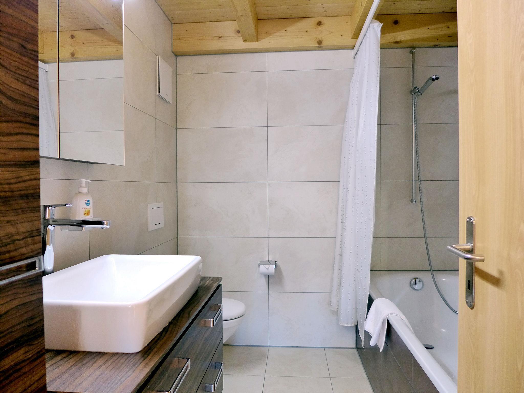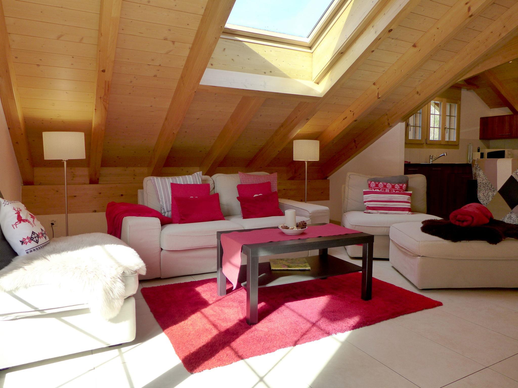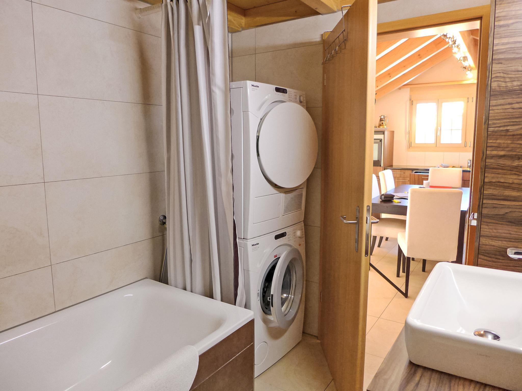 "Staubbach", 4-Zimmer-Maisonette-Wohnung 111 m2 auf 2 Stockwerken, im Dachgeschoss. Geräumig und hell, komfortabel und gemütlich eingerichtet: offenes Wohn-/Esszimmer 30 m2 mit Kabel-TV, Flachbildschirm, Radio und CD. Ausgang zum Balkon. 1 Zimmer mit 1 Doppelbett (2 x 80 cm, Länge 200 cm). 1 Zimmer mit 2 Betten (90 cm, Länge 200 cm). Offene Küche (Backofen, Geschirrspüler, 4 Glaskeramikplatten, Mikrowelle, elektrische Kaffeemaschine, Fondue Set (Käse)). Bad/WC. Obergeschoss: offene Galerie mit 1 Doppelbett (160 cm, Länge 200 cm), Dusche/WC. Balkon, Westlage. Balkonmöbel. Herrliche Sicht auf die Berge und die Landschaft. Zur Verfügung: Waschmaschine, Wäschetrockner, Bügeleisen, Haartrockner. Internet (WLAN, gratis). Parkplatz (1 Auto) beim Haus. Bitte beachten: geeignet für Familien. Nichtraucher-Unterkunft. Anstelle eines abgeschlossenen Schlafzimmers befinden sich manche Schlafplätze in einem offenen Bereich (Galerie, Nische etc.).