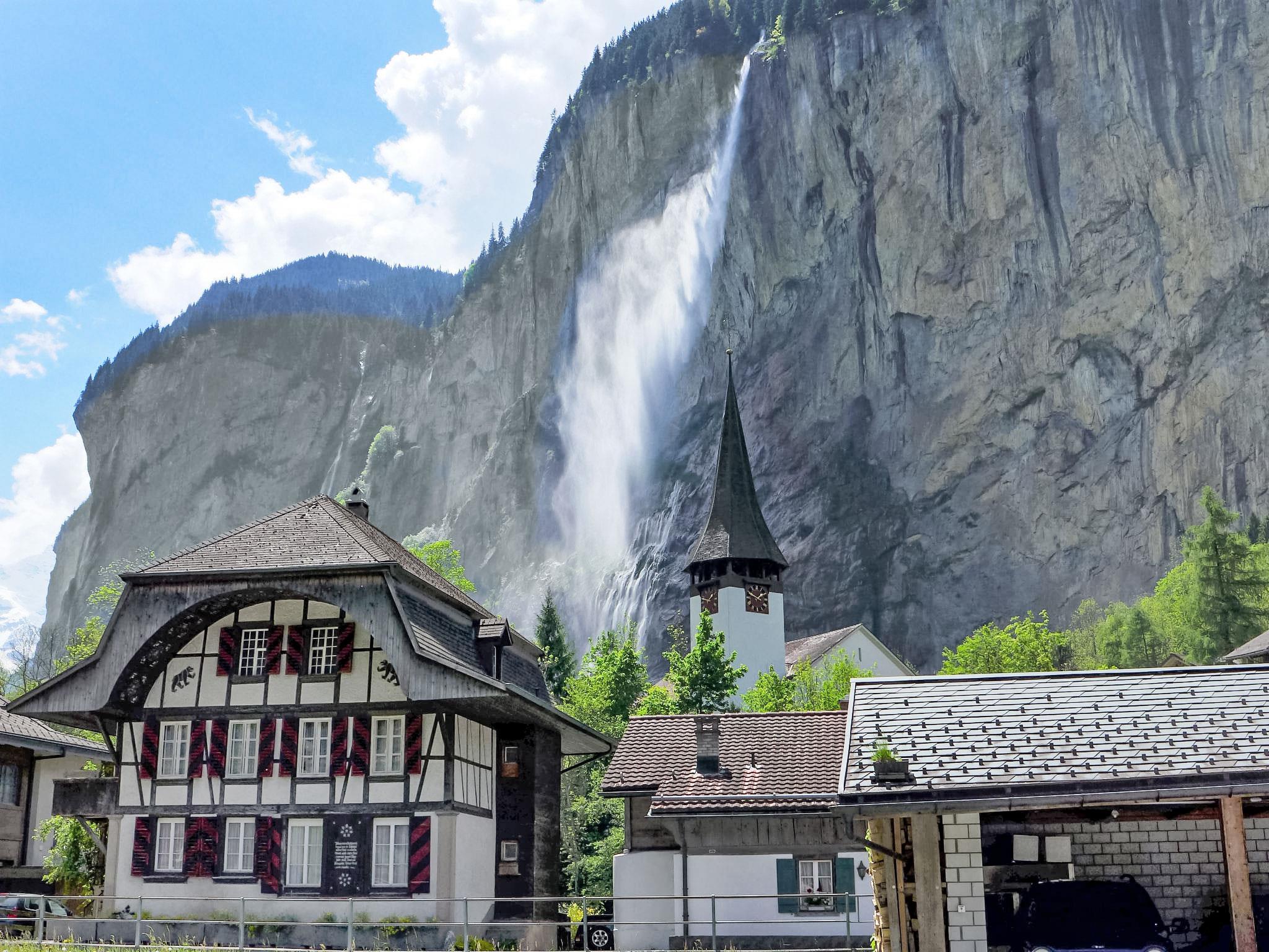 Lauterbrunnen: Rustikales, einfaches Chalet "Grosshorn", auf 2 Stockwerken. Im Ortsteil Ey, sonnige Lage in einem Wohnquartier, an einer Strasse. Im Hause: Einstellraum für Fahrräder, Skiraum, Zentralheizung. Parkplatz. Einkaufsgeschäft 300 m, Lebensmittelgeschäft 500 m, Supermarkt 600 m, Restaurant 200 m, Bushaltestelle 50 m, Bahnstation 800 m, Freibad 800 m. Tennis 200 m, Minigolf, Wanderwege ab Haus 50 m, Luftseilbahn 800 m, Skisportanlagen 4 km, Skibushaltestelle, Langlaufloipe 200 m, Eisfeld. Nahe gelegene Sehenswürdigkeiten: Trümmelbach Wasserfälle, Schilthorn Piz Gloria. Bekannte Skigebiete sind gut erreichbar: Mürren Schilthorn, Wengen - Kleine Scheidegg. Bekannte Seen in der Umgebung sind gut erreichbar: Brienzersee, Thunersee 15 km. Wandergebiete: UNESCO-Welterbe Jungfau-Aletsch, Mürren, Hinteres Lauterbrunnental. Bitte beachten: Gratis Skibus. Der gratis Skibus fährt zum Skigebiet Mürren-Schilthorn. Bitte beachten: Der Besitzer wohnt im selben Haus. Aussicht auf den Staubbachfall.