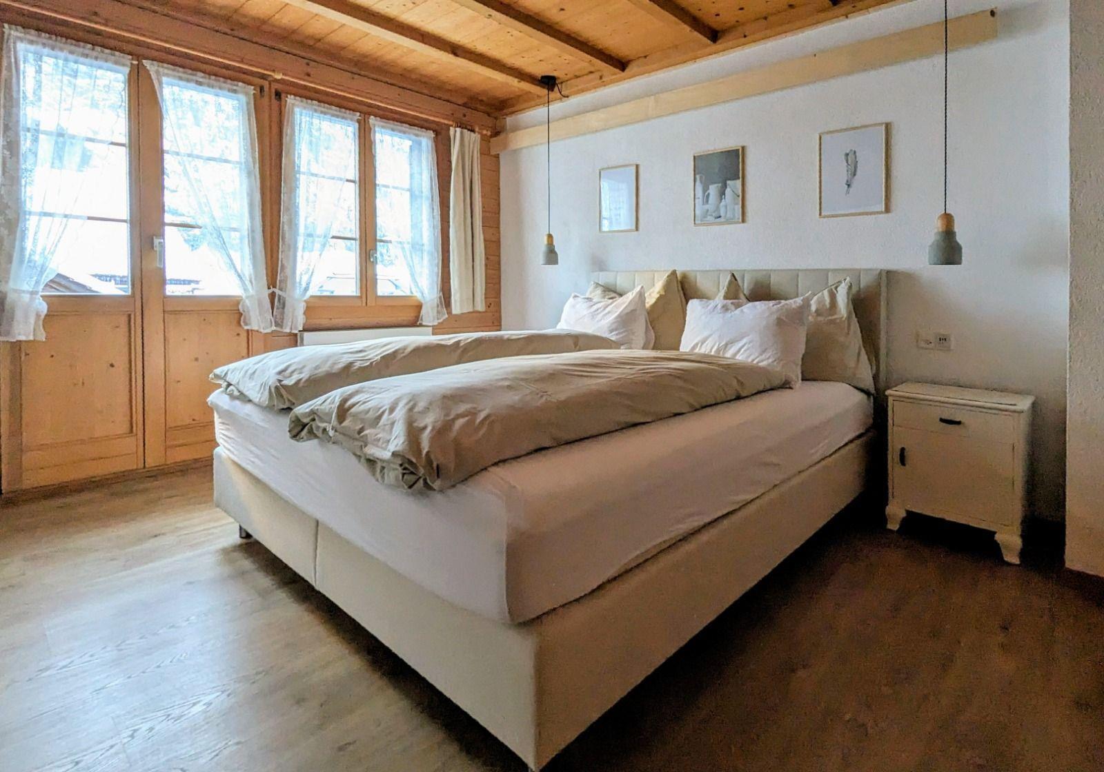 Zur Wohung gehört ein grosser Balkon mit toller Aussicht auf das Lauterbrunnental.