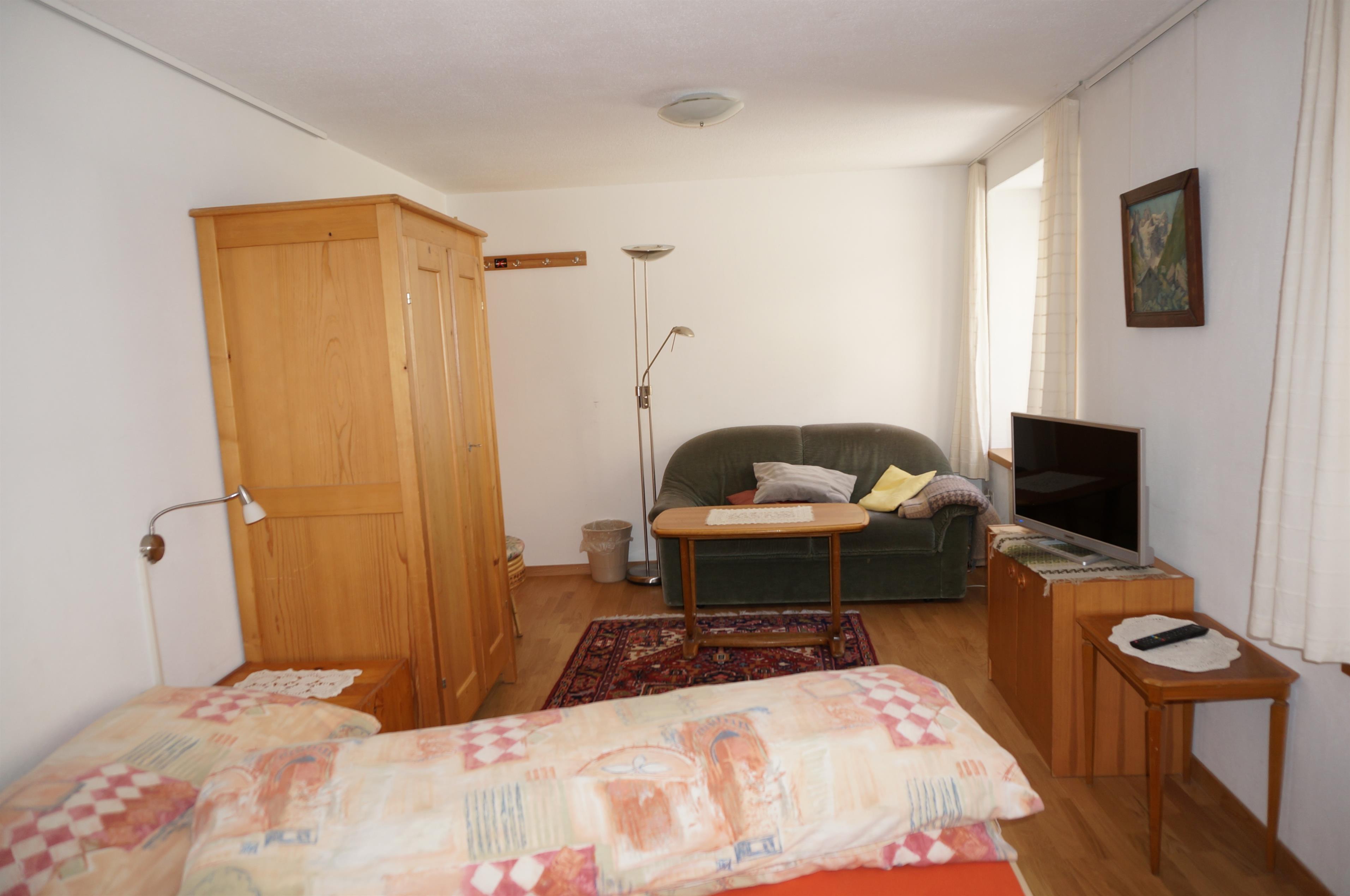 1 Doppelzimmer mit 2 Einzelbetten, Nachttischlein, Kasten, Sofa, Radio, TV, W-Lan, Elektroheizung, Parkettboden.