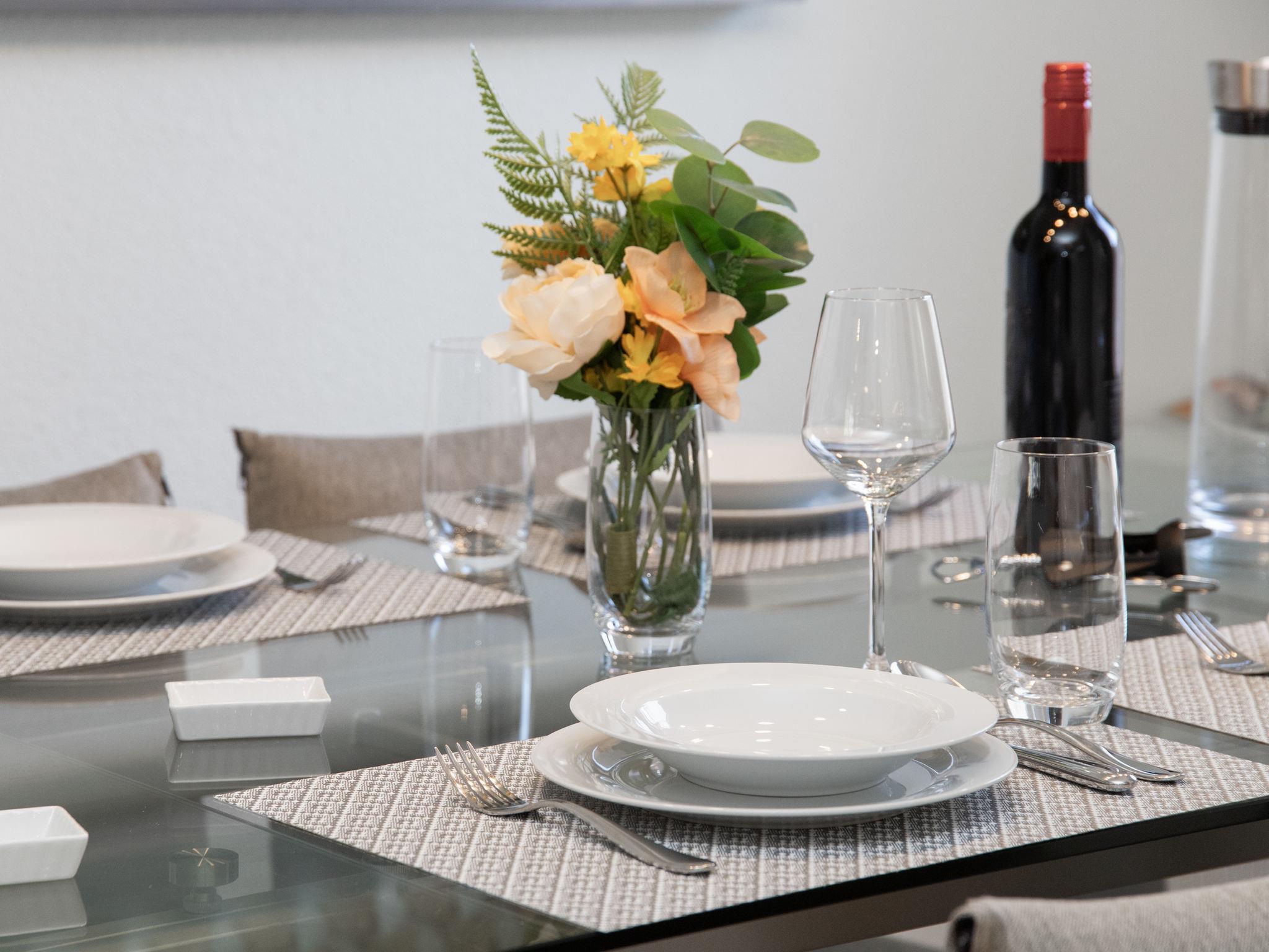 "Tasman S12/R", 3-Zimmer-Wohnung 89 m2, im Erdgeschoss. Komfortabel und geschmackvoll eingerichtet: Wohn-/Esszimmer mit Kabel-TV. Ausgang zum Balkon. Offene Küche (Backofen, Geschirrspüler, 4 Glaskeramikplatten, Toaster, Wasserkocher, Mikrowelle, Tiefkühler, elektrische Kaffeemaschine, Kapseln für die Kaffeemaschine (Nespresso), Racletteofen, Fondue Set (Käse)). Sep. WC. Obergeschoss: mit 1 Doppelbett (2 x 90 cm, Länge 200 cm). 1 Zimmer mit 2 Betten (90 cm, Länge 200 cm). Dusche/WC. Balkon. Balkonmöbel. Schöne Sicht auf die Berge, die Landschaft und den Kanal. Zur Verfügung: Waschmaschine, Wäschetrockner. Internet (WLAN, gratis). Parkplatz Nr. 136. Bitte beachten: Nichtraucher-Unterkunft.