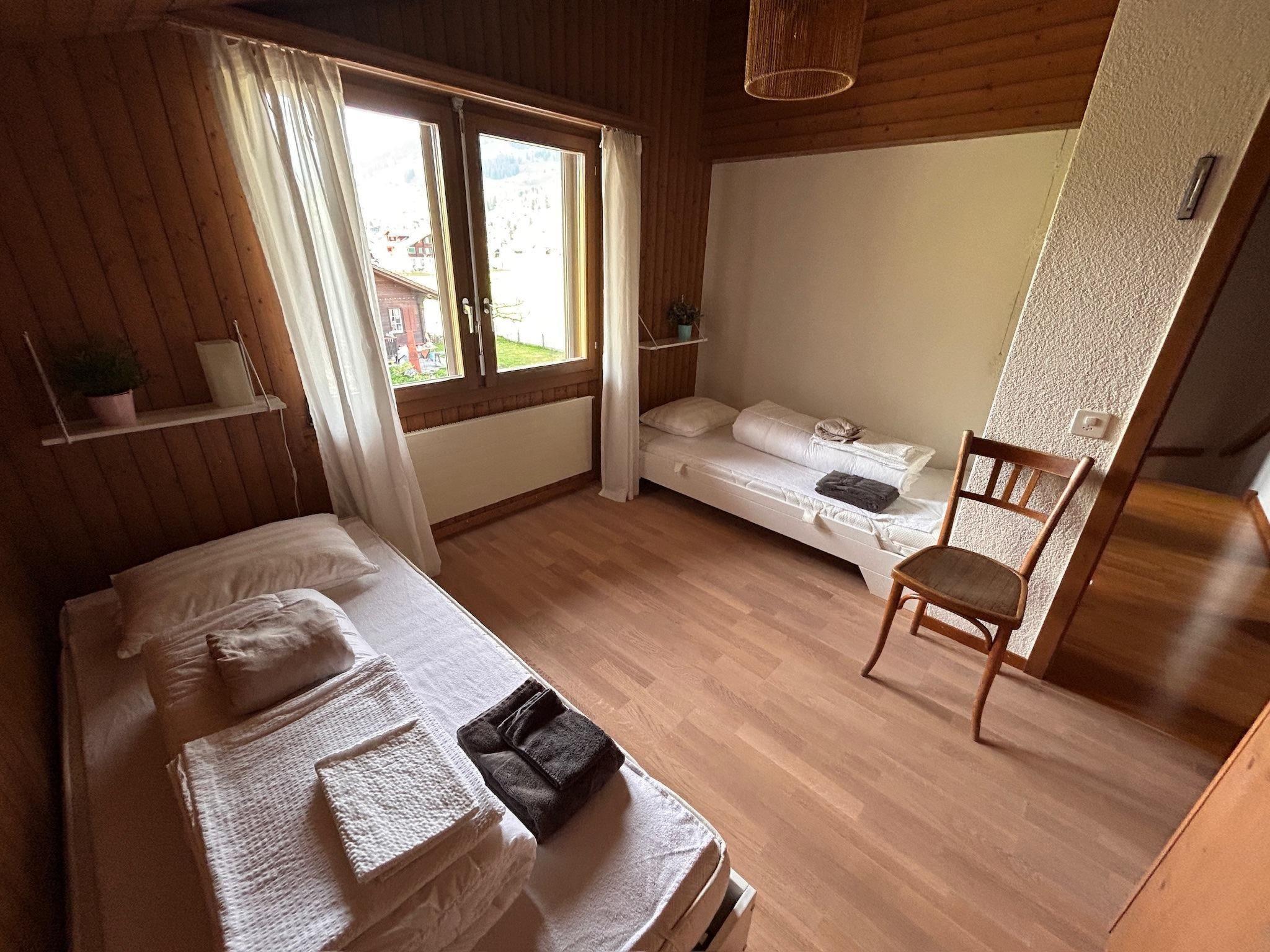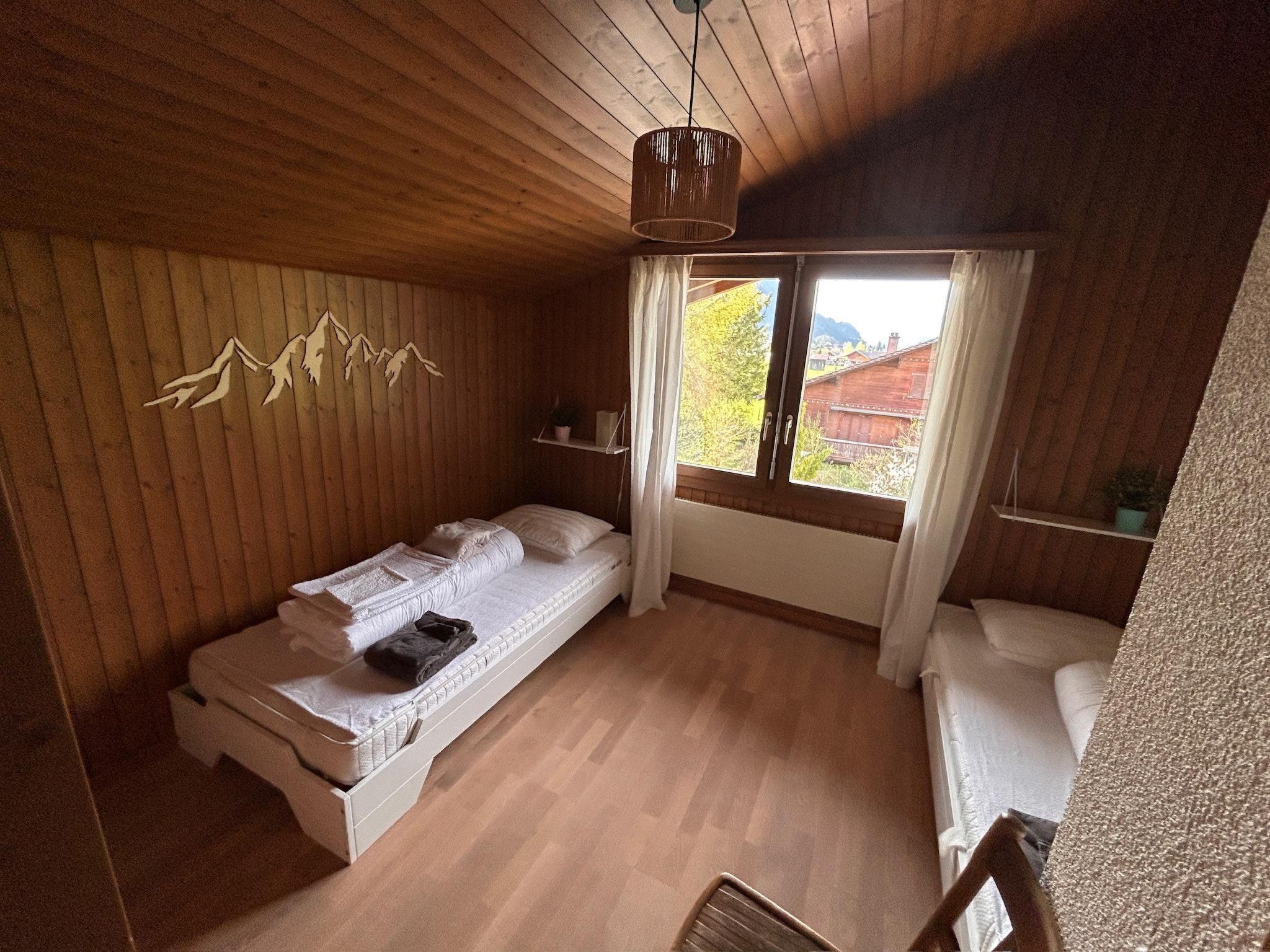 Gemütliches Wohn-/Esszimmer mit grosser offener Küche, Esstisch für acht Personen, Sofa und einen Sessel, Swisscom-TV Küche mit Geschirrspüler, Backofen/Steamer, Nespresso-Kaffeemaschine. Schlafzimer 1: 160 x 200 Doppelbett mit Schrank und Balkon 2: 140 x 200 Doppelbett mit Schrank 3: zwei 90 x 200 Einzelbetten Estrichzimmer: zwei 90 x 200 Einzelbetten (zusammenschiebbar) Badezimmer gross: Dusch-Badewanne, Doppelwaschbecken und WC, Badezimmer klein: Dusche und WC. Balkon EG: Tisch mit fünf Stühlen und Lounge-Möbel, Balkon OG: Tisch mit zwei Stühlen. Drei ungedeckte Parkplätze vorhanden. ÖV inklusive im Simmental und Saanenland mit der SIMMENTAL CARD: Übernachtungsgäste in der Ferienregion Lenk-Simmental fahren mit einer gültigen Gästekarte kostenlos mit dem öffentlichen Verkehr für Ausflüge.