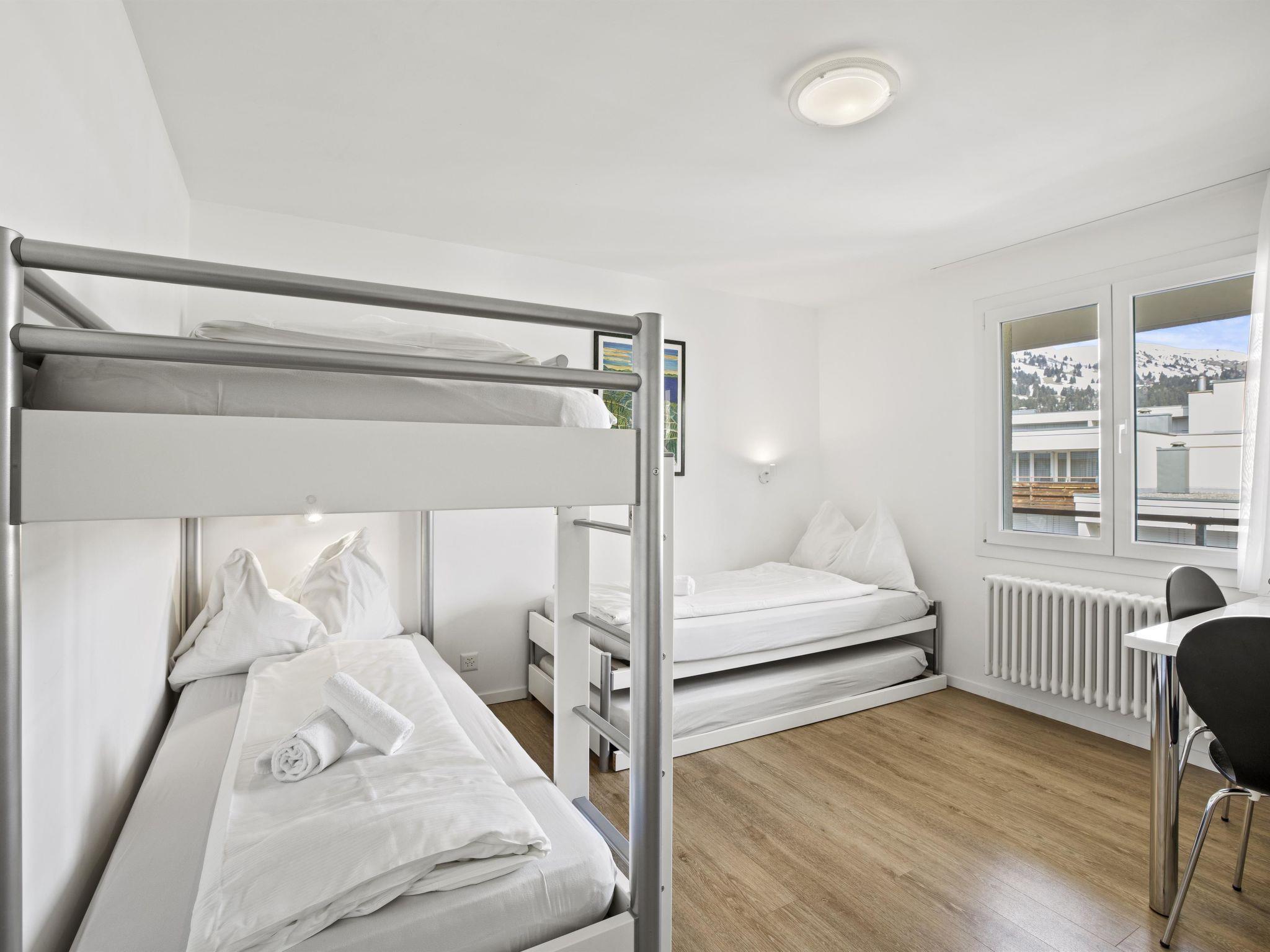 Haus Ladina/ 5. Obergeschoss – rechts / Lift / Wlan ja / 1 Zimmer mit Doppelbett / 1 Zimmer mit Stockbett und Einzelbett / 1 Badezimmer mit WC und Dusche / 1 Separates WC Alle Seestrassenwohnungen Hausnummer 4-6 liegen mitten im Zentrum von Lenzerheide und verfügen über einen Südbalkon, ebenso sind sie direkt an der Skipiste/Langlaufloipe und in unmittelbarer Nähe zum Gratissportbus und verschiedenen Einkaufsmöglichkeiten. Eine gute Ausgangslage für alle Winter/Sommer-Aktivitäten für die ganze Familie. (Im gleichen Haus Ladina befinden sich die Ferienwohnungen Nr.58, Nr.63 und Nr.68)
