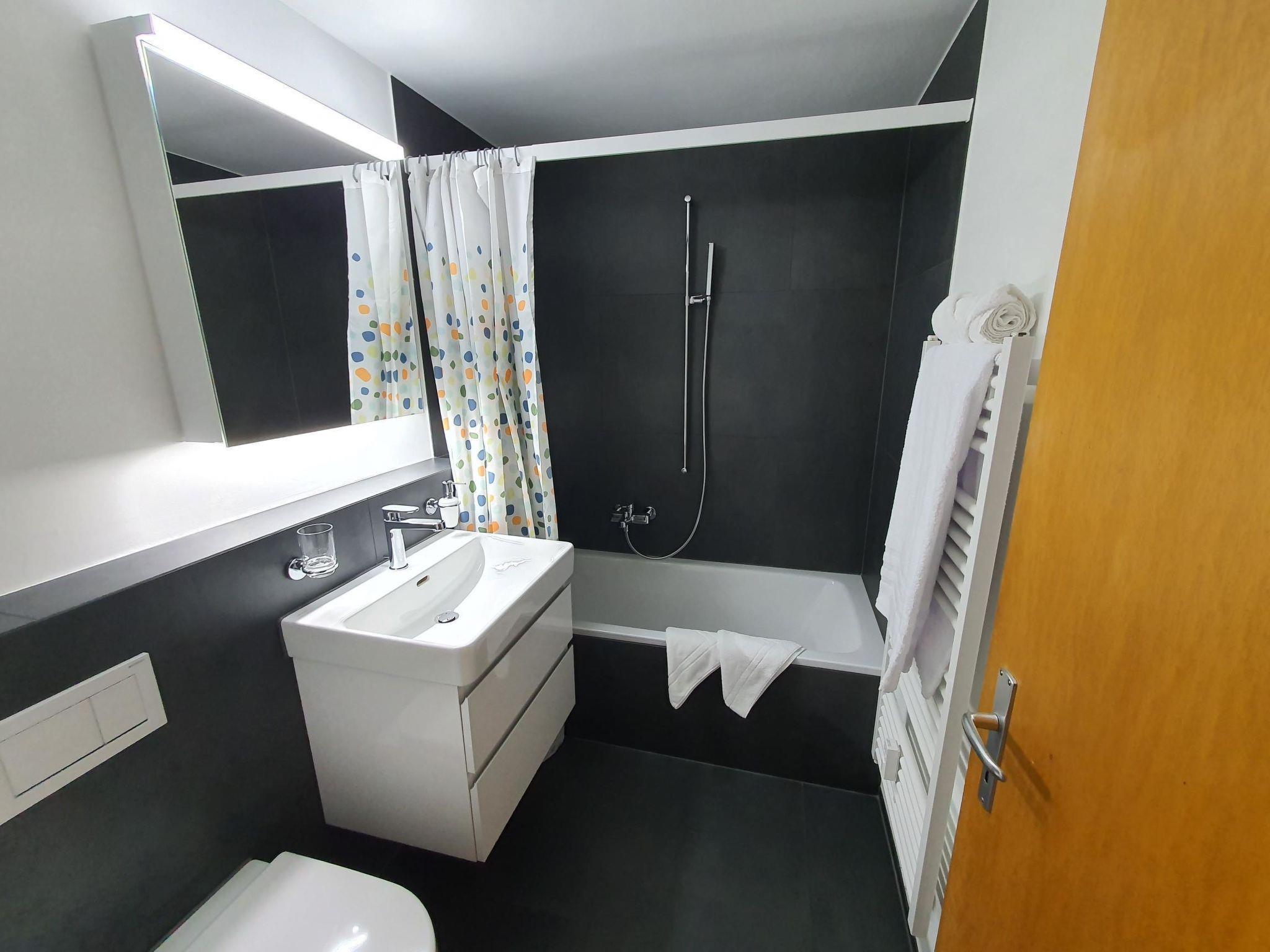 1 1/2-Zimmerwohnung, ca. 50 m2 (2 Räume durch einen Wandschrank getrennt), im 2. Stock eines Mehrfamilienhauses, für bis zu 4 Personen, bestehend aus: Wohn-/Schlafzimmer mit integrierter Küche, durch Schrank abgetrennter Schlafraum , Bad/WC, Ostbalkon, Parkplatz. Nichtraucherwohnung, Haustiere nicht erlaubt.