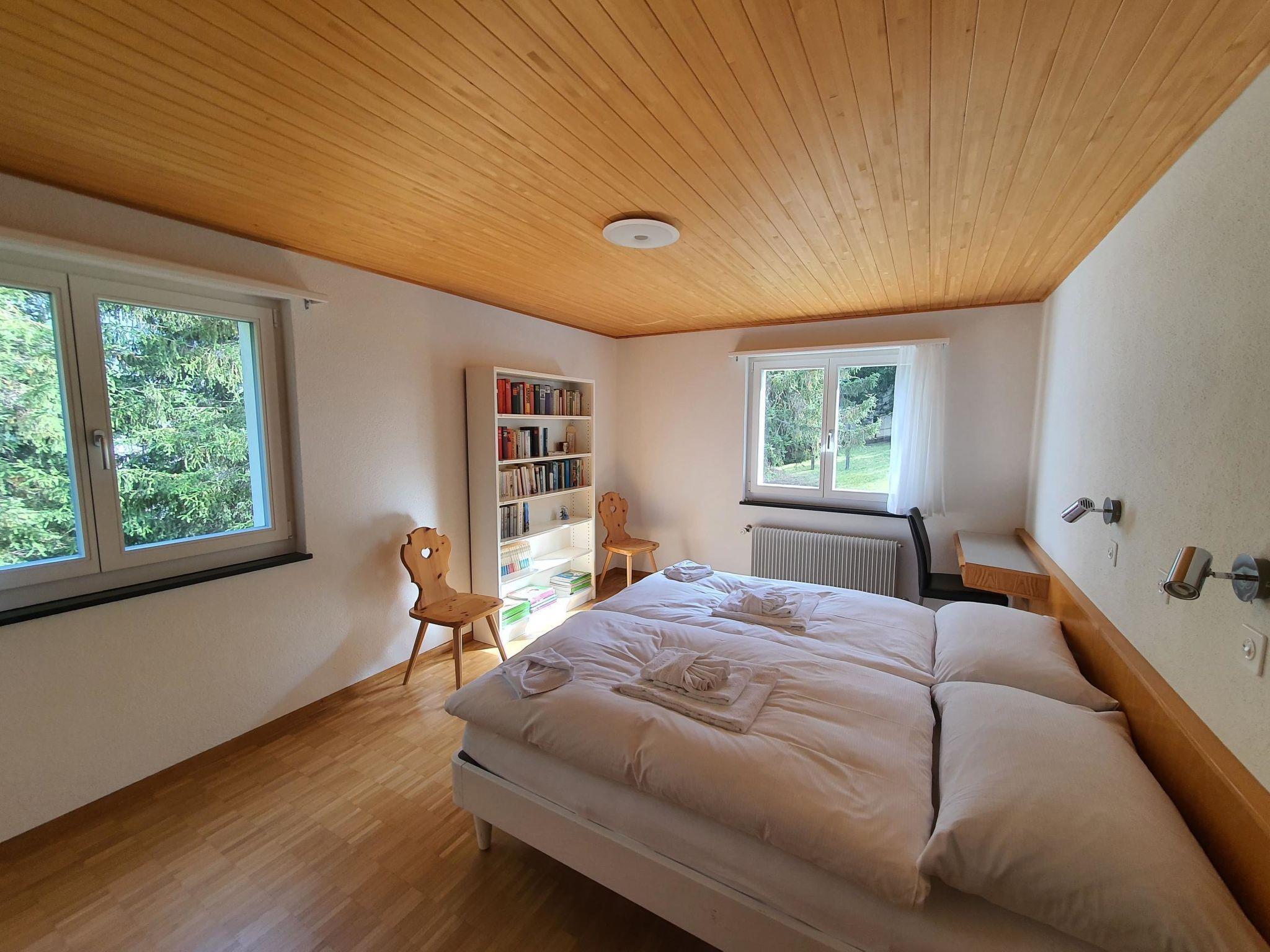 Das Einfamilienhaus besteht aus Wohnraum mit Essbereich und gemütlichem Gartensitzplatz und grosszügigem Garten, separater Küche, 4 Schlafzimmern, Bad mit Duschwanne, Badezimmer mit Badewanne, 3 WC, separater Waschraum und Garage. Raumverteilung: - Im unteren Geschoss befindet sich ein Schlafzimmer mit Doppelbett, Bad mit Duschwanne, separates WC und der Waschraum mit Waschmaschine und Tumbler - Im oberen Geschoss befindet sich der Wohnraum mit Essbereich und Gartensitzplatz, separate Küche, Schlafzimmer mit Doppelbett, Schlafzimmer mit 2 Betten, Schlafzimmer mit 1 Bett, Bad mit Badewanne und WC, separates WC mit Waschtisch. Die Küche verfügt über alles, das man in einem gemütlichen Urlaub braucht (Nespressomaschine, Wasserkocher, Geschirrspüler, Backofen, Kühlschrank mit Gefrierfach, Raclette-Ofen, Fondue-Caquelon etc.)