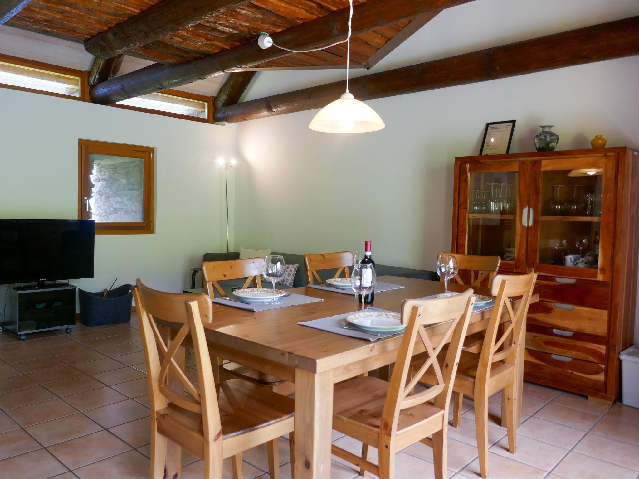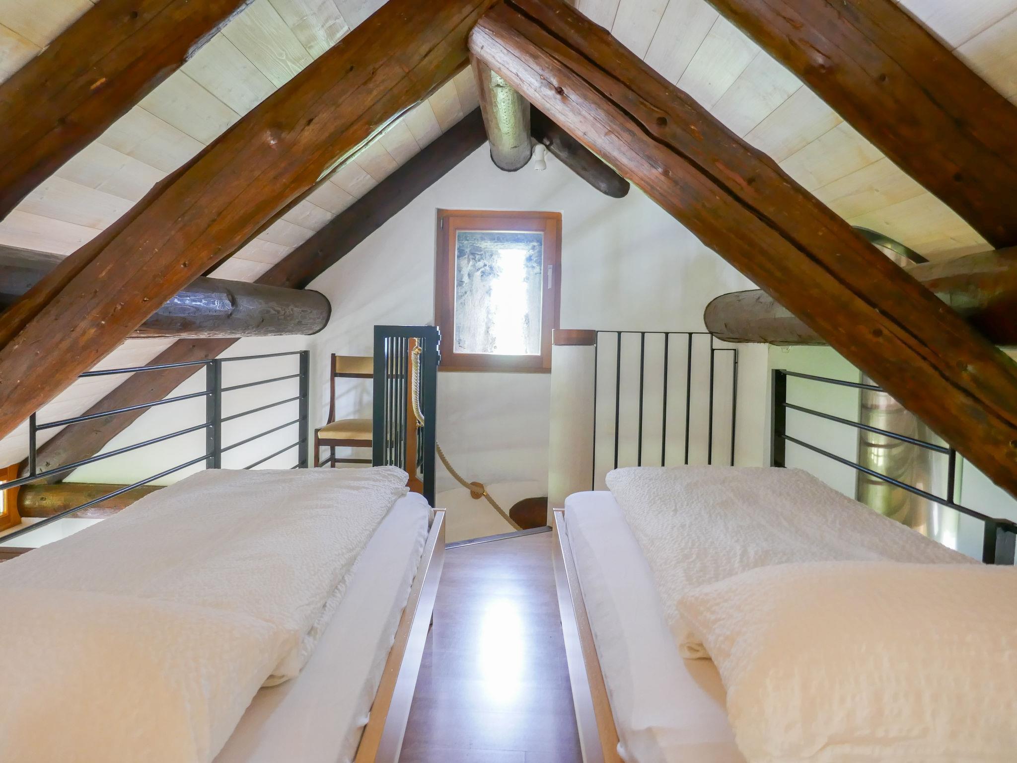 "Rustico Tecc du Martin", 3-Zimmer-Haus 70 m2. Geräumig, zweckmässig und gemütlich eingerichtet: offenes Wohn-/Esszimmer mit Panoramafenster mit offenem Kamin, Esstisch und Sat-TV. Ausgang zum Garten. Offene Küche (Backofen, Geschirrspüler, 4 Induktionskochplatten, Wasserkocher, Tiefkühler, elektrische Kaffeemaschine, Fondue Set (Käse)). Sep. WC. E-Heizung. Unteres Geschoss: 1 Zimmer mit 1 Doppelbett (1 x 180 cm, Länge 200 cm). Ausgang zum Garten. (Wendeltreppe) 1 Zimmer mit 1 Doppelbett (1 x 180 cm, Länge 200 cm). Ausgang zum Garten. Dusche/WC. Obergeschoss: (Wendeltreppe) abgeschrägte, offene Galerie mit 2 Betten (90 cm, Länge 200 cm). Garten. Liegestühle (2), Sitzplatz. Panoramasicht auf die Berge und das Tal. Zur Verfügung: Bügeleisen, Kinderhochstuhl, Babybett bis 2 Jahre (extra), Haartrockner. Internet (WLAN, gratis). Bitte beachten: Nichtraucher-Haus. Maximal 2 Haustiere/Hunde erlaubt. Anstelle eines abgeschlossenen Schlafzimmers befinden sich manche Schlafplätze in einem offenen Bereich (Galerie, Nische etc.). NL-00004421