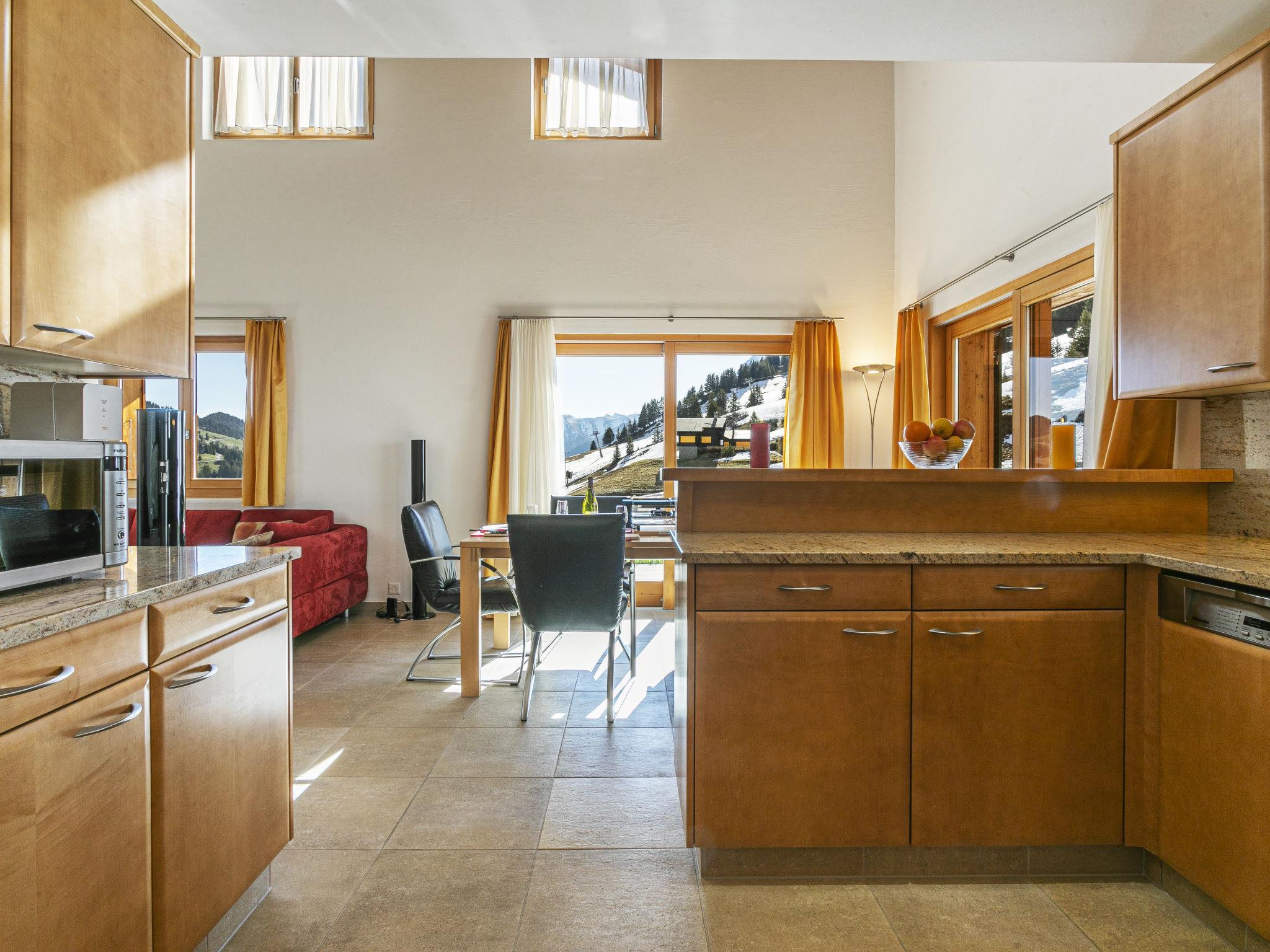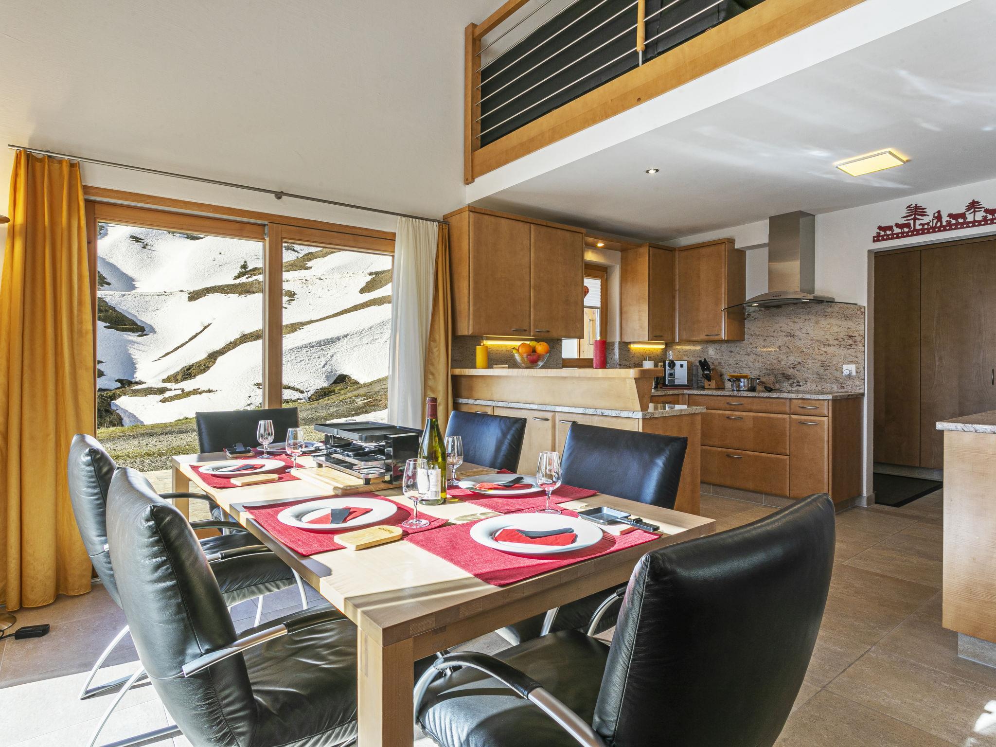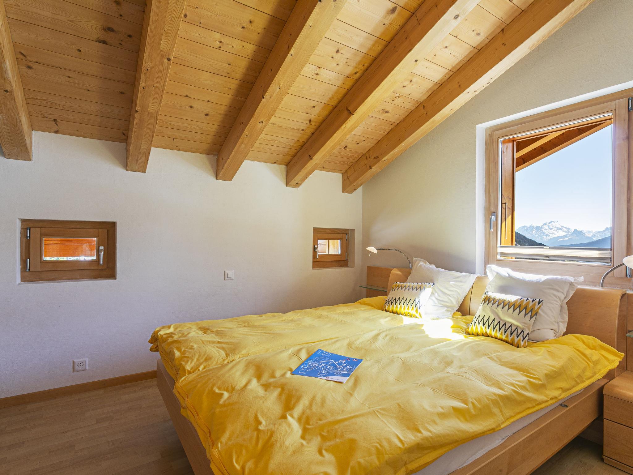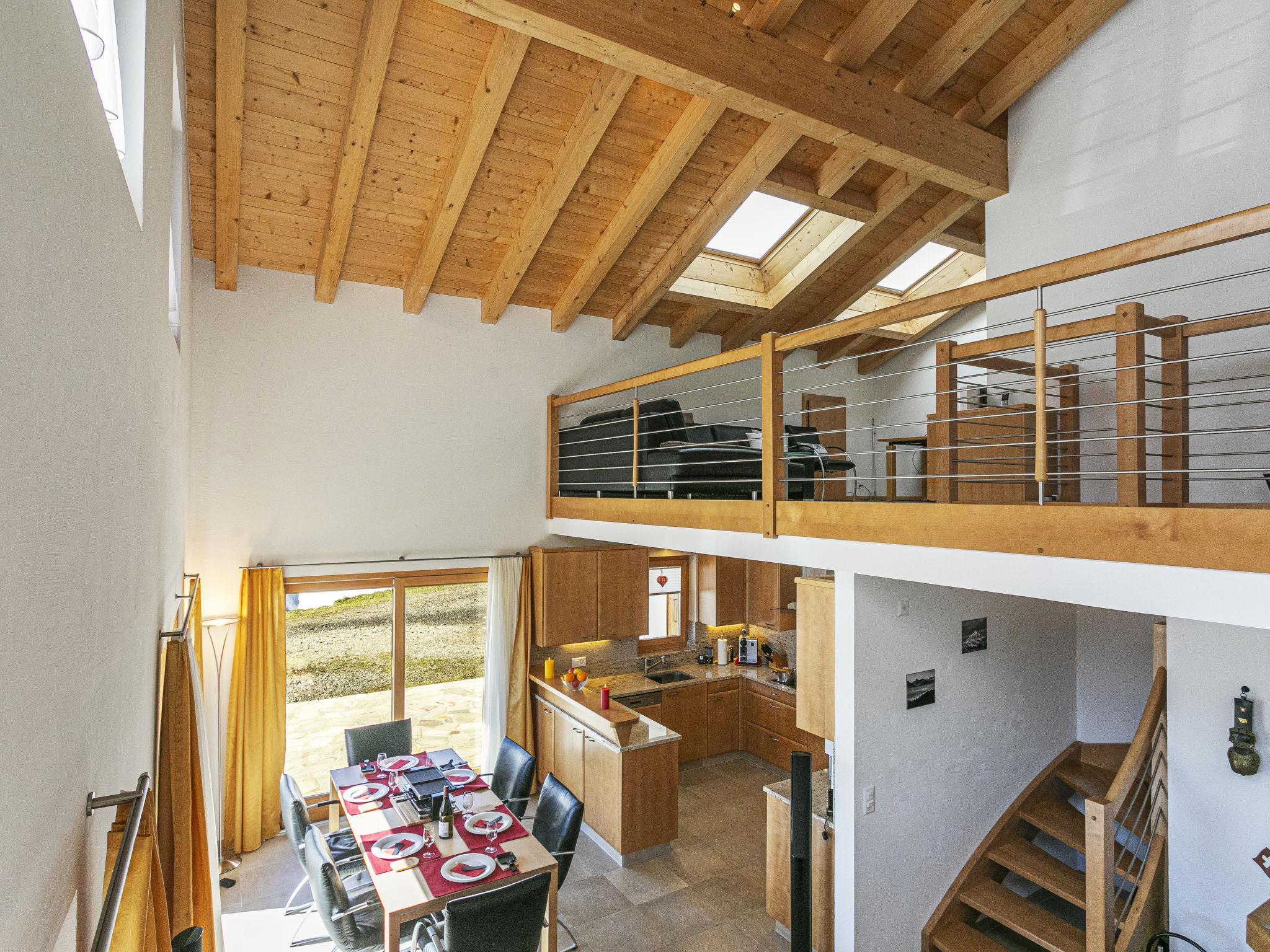 "Martens", 4-Zimmer-Chalet 150 m2 auf 2 Stockwerken, Südwestlage. Luxuriös und geschmackvoll eingerichtet: Wohn-/Esszimmer mit Panoramafenster mit offenem Kamin und TV. Ausgang zur Terrasse. 1 Zimmer mit 1 Doppelbett (160 cm, Länge 200 cm), Bad/WC. Ausgang zur Terrasse. Offene Küche (Backofen, Geschirrspüler, 4 Glaskeramikplatten, Toaster, Wasserkocher, Mikrowelle, elektrische Kaffeemaschine, Kapseln für die Kaffeemaschine (Nespresso) extra, Racletteofen, Fondue Set (Chinoise, Käse)). Sep. WC. Obergeschoss: 1 Zimmer mit 1 Doppelbett (160 cm, Länge 200 cm). 1 Zimmer mit 1 Doppelbett (160 cm, Länge 200 cm). Galerie. Dusche/WC. Sehr schöne Sicht auf die Berge, die Skipiste, die Landschaft und die Ortschaft. Zur Verfügung: Internet (Wireless LAN). Bitte beachten: Nichtraucher-Unterkunft. Im Winter ist die Zufahrtstrasse zum Chalet wegen Schnee geschlossen. Multipass ist im Sommer inkludiert.