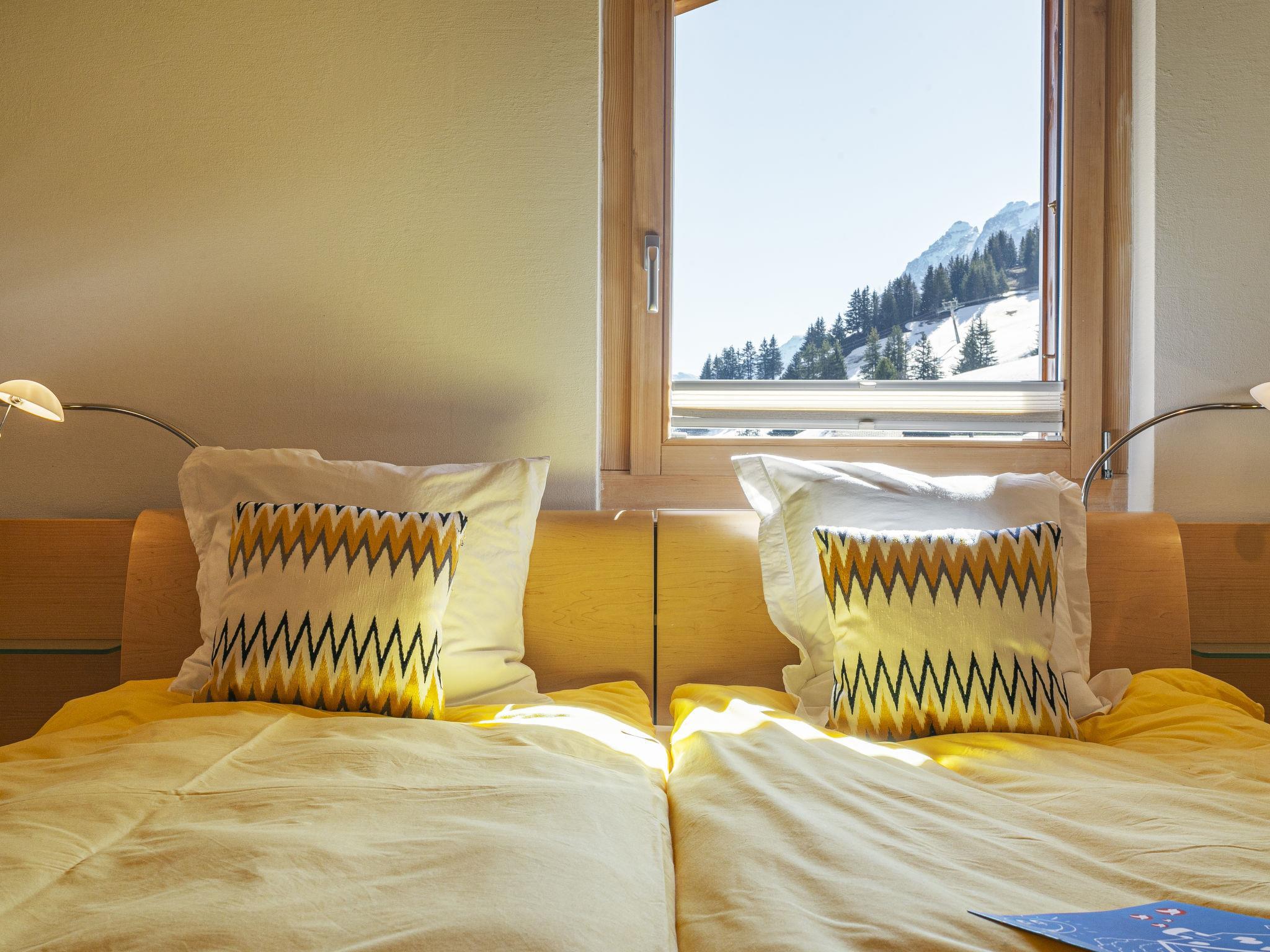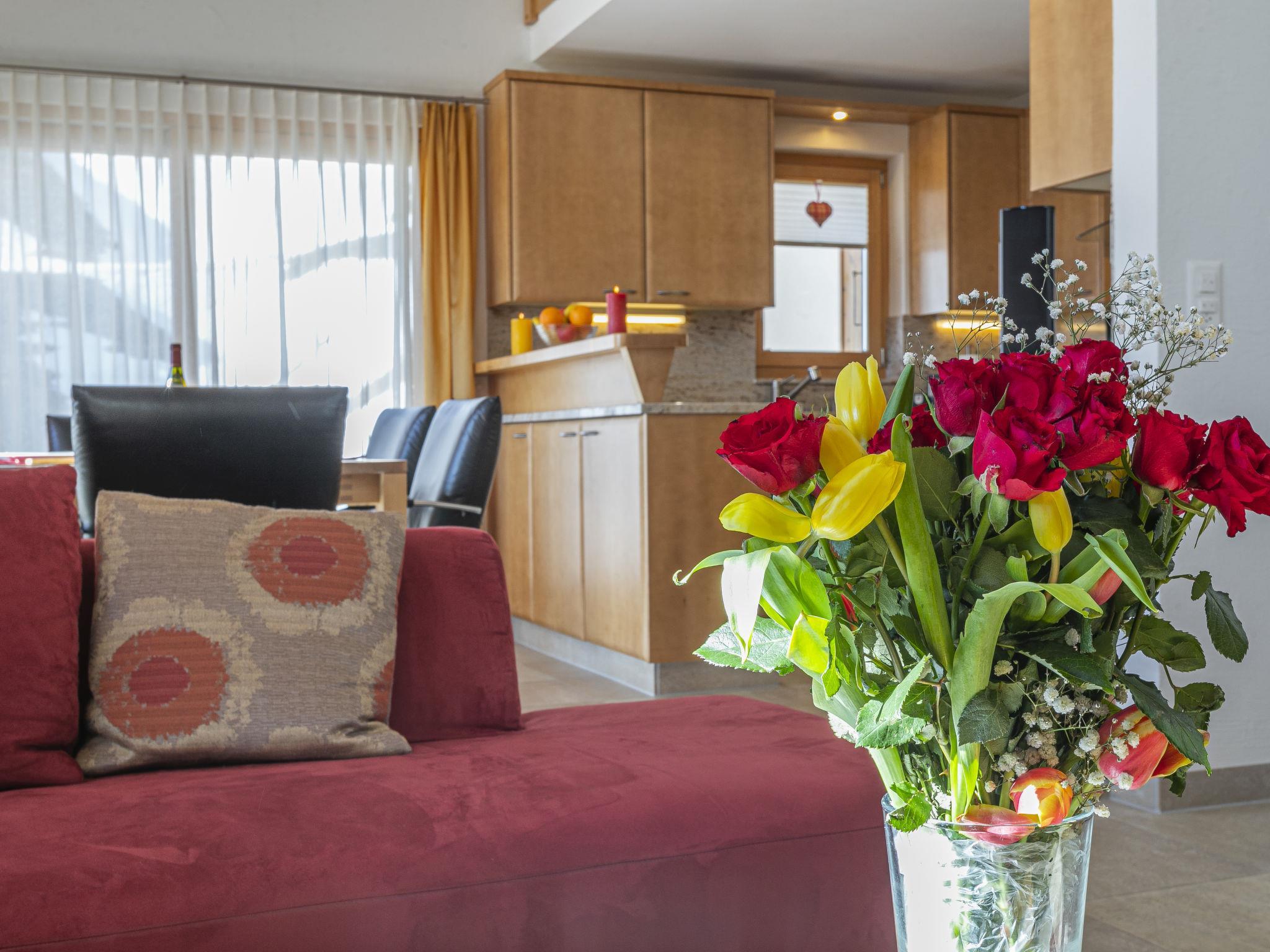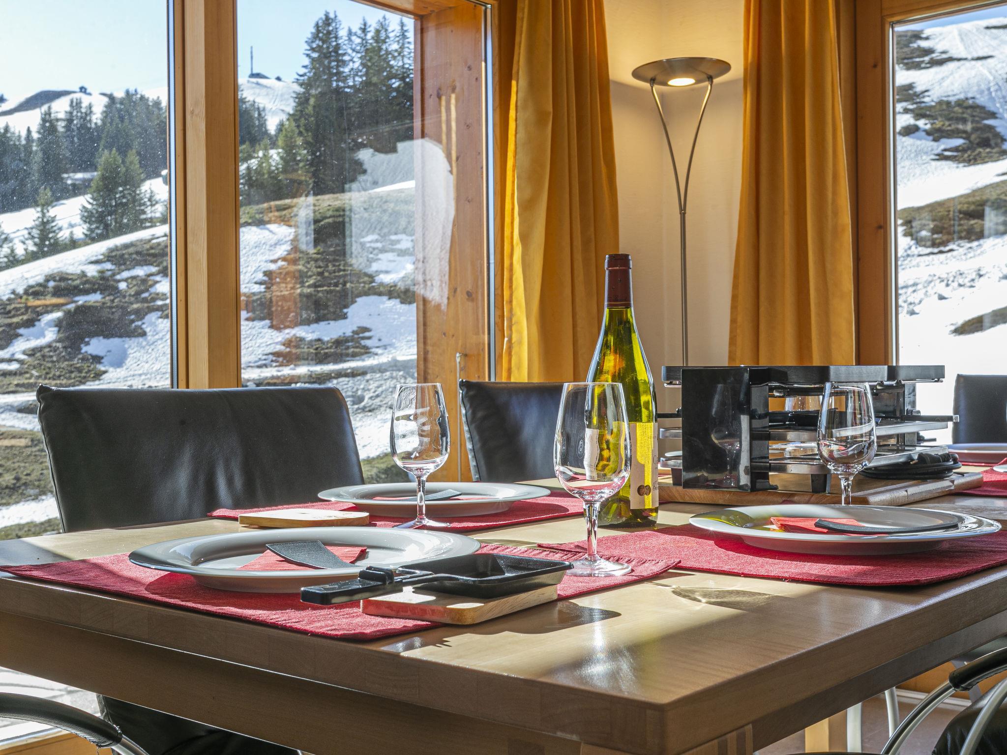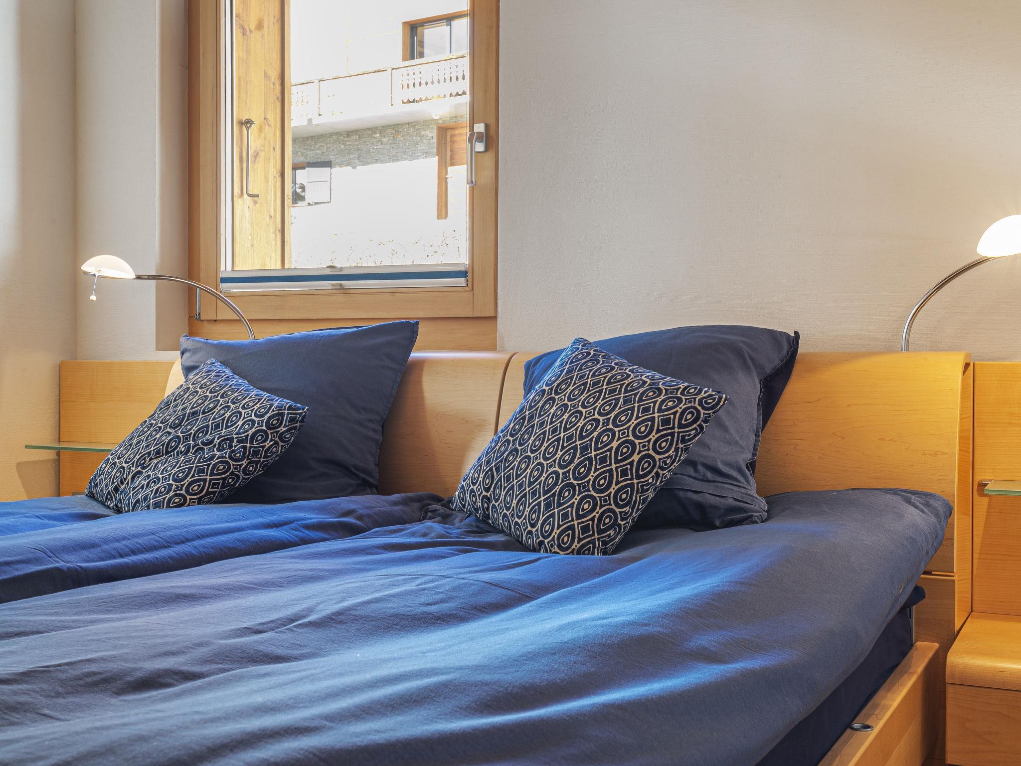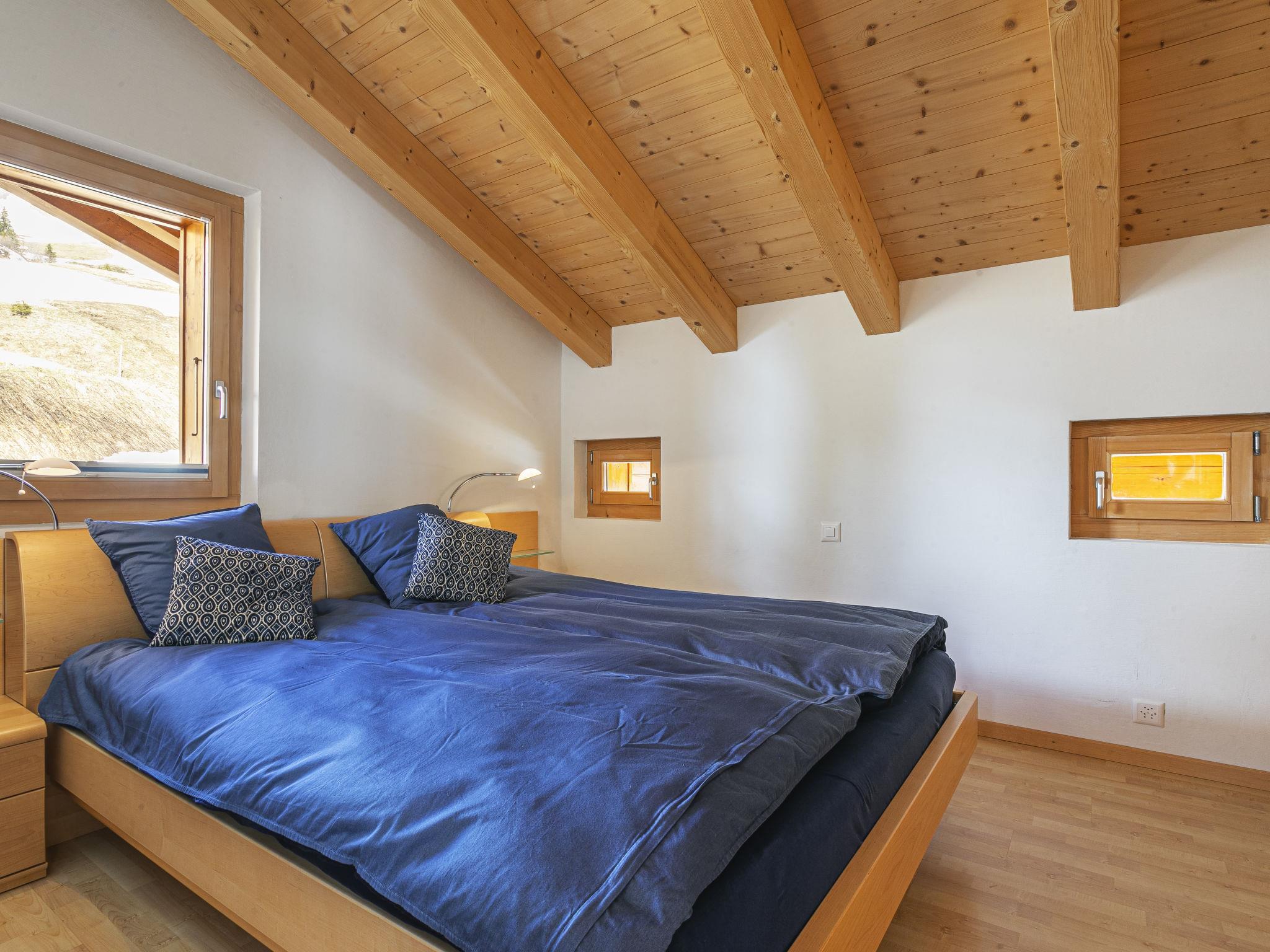"Martens", 4-Zimmer-Chalet 150 m2 auf 2 Stockwerken, Südwestlage. Luxuriös und geschmackvoll eingerichtet: Wohn-/Esszimmer mit Panoramafenster mit offenem Kamin und TV. Ausgang zur Terrasse. 1 Zimmer mit 1 Doppelbett (160 cm, Länge 200 cm), Bad/WC. Ausgang zur Terrasse. Offene Küche (Backofen, Geschirrspüler, 4 Glaskeramikplatten, Toaster, Wasserkocher, Mikrowelle, elektrische Kaffeemaschine, Kapseln für die Kaffeemaschine (Nespresso) extra, Racletteofen, Fondue Set (Chinoise, Käse)). Sep. WC. Obergeschoss: 1 Zimmer mit 1 Doppelbett (160 cm, Länge 200 cm). 1 Zimmer mit 1 Doppelbett (160 cm, Länge 200 cm). Galerie. Dusche/WC. Sehr schöne Sicht auf die Berge, die Skipiste, die Landschaft und die Ortschaft. Zur Verfügung: Internet (Wireless LAN). Bitte beachten: Nichtraucher-Unterkunft. Im Winter ist die Zufahrtstrasse zum Chalet wegen Schnee geschlossen. Multipass ist im Sommer inkludiert.