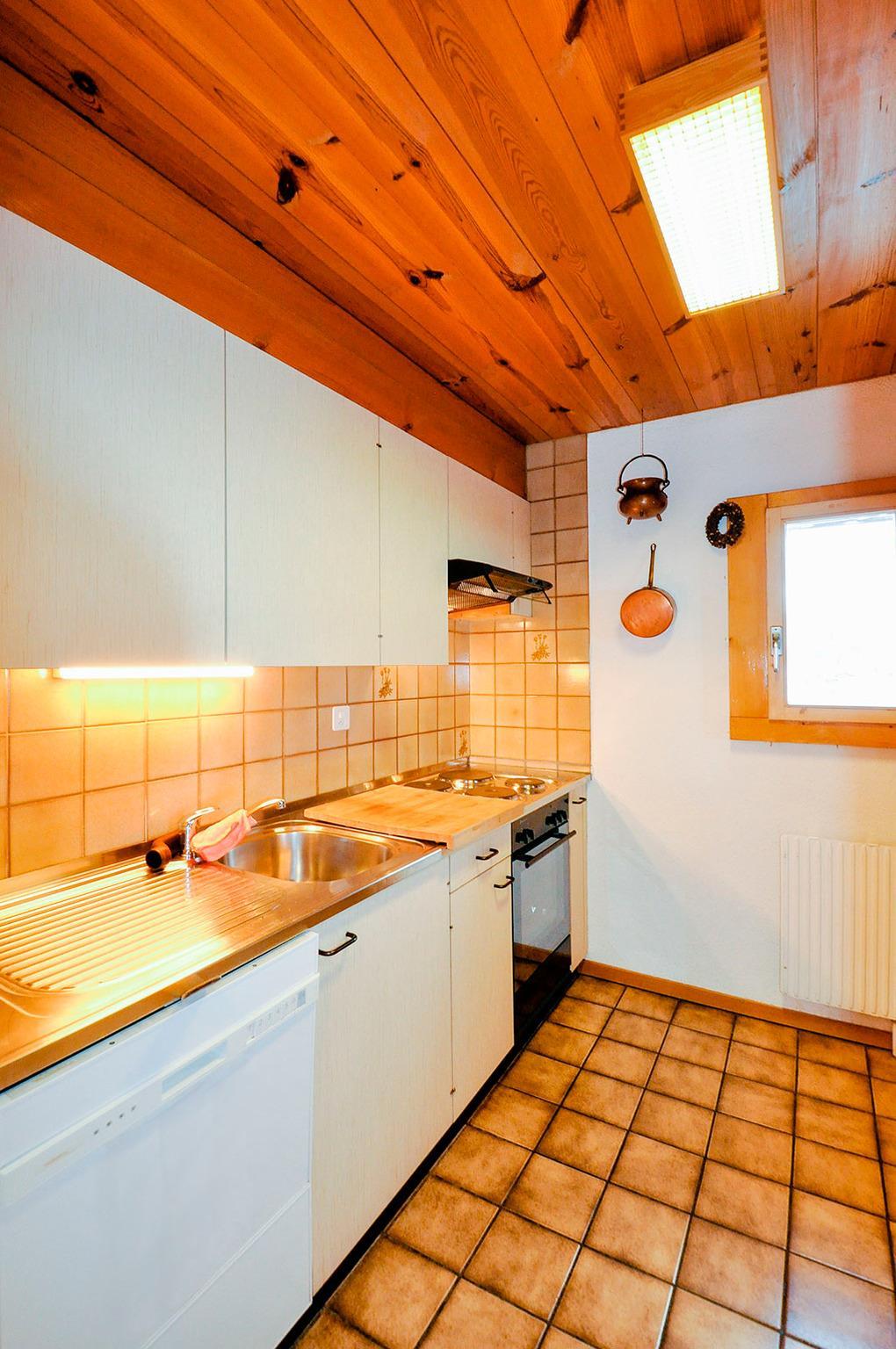 CH 431.65 Wohnungen 6-8 Pers.: 4-Zimmerwohnung, 113 qm Wohnfläche über 2 Etagen. 3. Etage: Großer, bis zum Dachgiebel ausgebauter Wohnraum mit Sitzgruppe, TV, Radio/CD, Esstisch, Küchenzeile (Backofen, Mikrowelle, Spülmaschine). Doppelzimmer. Bad: Bw/Du, Wb, WC. Vom Wohnraum Treppe ins Dachgeschoss (Schrägen): Schlafraum mit 2 Einzelbetten auf Galerie, offen zum Wohnraum. Doppelzimmer. 2-Bettzimmer. Bad: Du, Wb, WC. Süd-Balkon.