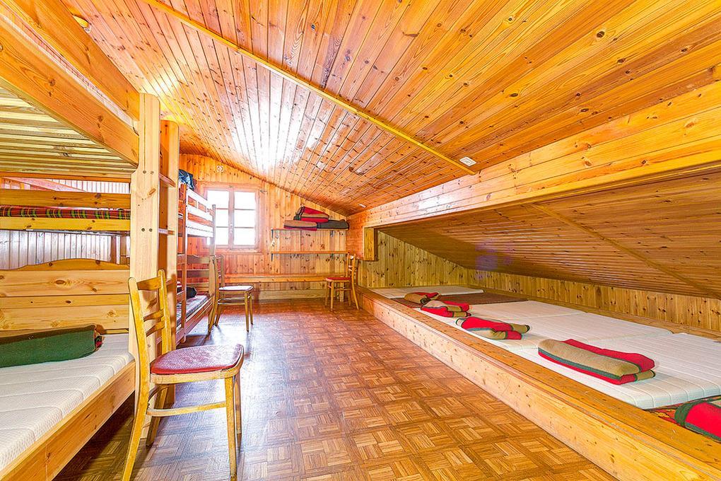 2. Etage: Zwei urige 11-Bettzimmer mit Matratzenlager unter Dachschrägen. 2 separate WC, Wb.