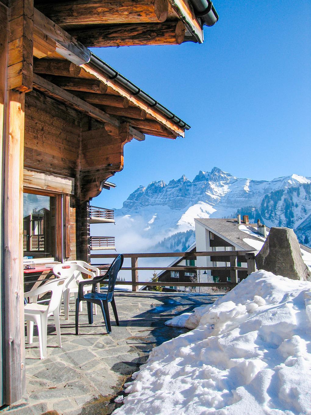 Ort: Les Crosets. Top Lage in der Nähe der Talabfahrt. Skiabfahrt vom und bis zum Haus. Ruhige Hanglage in einer Chaletsiedlung mit Blick auf die Berggruppe "Dents du Midi". Einkaufen, Sessellifte 250 m. Sportzentrum Champéry mit Eislaufhalle, Hallenbad, Kletterwand 8,6 km.