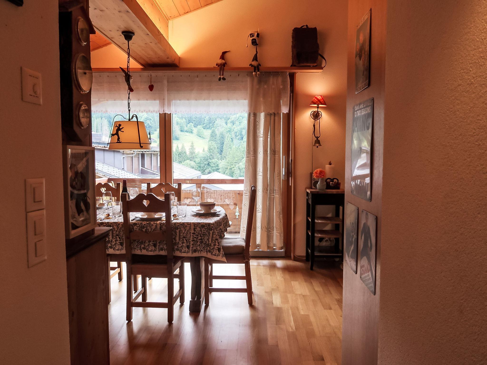 "Mon Abri B", 4-Zimmer-Wohnung im 3. Stock, Südwestlage. Komfortabel und geschmackvoll eingerichtet: Wohn-/Esszimmer mit Kabel-TV und Flachbildschirm. Ausgang zum Balkon, Richtung Südwesten. 1 Zimmer mit 1 Doppelbett (160 cm, Länge 200 cm). 1 Zimmer mit 2 Betten (90 cm, Länge 190 cm). 1 Zimmer mit 1 Bett (90 cm, Länge 190 cm), 1 Diwanbett (150 cm, Länge 190 cm). Offene Küche (4 Glaskeramikplatten, Toaster, Wasserkocher, elektrische Kaffeemaschine, Kapseln für die Kaffeemaschine (Nespresso) extra, Racletteofen, Fondue Set (Chinoise, Käse)). Bad/WC, Dusche/WC. Balkon, Südwestlage. Balkonmöbel. Schöne Sicht auf die Berge und die Landschaft. Zur Verfügung: Waschmaschine, Haartrockner. Internet (WLAN, gratis). Garage. Bitte beachten: Nichtraucher-Unterkunft.