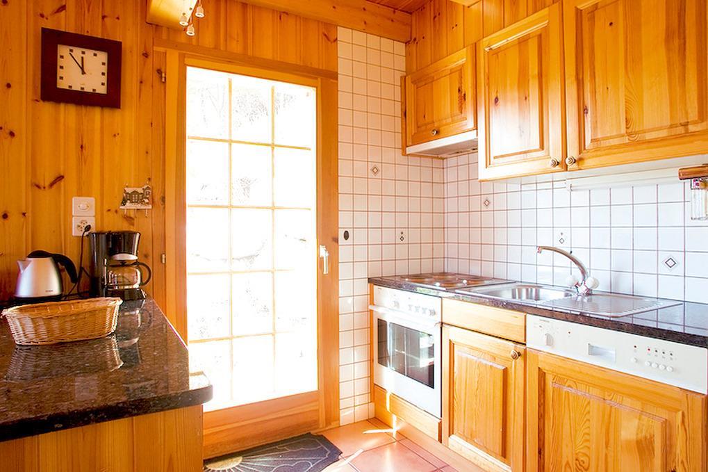 Haus: Sehr schönes, gepflegtes Chalet mit Sauna. Modernes 4-Zimmer-Haus mit 90 qm Wohnfläche über 2 Etagen. Gediegene Einrichtung, Wohnräume holzvertäfelt und mit schöner Holzbalkendecke. Ölzentralheizung. Balkon, schöne Süd-Terrasse (Gartenmöbel).