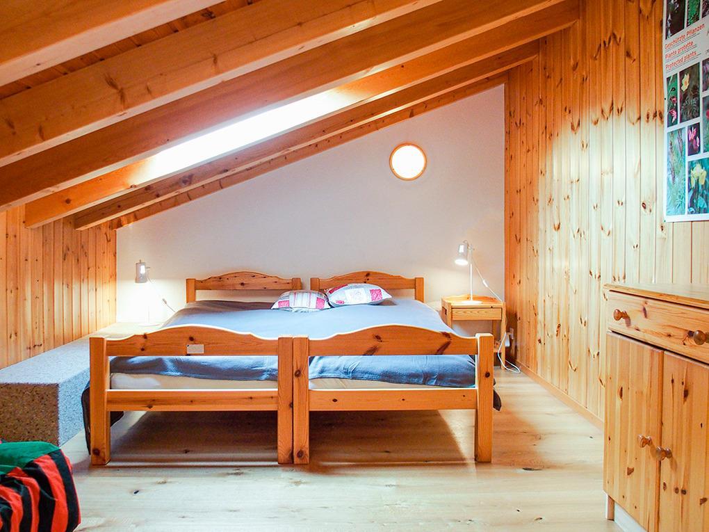 CH 388.82 Wohnung 4-8 Pers.: 4-Zimmerwohnung mit 90 qm Wohnfläche über 2 Etagen. 2. Etage: Schöner, großer Wohnraum mit Kaminofen, TV, Sitzgruppe, Esstisch, Küchenzeile (Backofen, Mikrowelle, Spülmaschine). Balkon. Doppelzimmer. Zwei 2-Bettzimmer mit Etagenbett. Bad: Bw, Du, Wb, WC. Vom Wohnraum aus Treppe ins Dachgeschoss mit Schrägen: große Galerie mit 2 Einzelbetten.