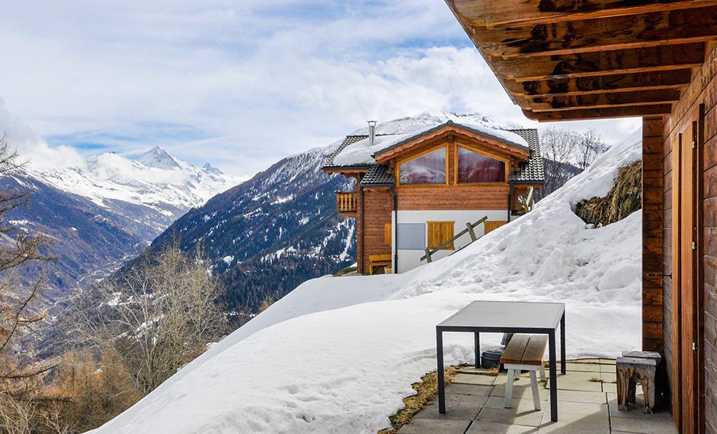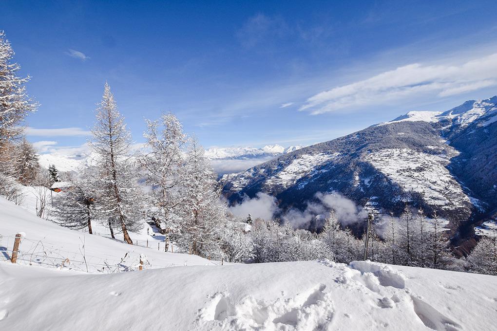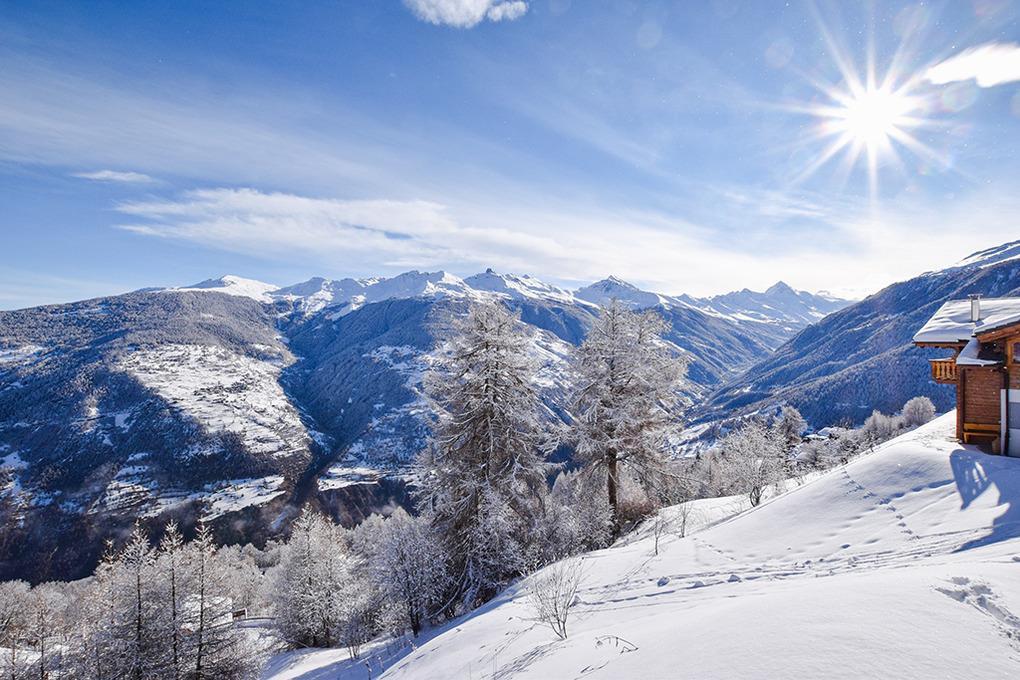 Ort: Les Masses. Ruhige Hanglage in einer Chaletsiedlung am Ortsrand. Ruhige Hanglage mit schönem Berg-Panoramablick auf Dent Blanche (4357 m) und Matterhorn (4478 m). Les Collons mit Geschäften 2,5 km. Beschneite Talabfahrt, Sessellift ca. 800 m. Skibus 100 m. Zufahrt zum Chalet mit Winterausrüstung bis auf 30 m, danach Treppe abwärts zum Chalet. 1 Pkw-Stellplatz vorhanden.