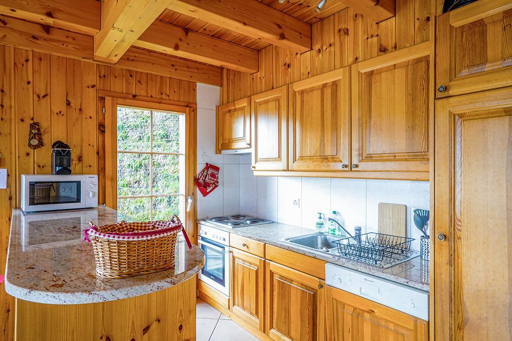 Haus: Sehr schönes, gepflegtes Chalet mit Kamin und Sauna. Modernes 5-Zimmer-Haus mit 120 qm Wohnfläche über 2 Etagen. Zentrum des Hauses ist der holzvertäfelte Wohnraum mit schöner Essecke im lichtdurchfluteten Erker und herrlichem Blick auf das umliegende Bergpanorama. Gediegene Einrichtung, Wohnraum mit schöner Holzbalkendecke. Internetzugang über W-Lan. Zentral-/Fußbodenheizung. Balkon, Süd-Terrasse.