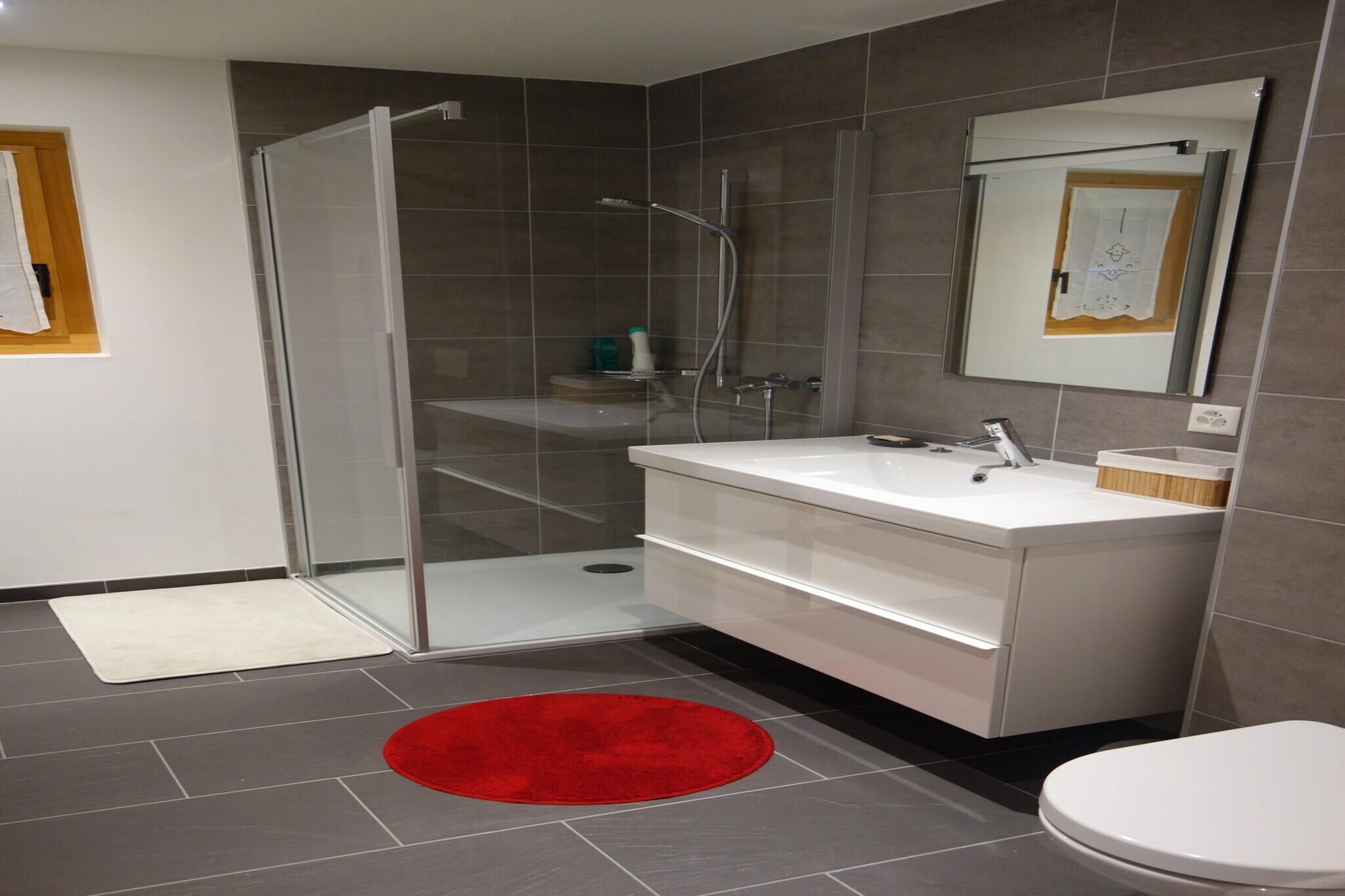 Parterre: (Wohnzimmer(TV(Kabel, Satellit), Esstisch, Kaminofen, Sitzecke, Radio), offene Küche(Kochplatte(Ceranfeld), Wasserkocher, Toaster, Kaffeemaschine(Filter), Backofen, Mikrowelle, Spülmaschine, Kühlschrank, Tiefkühlschrank, Zitruspresse, (), ()), Schlafzimmer(Doppelbett(180 x 200 cm)), Schlafzimmer(Doppelbett(180 x 200 cm)), Schlafzimmer(Einzelbett(90 x 200 cm), Etagenbett(90 x 200 cm)), Schlafzimmer(Etagenbett(90 x 200 cm), Etagenbett(90 x 200 cm)), Badezimmer(Badewanne, Waschbecken, Toilette, Föhn, ), Badezimmer(Dusche, Waschbecken, Toilette), Badezimmer(Dusche, Waschbecken, Toilette), Internet, Balkon) Skikeller, Skikeller, Garage, Waschmaschine, Heizung(Zentral), Terrasse(20 m2), Garten, Gartenmöbel, Parkplatz, parken (kostenpflichtig)