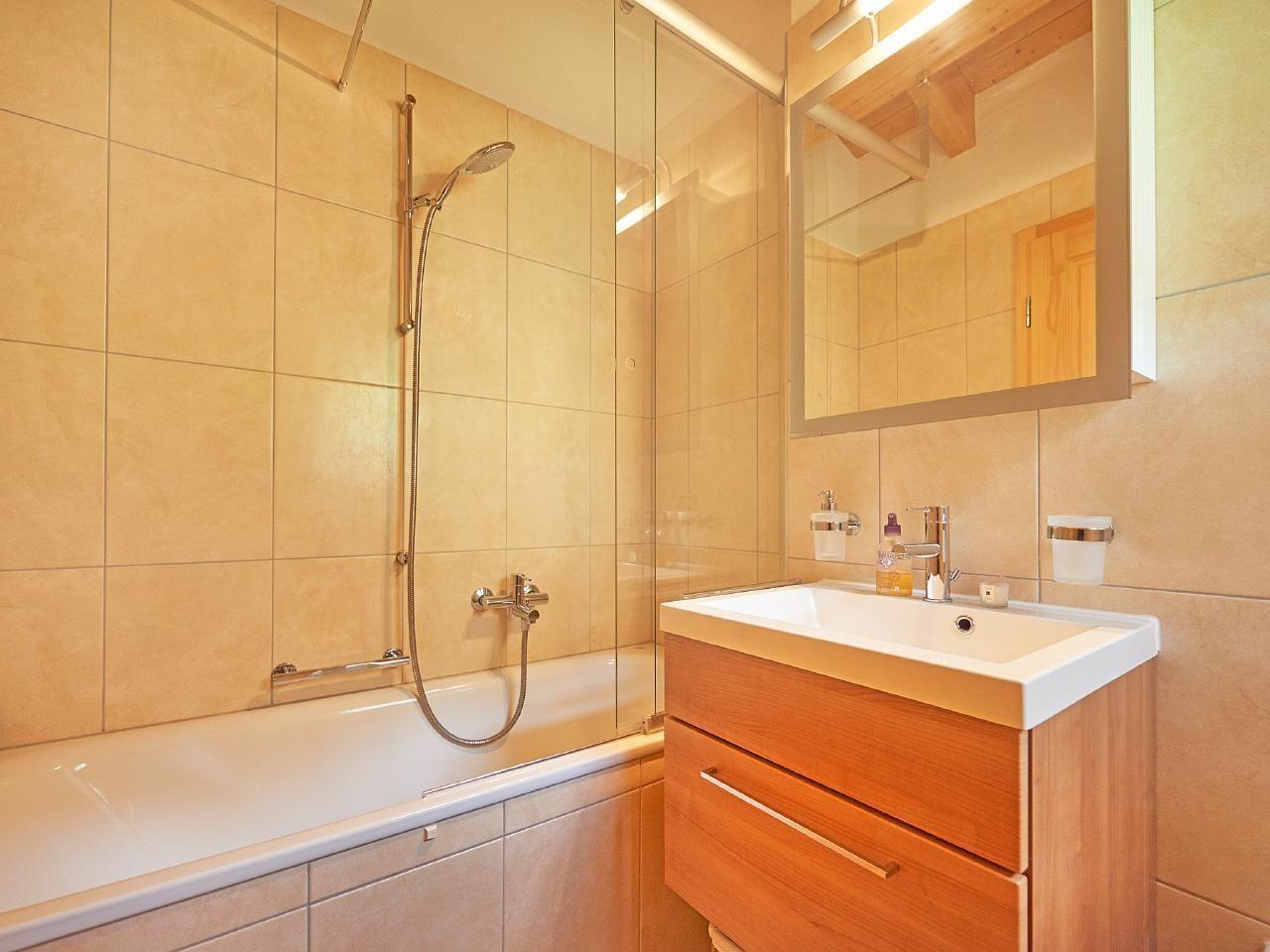 Nach einem ereignisreichen Ski- oder Wandertag können Sie sich in der Sauna im Erdgeschoss erholen und ihre Muskeln entspannen. Dusche und separates WC. Auf derselben Etage befindet sich zudem ein Abstellraum mit Skischuhtrockner, Waschmaschine/-trockner und zusätzlichem Kühlschrank.