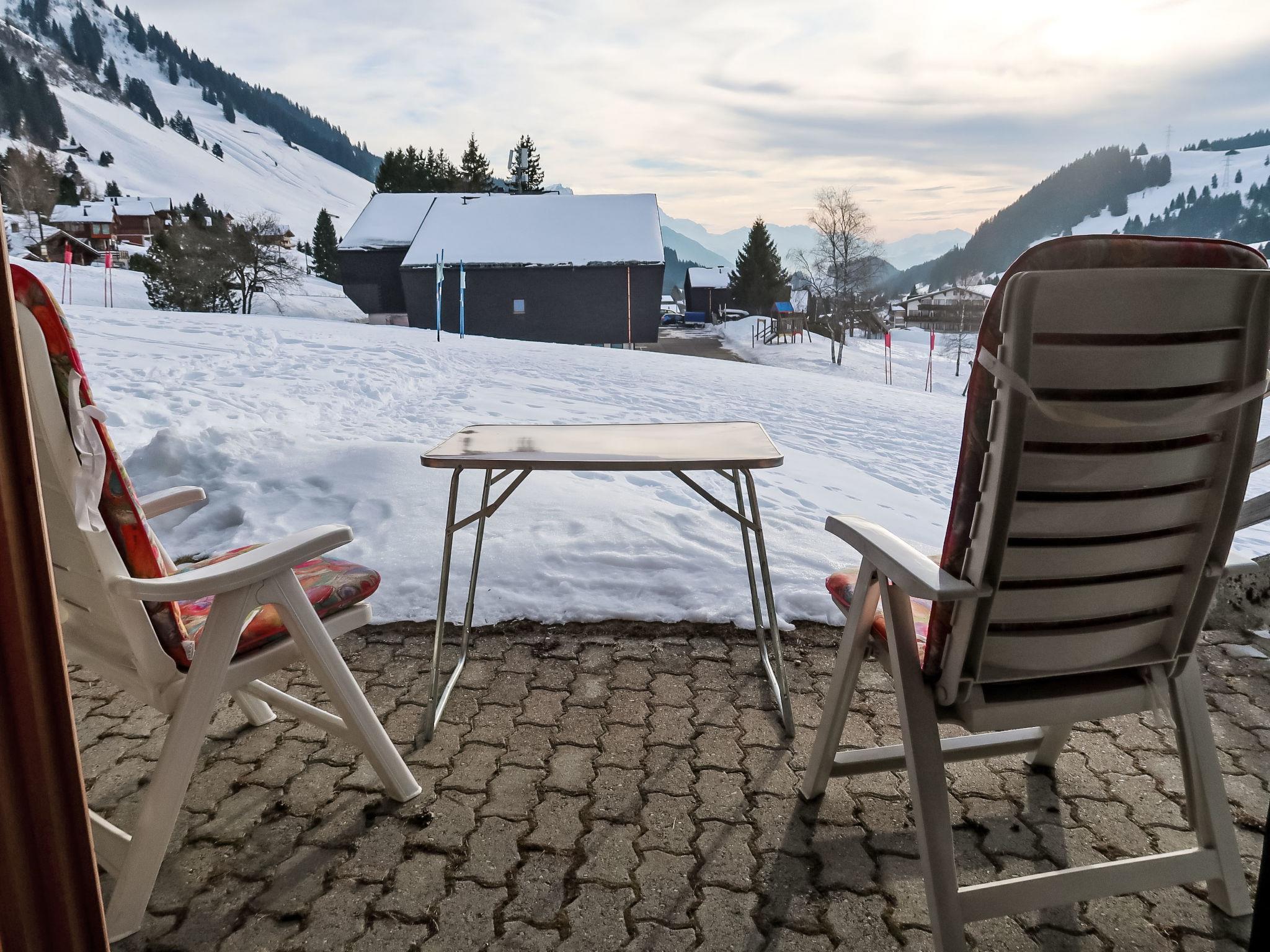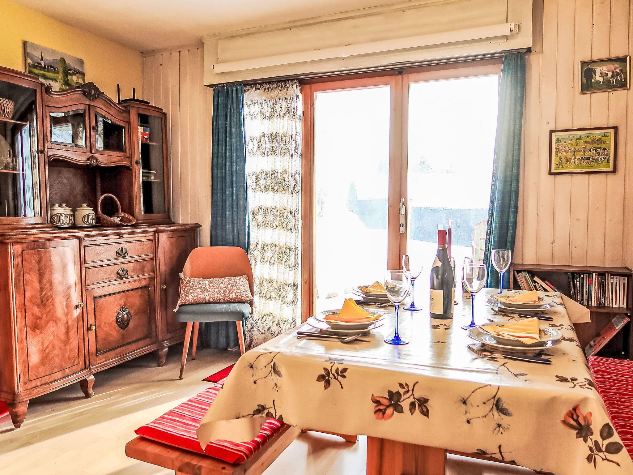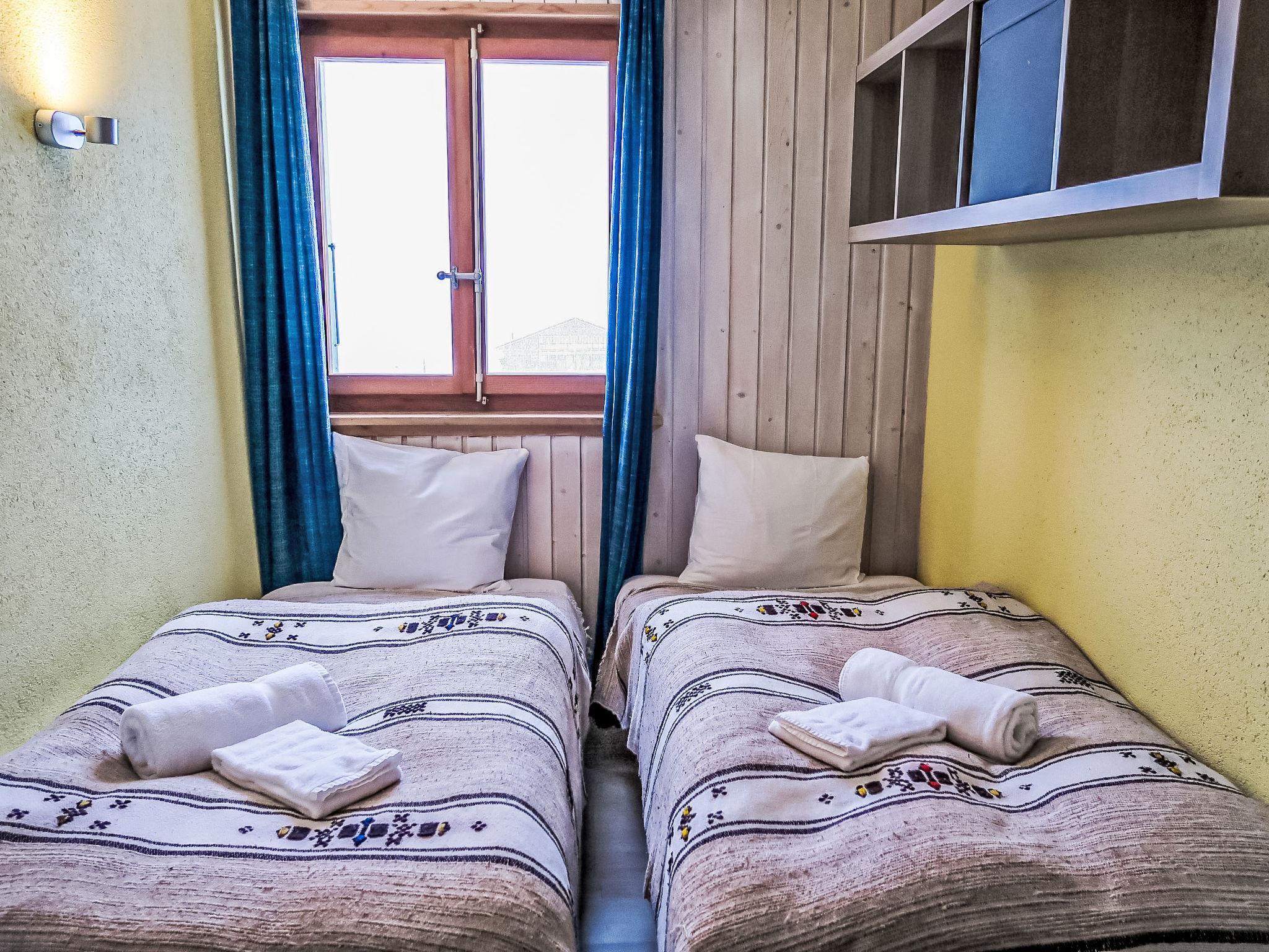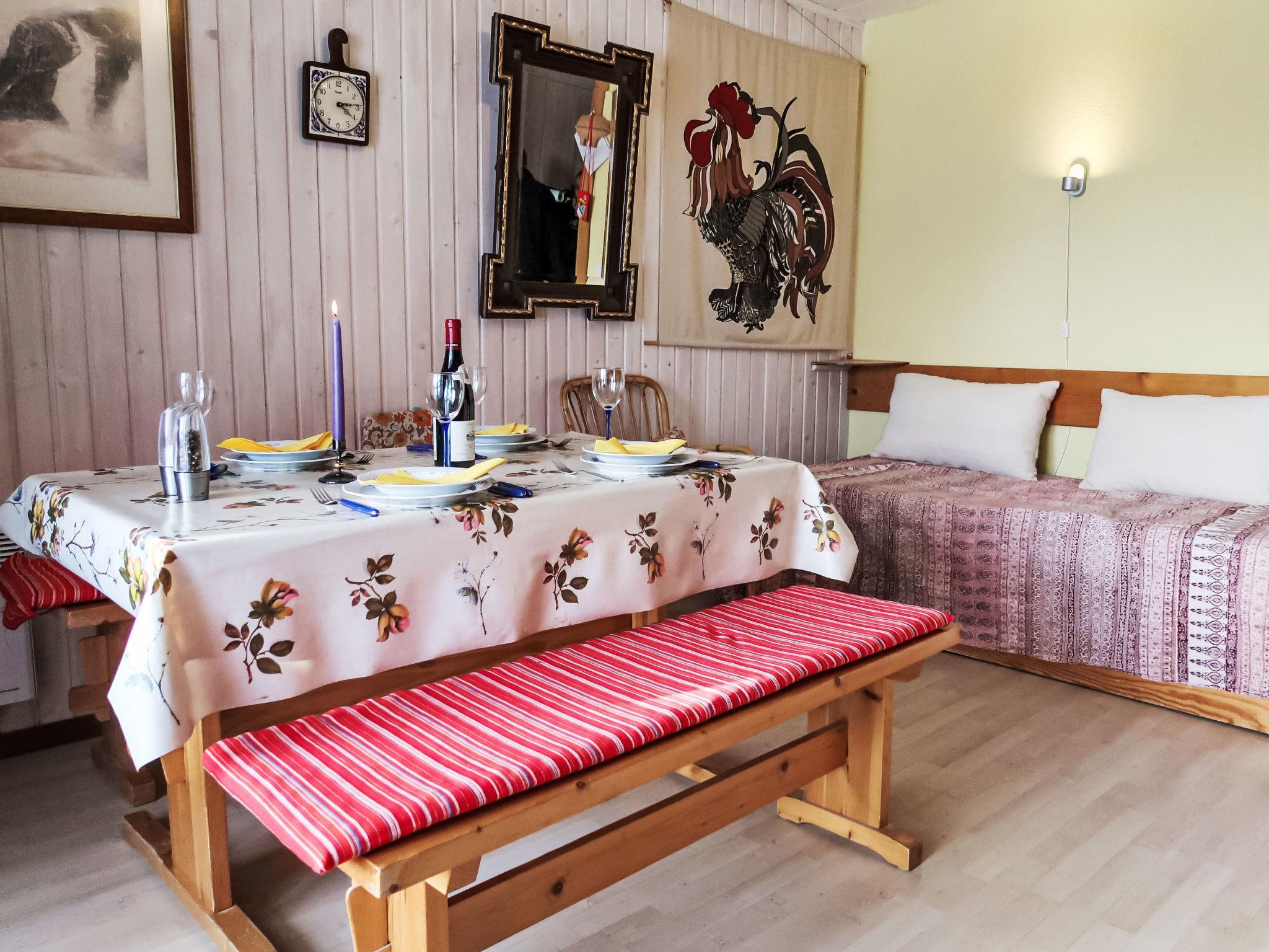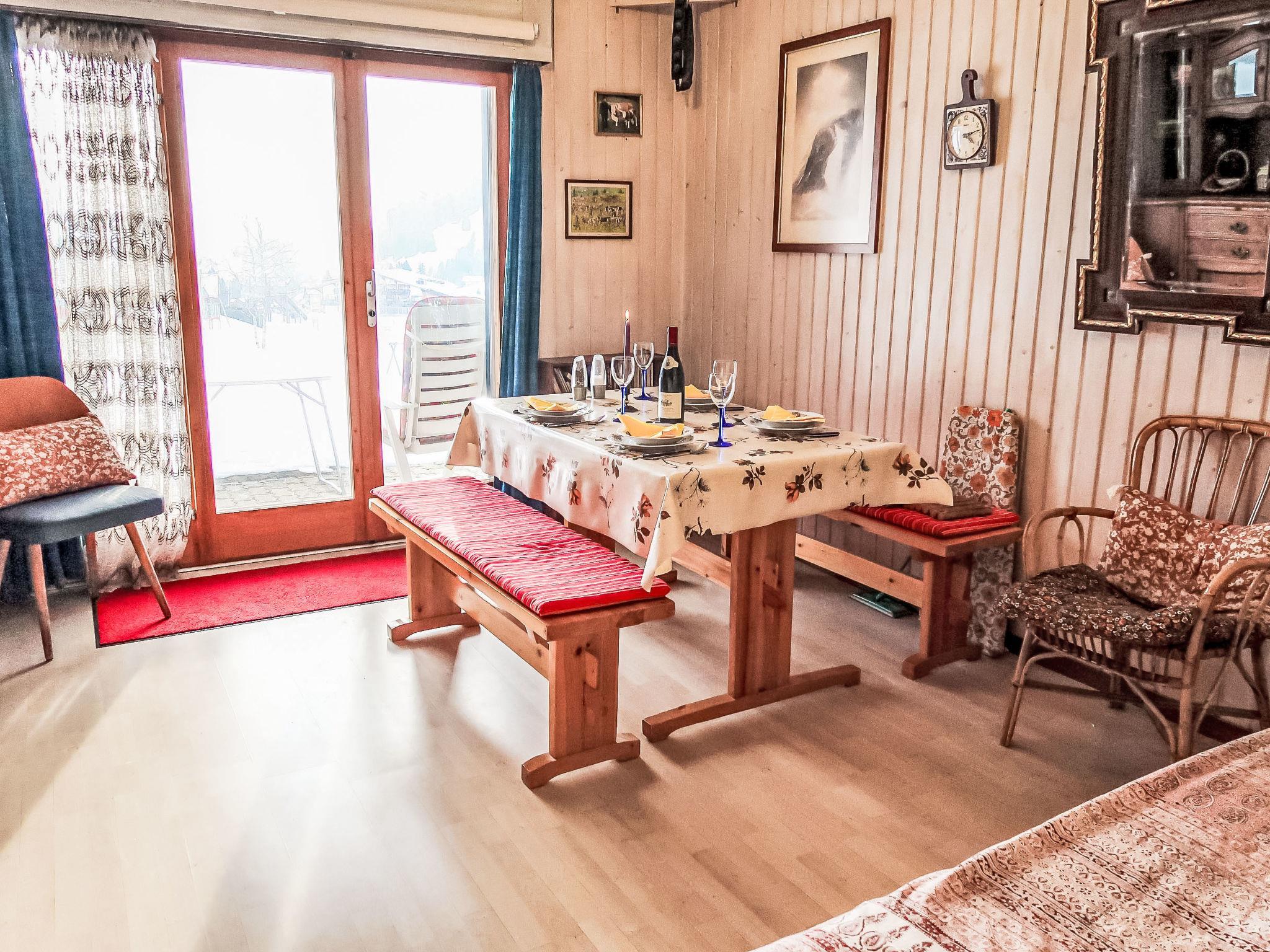 "Les Bluets", 1-Zimmer-Wohnung 30 m2. Objekt geeignet für 2 Erwachsene + 2 Kinder. Teilweise renoviert im Jahre 2025, gemütlich eingerichtet: Wohnzimmer mit 1 Ausziehbett (2 Pers. 2 x 90 cm, Länge 190 cm). Ausgang zum Gartensitzplatz. 1 offenes kleines Zimmer mit Schiebetür mit 2 Betten (90 cm, Länge 190 cm). Offene Küche (Geschirrspüler, 4 Induktionskochplatten, Toaster, Wasserkocher, elektrische Kaffeemaschine, Kapseln für die Kaffeemaschine (Nespresso), Fondue Set (Käse)). Bad/WC. E-Heizung. Terrasse. Terrassenmöbel. Schöne Sicht auf die Berge, die Skipiste und die Landschaft. Zur Verfügung: Internet (Wireless LAN, gratis). Parkplatz beim Haus. Bitte beachten: Nichtraucher-Unterkunft.
