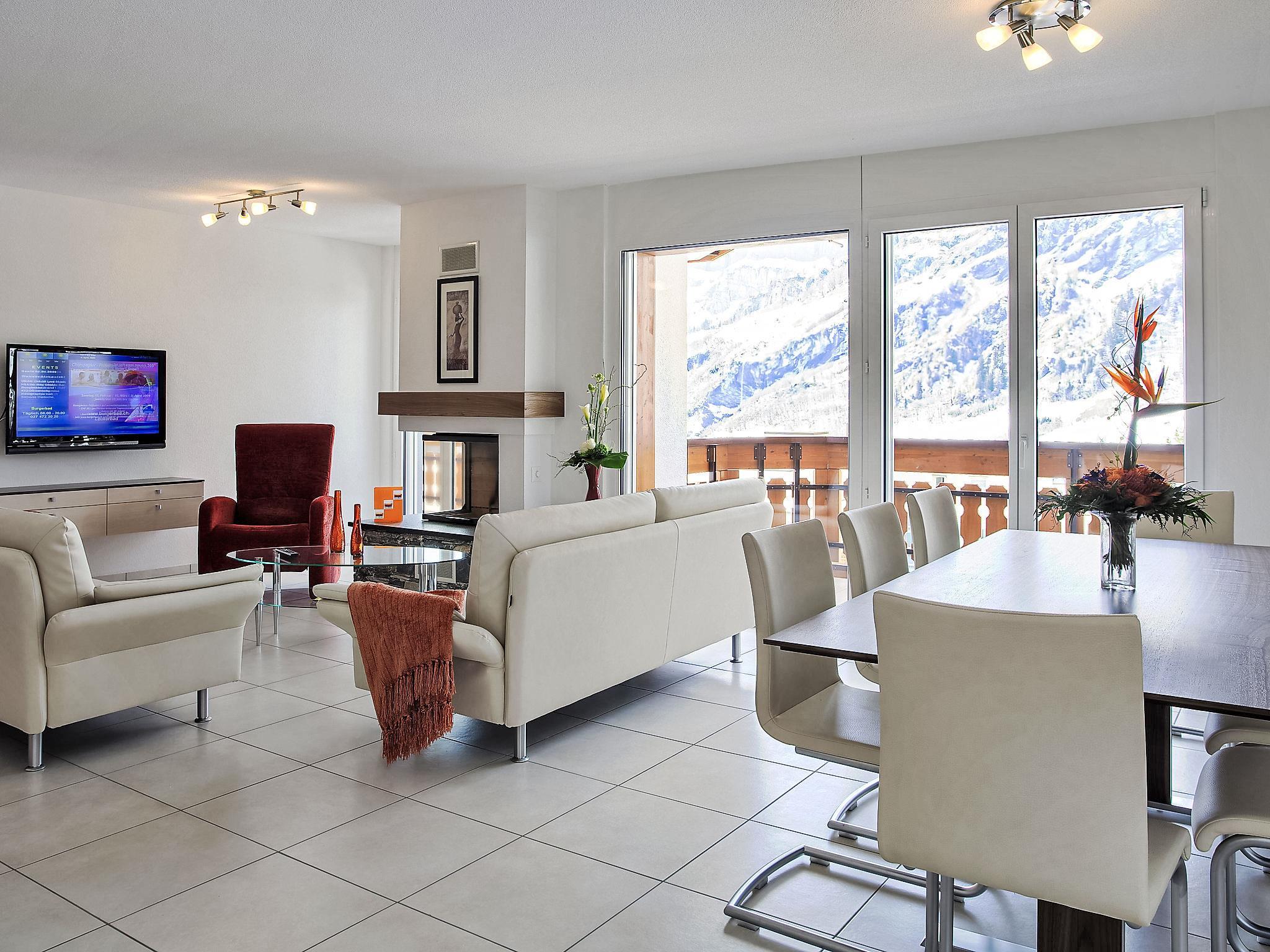 "A31", 5-Zimmer-Wohnung 157 m2 im 3. Stock. Komfortabel und geschmackvoll eingerichtet: Wohn-/Esszimmer mit offenem Kamin und Kabel-TV. Ausgang zum Balkon, Richtung Süden und Richtung Westen. 1 Doppelzimmer mit 2 Betten und Dusche/WC. Ausgang zum Balkon, Richtung Süden und Richtung Westen. 1 Doppelzimmer mit 2 Betten. Ausgang zum Balkon, Richtung Süden und Richtung Westen. 1 Doppelzimmer mit 2 Betten und Dusche/WC. 1 Doppelzimmer mit 1 Doppelbett und Dusche/WC. Offene Küche (Backofen, Geschirrspüler, 4 Glaskeramikplatten) mit Bar. Bad, sep. WC. Sehr schöne Sicht auf die Berge und die Ortschaft. Zur Verfügung: Waschmaschine, Wäschetrockner, Kinderhochstuhl. Internet (Wireless LAN, gratis). Parkplatz (überdacht). Bitte beachten: Nichtraucher-Unterkunft.