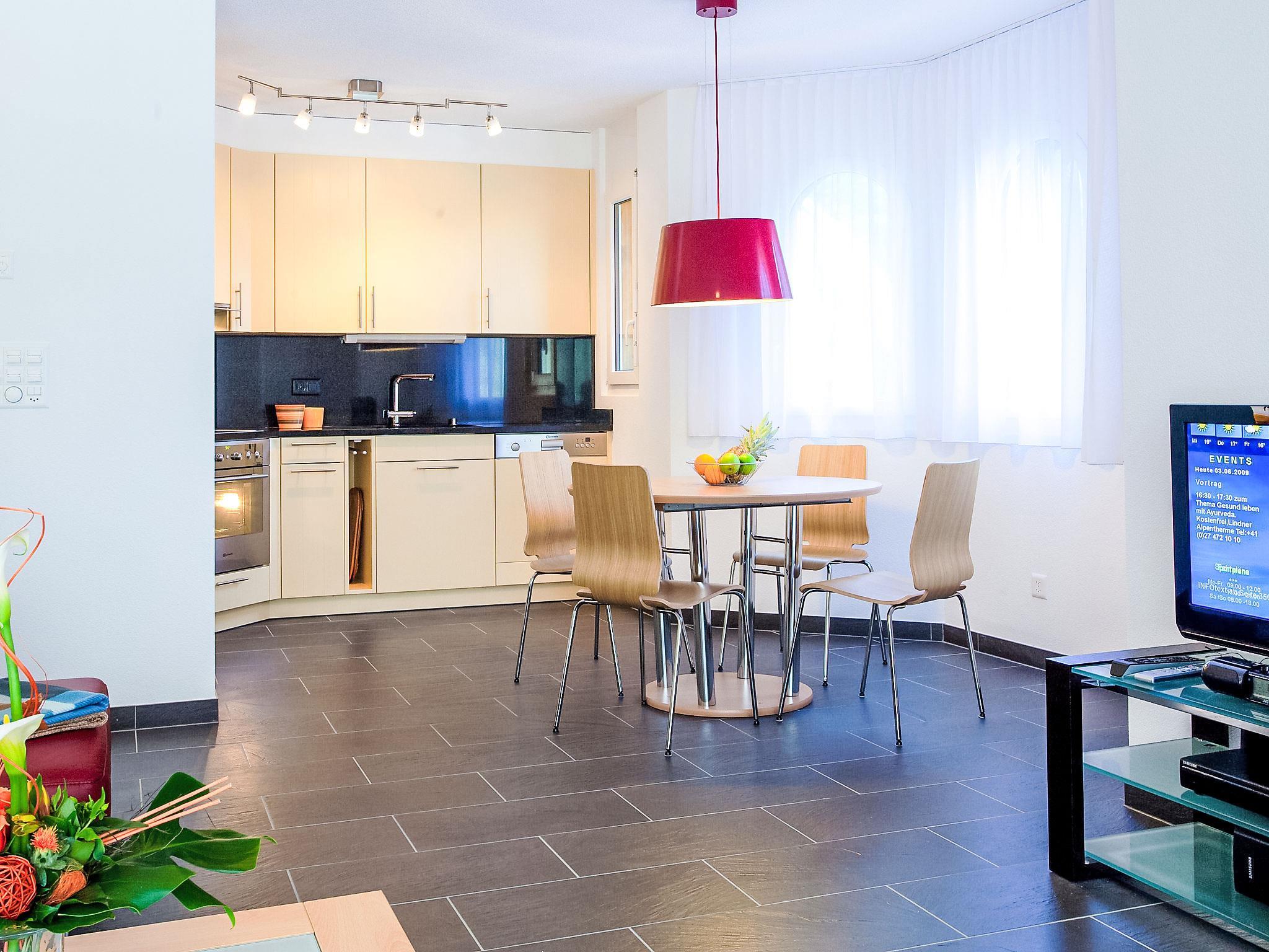 Komfortables Appartementhaus "Iris B", auf 5 Stockwerken, Baujahr 2008. Im Ort, zentrale, sonnige, erhöhte Lage, an einer Strasse. In der Anlage: Sauna, Fitnessraum, Dampfbad, Sprudelbad, Fahrstuhl, Zentralheizung, Waschmaschine, Wäschetrockner (zur Mitbenutzung, extra). Zufahrt bis zum Haus (Bergstrasse). Gemeinschaftsgarage, öffentliche Parkplätze 300 m. Einkaufsgeschäft 400 m, Lebensmittelgeschäft 300 m, Einkaufszentrum 400 m, Restaurant 100 m, Bar, Café 400 m, Bushaltestelle "Leukerbad, Obere Maressen" 250 m, Thermalbad 400 m. Bergeisenbahn, Skipisten 600 m, Skibushaltestelle 150 m, Eisfeld 1 km. Zwischen den Iris-Häuser gibt es ein Fitness- und Wellness-Chalet zur Mitbenutzung für alle Hausbewohner. Wellness mit Finnisch-Sauna, Aromadampfbad, Einzel-Whirlpool. In der Buchung ist die Leukerbad Plus Card inbegriffen. Die Leukerbad Plus Card beinhaltet folgende Leistungen: Freie Benutzung des Ortsbus Ringjet, Freie Benutzung des Kinder-Skigebietes Erli, Gratis Nutzung der Sportarena (Badminton, Tennis, Squash, Billard, Tischtennis, Eislaufen, Fussball, Indoor-Fussball, Minigolf, Boulder, etc.), 15% Ermässigung beim Kauf eines Schnee- und Badepasses. 10% Ermässigung auf Abonnemente und Mehrfacheintritte in öffentlichen Thermalbäder.