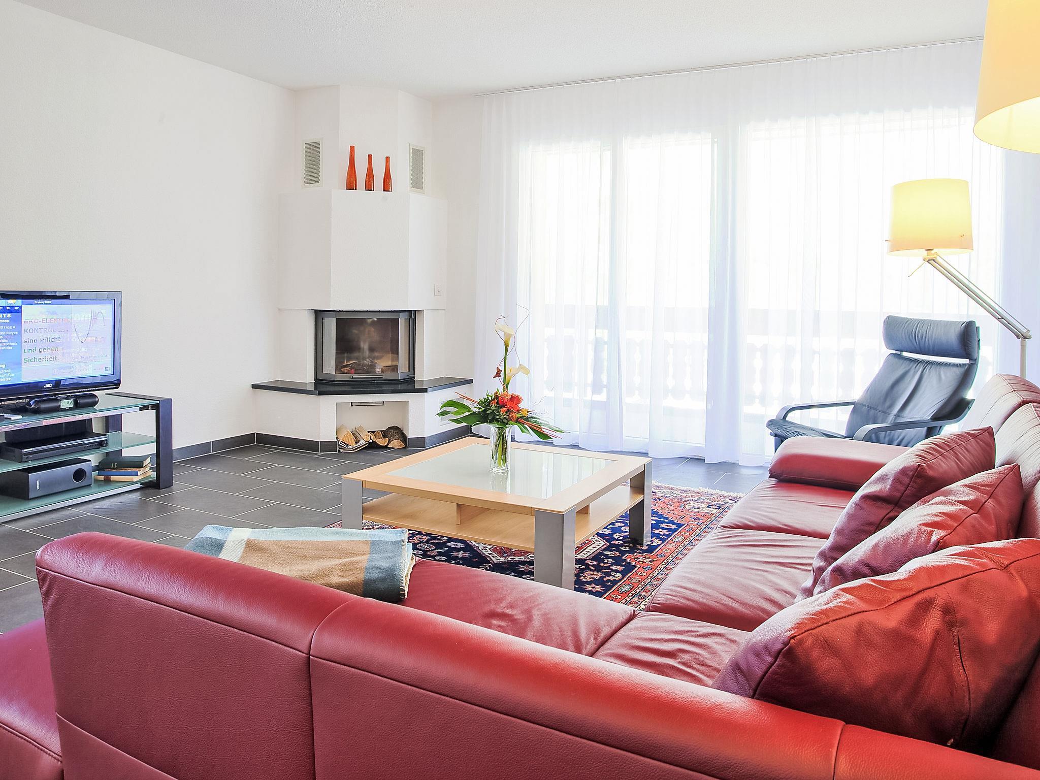 "B33", 3-Zimmer-Wohnung 96 m2 im 3. Stock. Komfortabel eingerichtet: Wohn-/Esszimmer mit offenem Kamin, Essecke, Kabel-TV und DVD. Ausgang zum Balkon, Richtung Süden und Richtung Westen. 1 Doppelzimmer mit 1 Doppelbett, Bad/Dusche/WC und Radio. 1 Doppelzimmer mit 1 Doppelbett. Offene Küche (4 Kochplatten, Backofen, Geschirrspüler, Mikrowelle). Dusche/WC. Terrassenmöbel. Sehr schöne Sicht auf die Berge und die Ortschaft. Zur Verfügung: Kinderhochstuhl. Internet (Wireless LAN, gratis). Parkplatz (überdacht). Bitte beachten: Nichtraucher-Unterkunft.