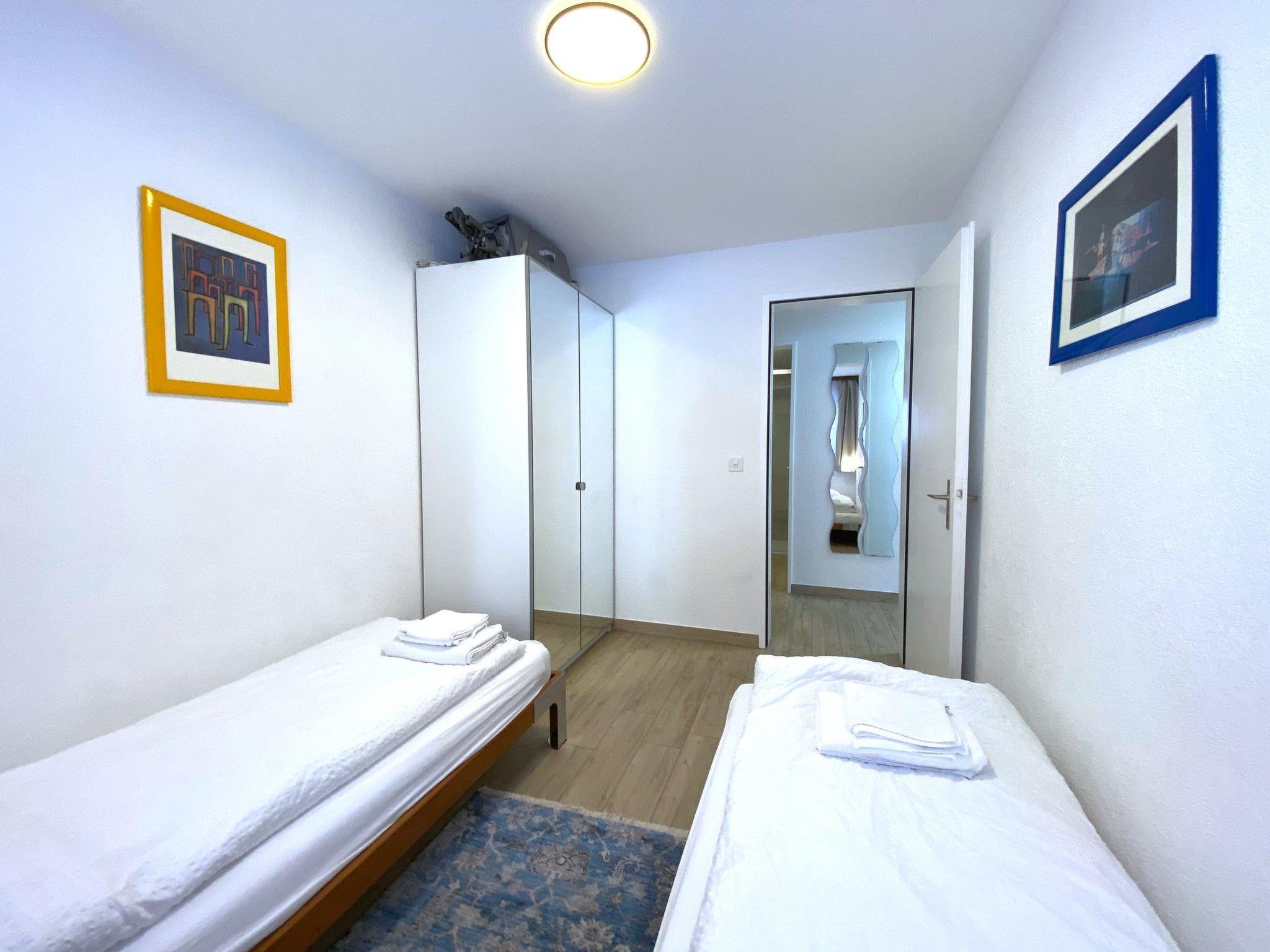 Im Inneren der Wohnung finden Sie ein harmonisches Ambiente, das durch eine offene Küche gekennzeichnet ist, welche keine Wünsche offenlässt. Ausgestattet mit einem Backofen, einem Cerankochfeld, einem Kühlschrank, einem Gefrierschrank, einer Kapsel-Kaffeemaschine, einem Wasserkocher sowie einem Geschirrspüler, ermöglicht die Küche kulinarische Entfaltung. Zudem ist die Wohnung mit Annehmlichkeiten wie einem TV/DVD-Player, Netflix und WIFI ausgestattet, sodass Unterhaltung und Entspannung großgeschrieben werden. Die Schlafmöglichkeiten umfassen ein Schlafzimmer mit einem Doppelbett, ein weiteres Schlafzimmer mit zwei Einzelbetten und ein zusätzliches portables Bett im Wohnzimmer.