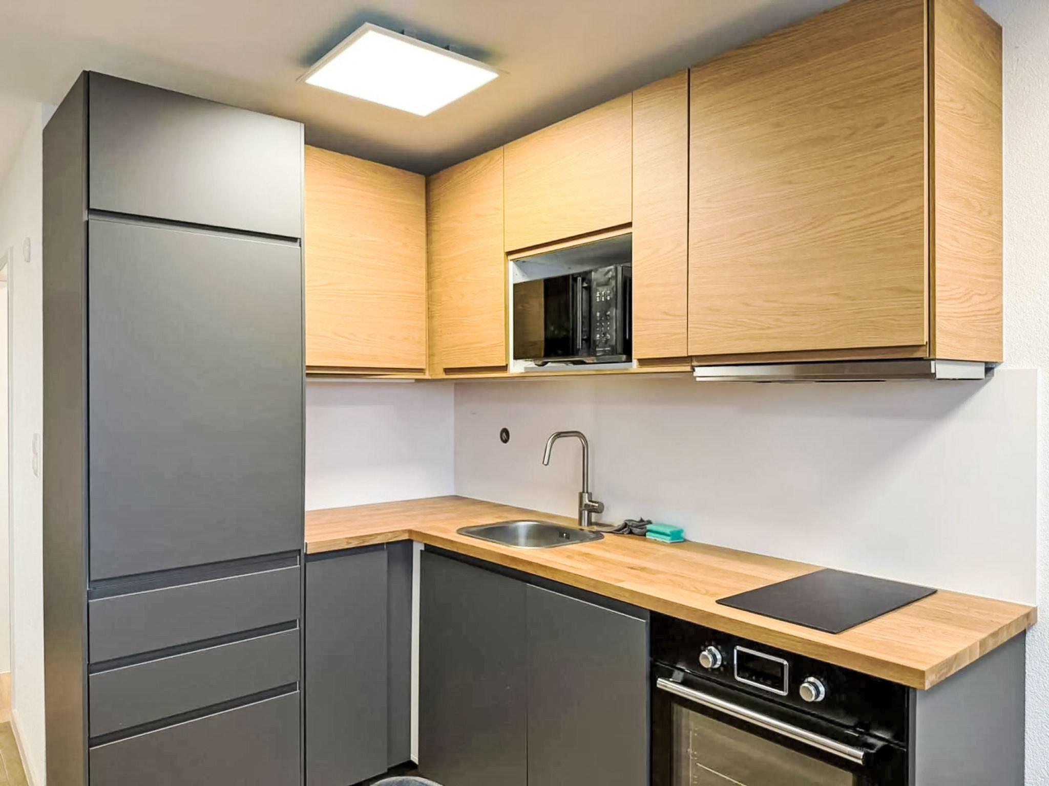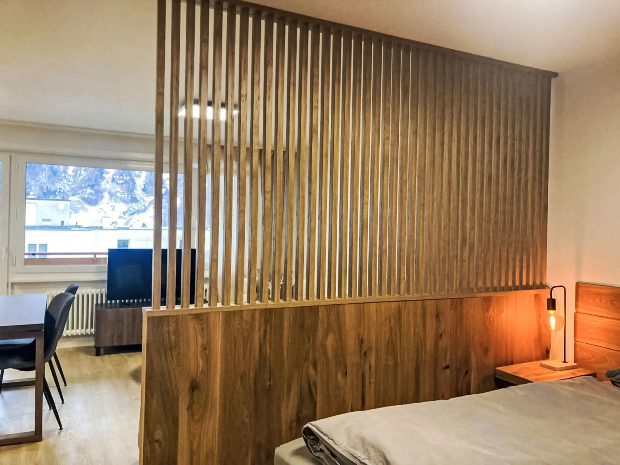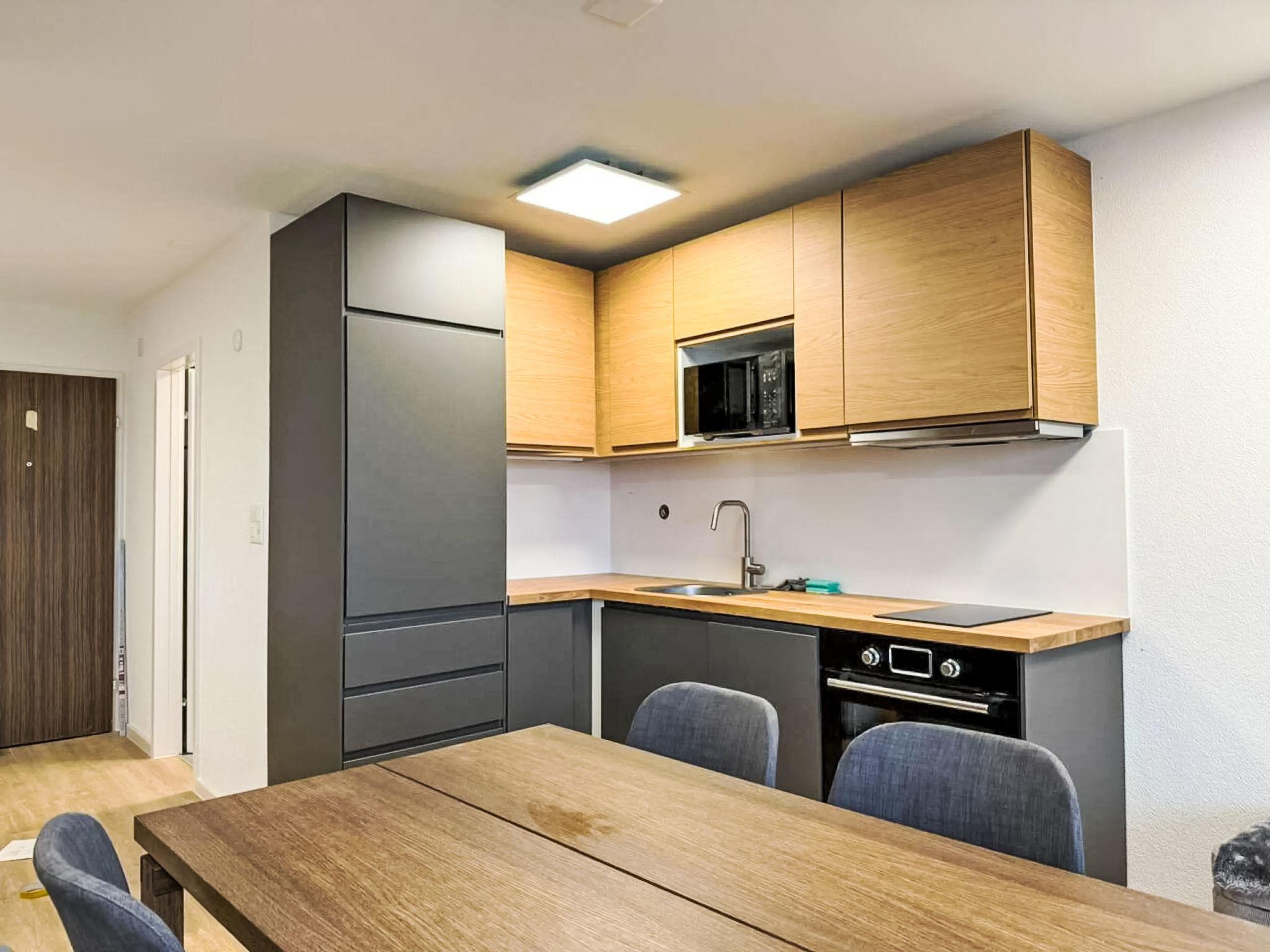 "Marmotta 28", 1-Zimmer-Wohnung im 3. Stock. Vollständig renoviert im Jahre 2025, schön und geschmackvoll eingerichtet: Wohn-/Schlafzimmer mit 1 Diwanbett (140 cm, Länge 200 cm), 1 Doppelbett (160 cm, Länge 200 cm), Esstisch und Digital-TV. Ausgang zum Balkon. Offene Küche (Backofen, Geschirrspüler, 4 Glaskeramikplatten, Wasserkocher, Mikrowelle, Tiefkühler, elektrische Kaffeemaschine). Dusche/WC. Heizung. Parkettboden. Balkon. Balkonmöbel. Sehr schöne Sicht auf die Berge. Zur Verfügung: Haartrockner. Internet (WLAN, gratis). Bitte beachten: Nichtraucher-Unterkunft.