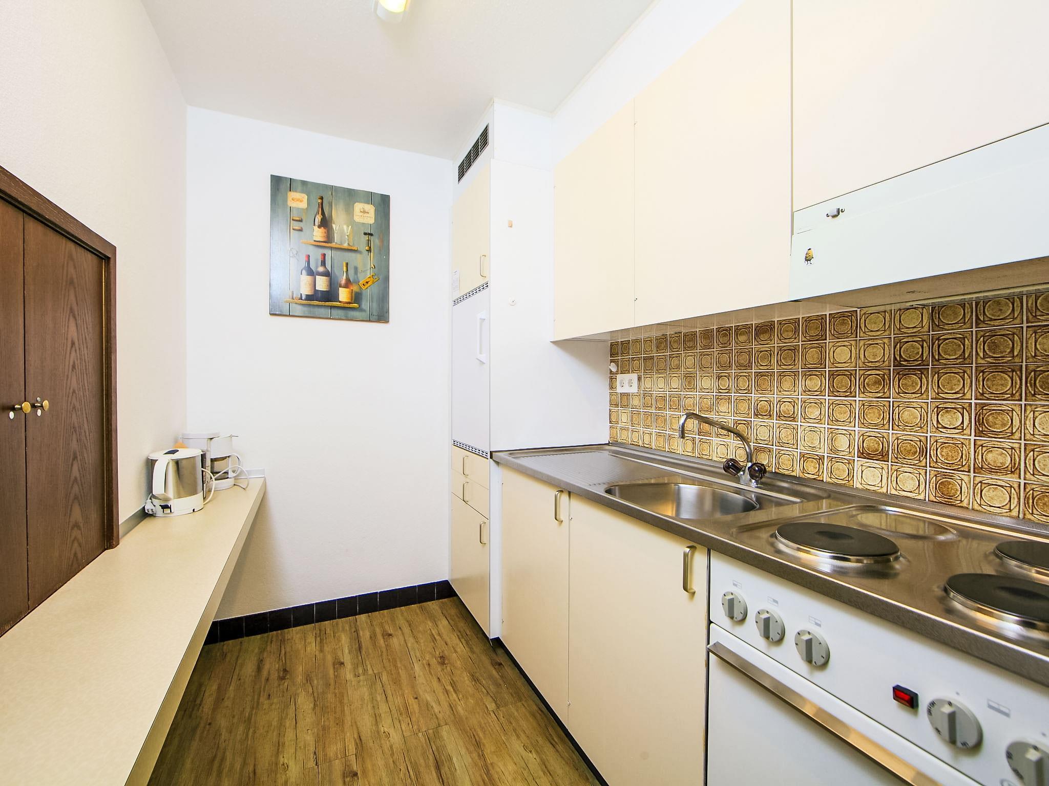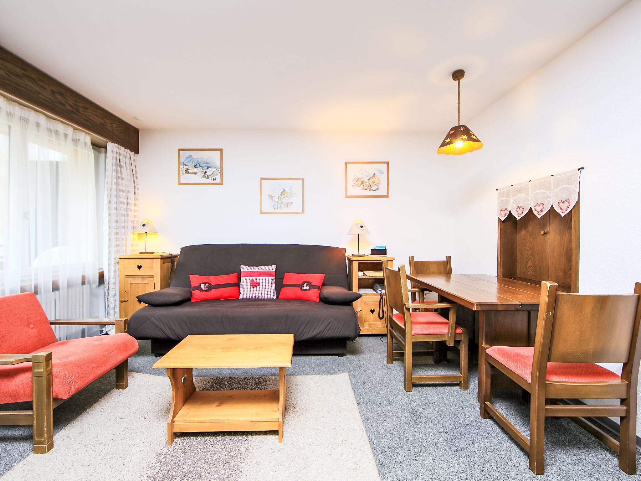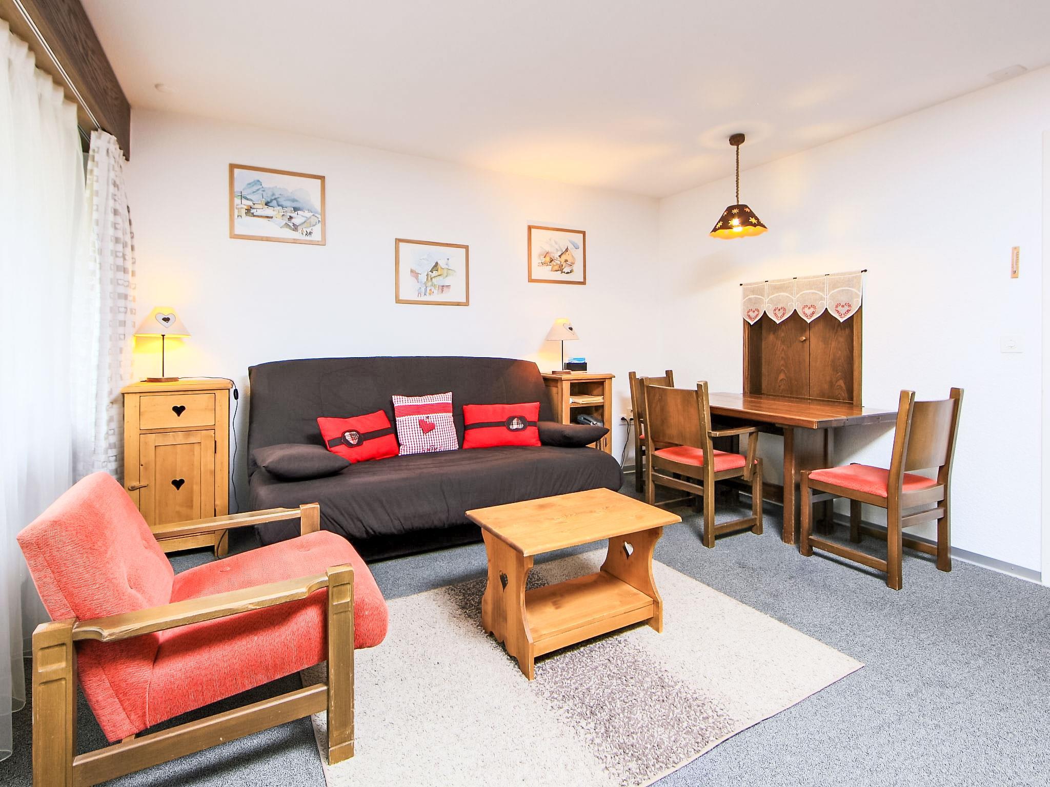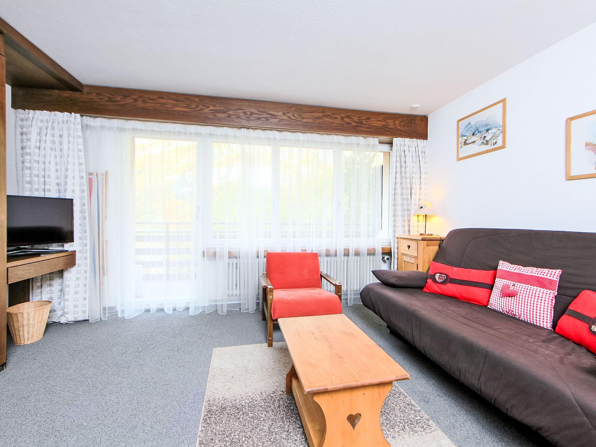 1-Zimmer-Wohnung 43 m2 im 1. Stock. Zweckmässig und gemütlich eingerichtet: Wohn-/Esszimmer mit 2 Wandschrankbetten, TV und Kabel-TV (Flachbildschirm). Ausgang zum Balkon. Küche (Backofen). Bad/WC. Balkon. Balkonmöbel. Schöne Sicht auf die Berge, die Landschaft und die Ortschaft. Zur Verfügung: Internet (Wireless LAN, gratis). Bitte beachten: Nichtraucher-Unterkunft.