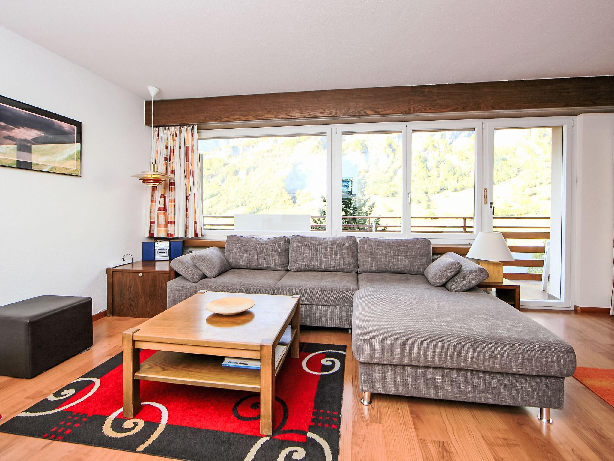 1-Zimmer-Wohnung 50 m2 im 3. Stock. Zweckmässig eingerichtet: Wohn-/Esszimmer mit 2 Wandschrankbetten und Kabel-TV (Flachbildschirm), Stereoanlage. Schlafnische mit Vorhang mit 2 Betten. Küche (3 Kochplatten, Backofen, elektrische Kaffeemaschine, Kapseln für die Kaffeemaschine (Nespresso) extra). Bad/WC. Balkon. Terrassenmöbel. Sicht auf die Berge und das Tal. Zur Verfügung: Internet (Wireless LAN, gratis). Bitte beachten: Nichtraucher-Unterkunft.