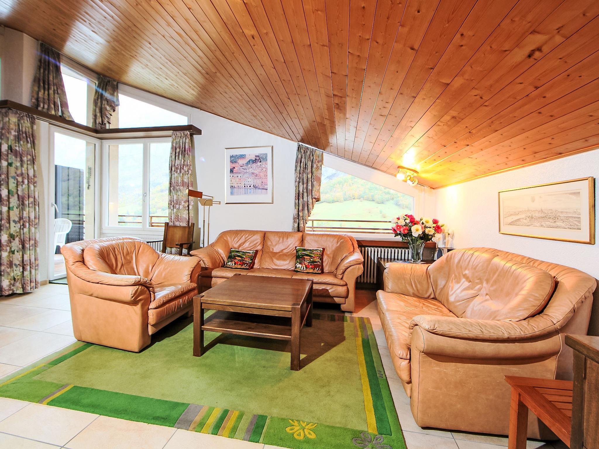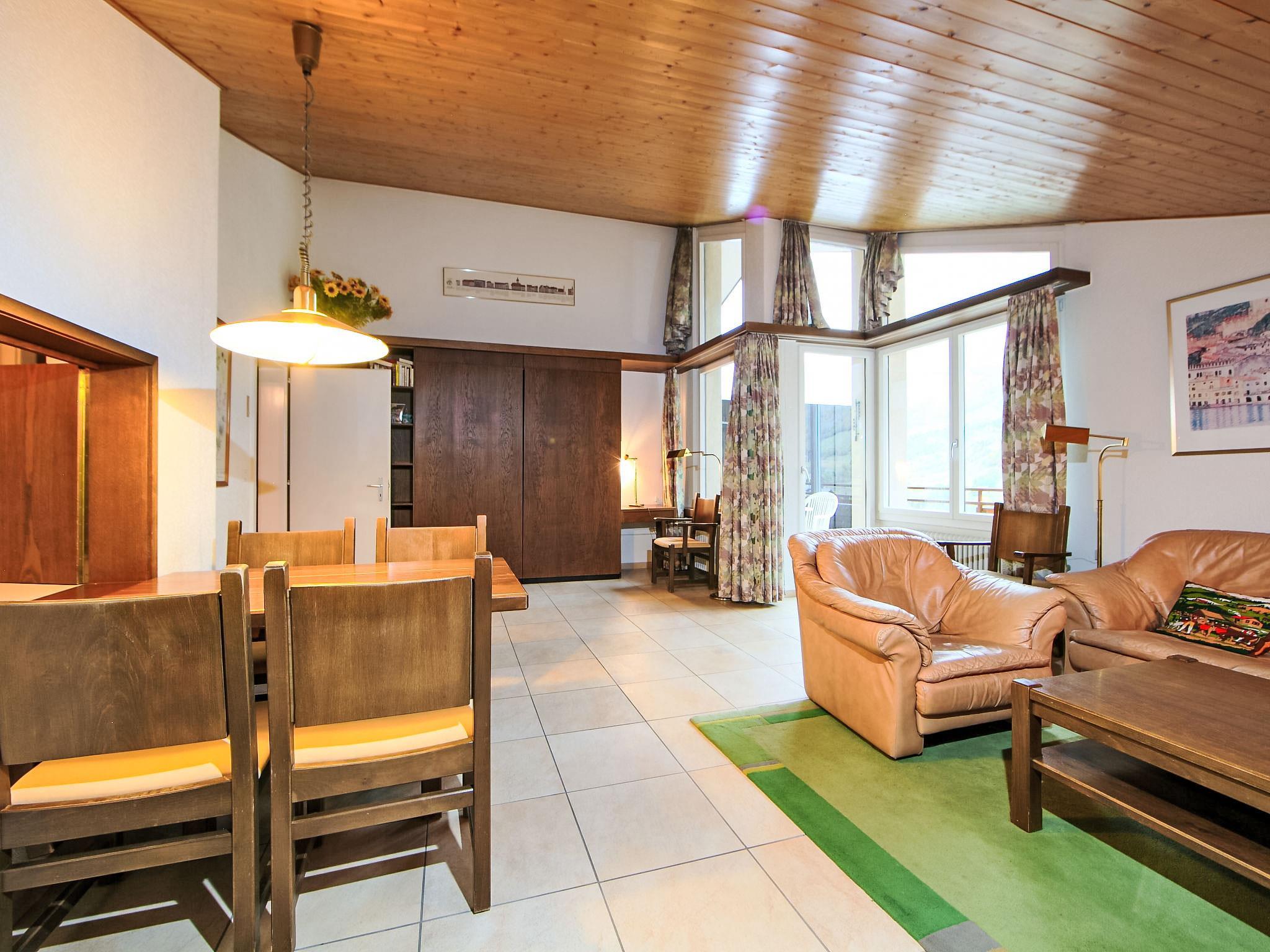 2-Zimmer-Wohnung 69 m2 im 4. Stock. Komfortabel eingerichtet: grosses Wohn-/Esszimmer mit 2 Wandschrankbetten und Kabel-TV (Flachbildschirm). 1 Zimmer mit 2 Betten. Küche (Backofen, Geschirrspüler, elektrische Kaffeemaschine, Kapseln für die Kaffeemaschine (Nespresso) extra). Bad/WC, sep. WC. Balkon. Terrassenmöbel. Sicht auf die Berge und das Tal. Zur Verfügung: Internet (Wireless LAN, gratis). Bitte beachten: Nichtraucher-Unterkunft.