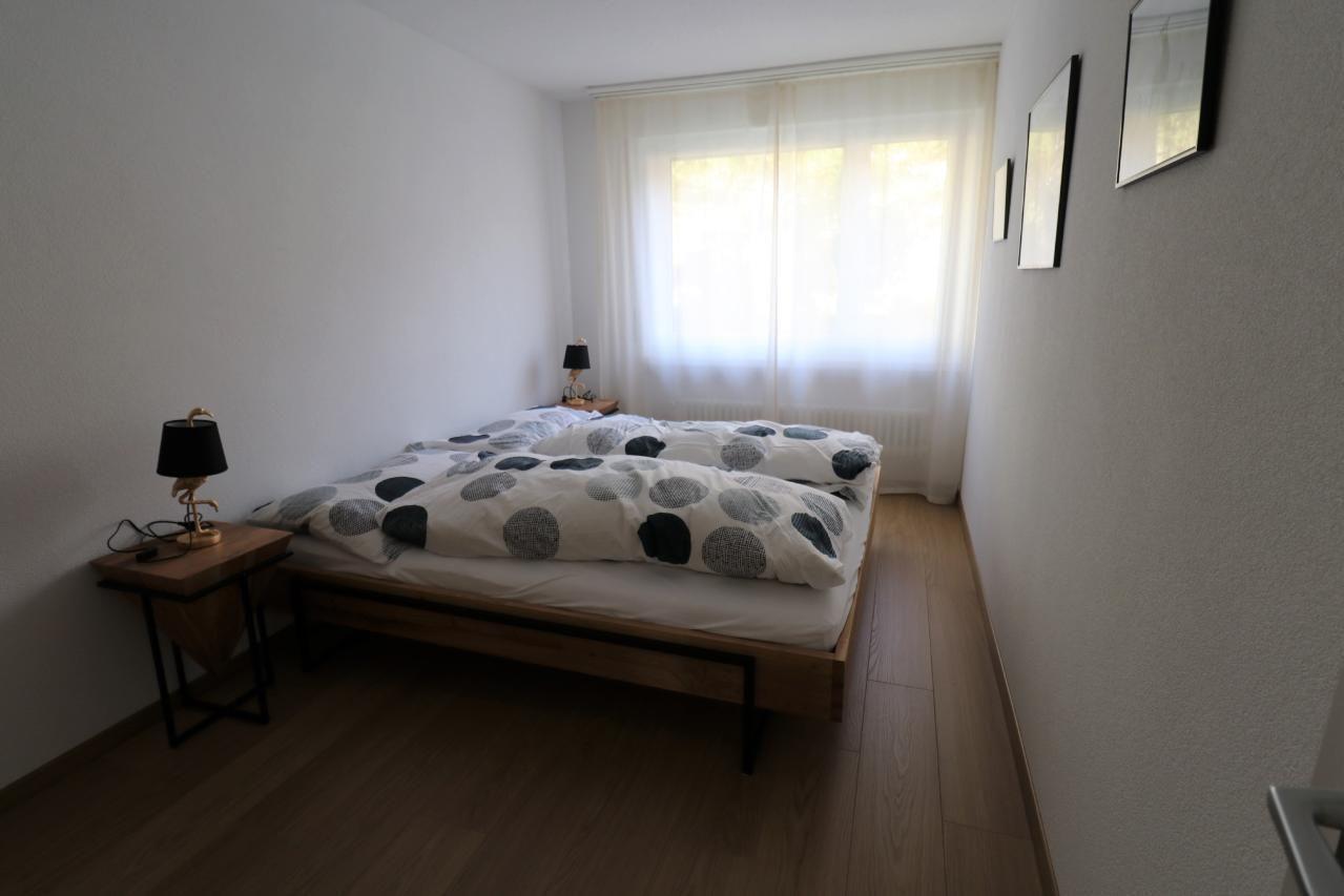 Die beiden Schlafzimmer haben je ein Doppelbett, 2 Nachttische und einen Schrank. Im Wohnzimmer steht noch ein Schlafsofa für weitere 2 Personen. Die Küche hat einen Glaskeramikherd mit 4 Platten, Kühlschrank mit Gefrierfach, Geschirrspüler, Backofen, Mikrowellenherd, Kaffeemaschine (Nespresso), Toaster, Fondue-Set, Racletteofen. Im Badezimmer stehen Toilette, Badewanne mit Dusche, Lavabo mit Spiegel, Haartrockner, Gestell und ein kleiner Schrank zur Verfügung.