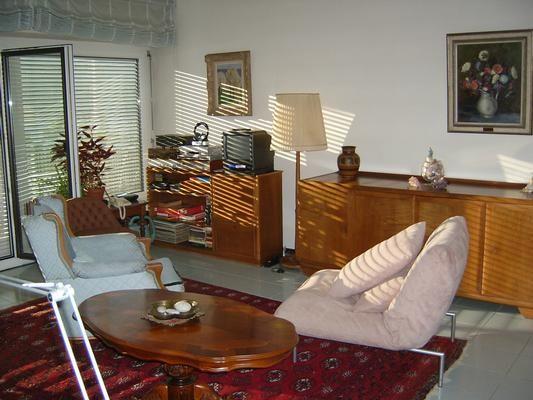 In persönlichem Stil (60-er Jahre) eingerichtete komfortable Wohnung mit freier Sicht auf Lago Maggiore und Berge. Der eigenwillige Bauplan stammt vom bekannten Tessiner Architekten Snozzi. Sie liegt wenige Fussminuten vom Zentrum von Locarno entfernt und bietet neben dem hauseigenen Schwimmbad und Sauna unzählige Möglichkeiten für Ausflüge, sei es in die Berge oder zum See, zu Fuss oder per Bus/Auto. Auch im Winter ein Genuss! Ein Parkplatz ist in der Einstellhalle für Sie reserviert; Sie gelangen bequem mit dem Lift zur Wohnung im 4.Stock. Das Haus besitzt ein neu renoviertes Schwimmbad (mit rollstuhlgängiger Treppe) mit Sauna. Einkaufsmöglichkeiten gibt es in unmittelbarer Nähe oder in Minusio. WLAN-Anschluss vorhanden. Bushaltestelle vor dem Haus. Sehr entgegenkommende Betreuung der Wohnung, die auch mal auf besondere Wünsche eingeht.
