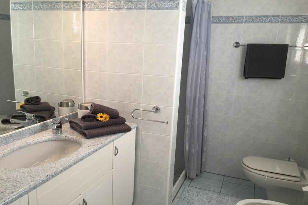 , Eingangshalle(), Wohnzimmer(TV), Küche(Esstisch, Wasserkocher, Toaster, Kaffeemaschine, Backofen, Mikrowelle, Spülmaschine, Kühlschrank, Tiefkühlschrank), Schlafzimmer(Doppelbett), Schlafzimmer(Doppelbett), Badezimmer(Dusche, Waschbecken, Bidet), Internet, Internet, Grill, Balkon(Gartenmöbel), Gartenmöbel, Liegen, Parkplatz