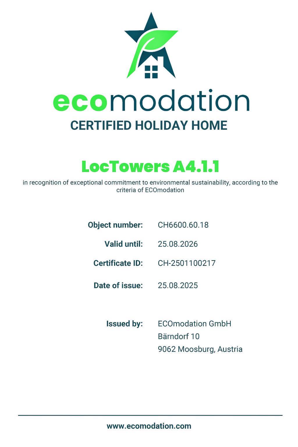 "LocTowers A4.1.1", 3-Zimmer-Wohnung 84 m2 im 1. Stock. Geräumig und hell, sehr komfortabel und modern eingerichtet: offenes Wohn-/Esszimmer mit Esstisch, Kabel-TV und Digital-TV. Ausgang zum Balkon. 1 Zimmer mit 1 Doppelbett (2 x 80 cm, Länge 200 cm). Ausgang zum Balkon. 1 Zimmer mit 2 Betten (80 cm, Länge 200 cm). Offene Küche (Backofen, Geschirrspüler, 4 Glaskeramikplatten, Toaster, Wasserkocher, Tiefkühler, elektrische Kaffeemaschine, Kapseln für die Kaffeemaschine (Delizio) extra, Racletteofen, Fondue Set (Käse)). Bad/WC, Dusche/WC. Fussbodenheizung. Balkon 8 m2, Westlage und Südlage Balkon 8 m2, Ostlage und Südlage. Balkonmöbel. Sicht auf die Ortschaft. Zur Verfügung: Waschmaschine, Wäschetrockner, Kinderhochstuhl, Babybett (extra), Haartrockner. Internet (Wireless LAN, gratis). Bitte beachten: Nichtraucher-Unterkunft. Maximal 1 Haustier/Hund erlaubt. NL-00007185