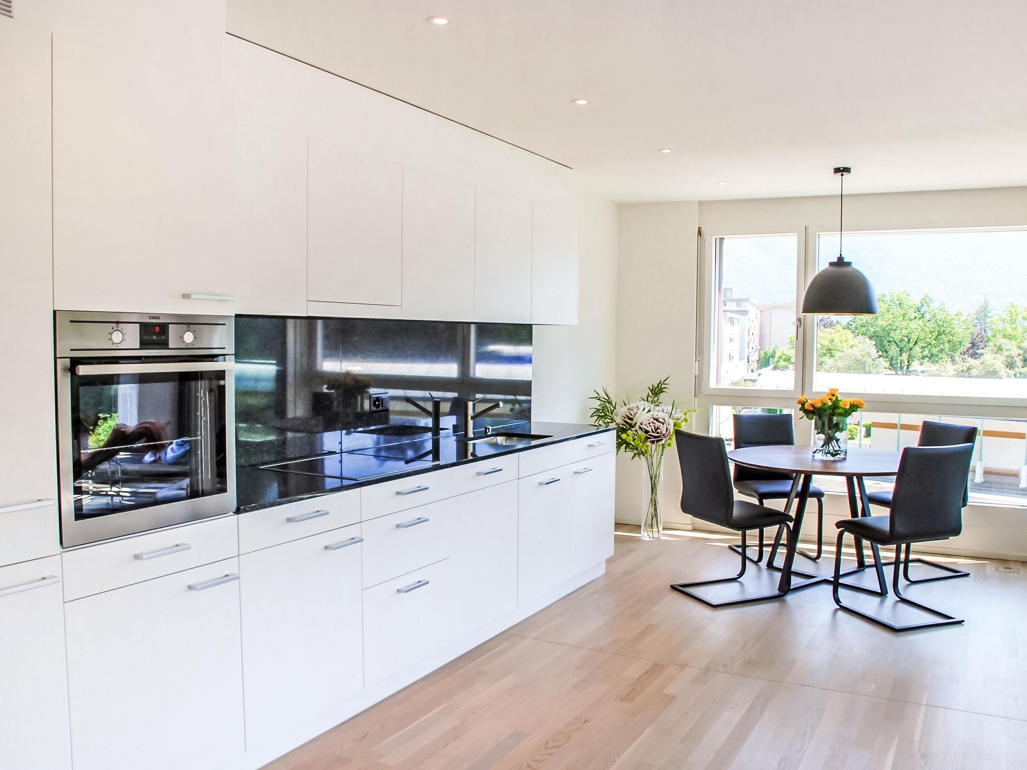 "LaVille B-2-3", 3-Zimmer-Wohnung 95 m2 im 2. Stock, Südwestlage. Geräumig und hell, modern und geschmackvoll eingerichtet: offenes grosses Wohn-/Esszimmer mit Sat-TV und Flachbildschirm. 1 Doppelzimmer mit 1 Doppelbett (2 x 90 cm, Länge 200 cm). 1 Zimmer mit 2 Betten (90 cm, Länge 200 cm). Grosse, offene Küche (Backofen, Geschirrspüler, 4 Induktionskochplatten, Tiefkühler, elektrische Kaffeemaschine, Kapseln für die Kaffeemaschine (Nespresso) extra) mit Esstisch. Ausgang zum Balkon. Bad/WC, Dusche/WC. Bodenheizung. Balkon 12 m2, Südlage und Westlage. Balkonmöbel, Liegestühle (1). Sicht auf die Berge und die Landschaft. Zur Verfügung: Waschmaschine, Wäschetrockner, Bügeleisen, Kinderhochstuhl, Babybett bis 2 Jahre (extra), Haartrockner. Internet (WLAN, gratis). Parkplatz Nr. 46 (extra), Höhe 210 cm, Breite 230 cm. Bitte beachten: Nichtraucher-Unterkunft. NL-00006853